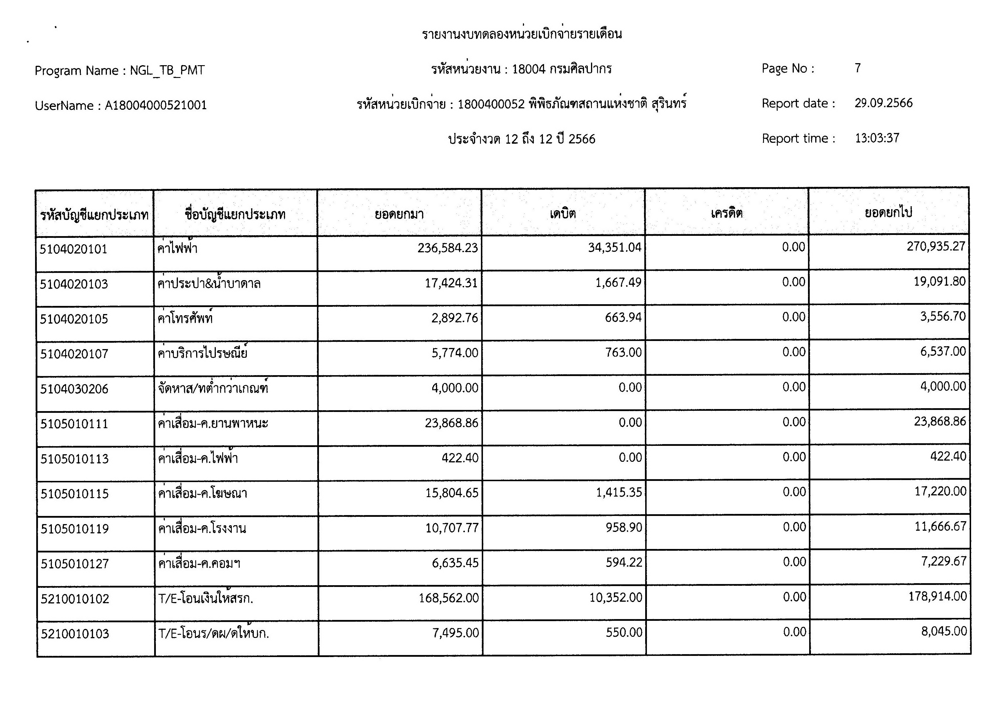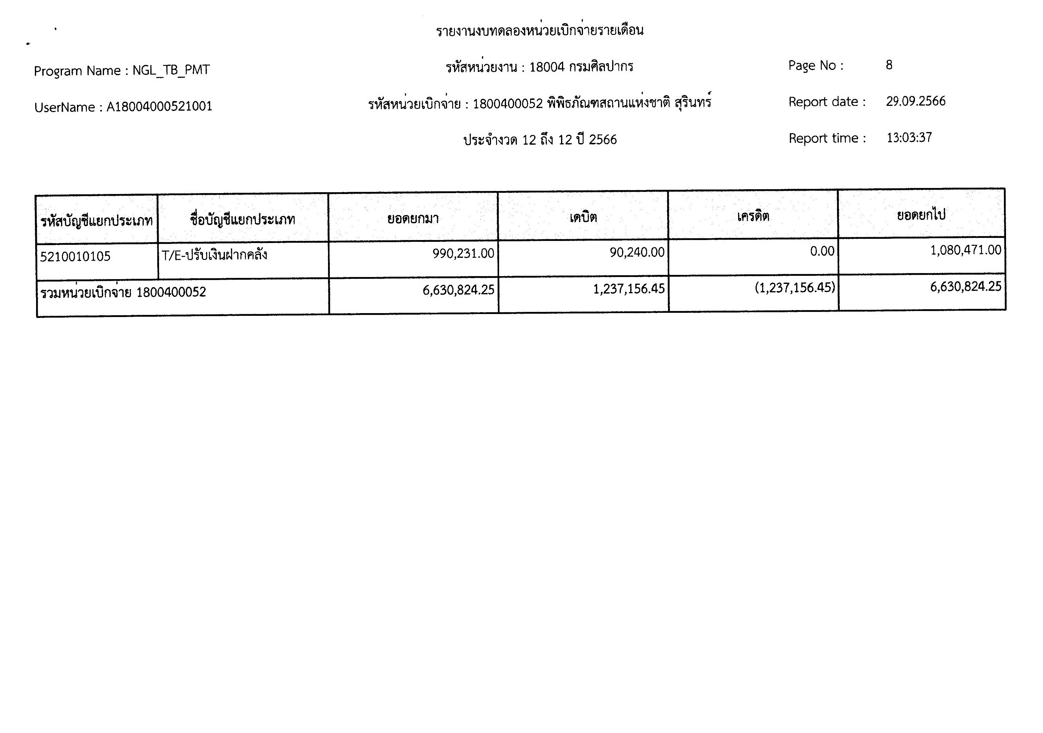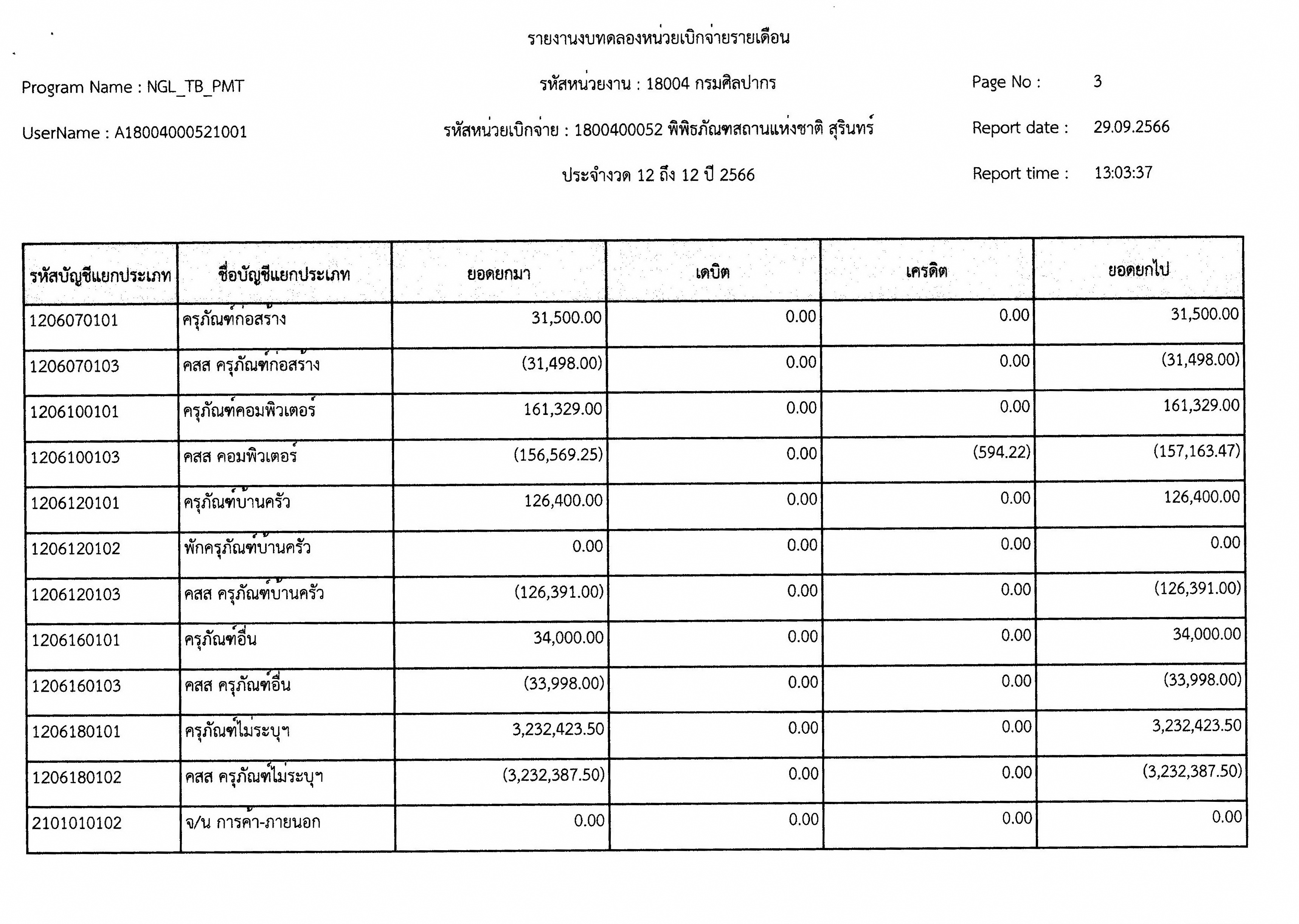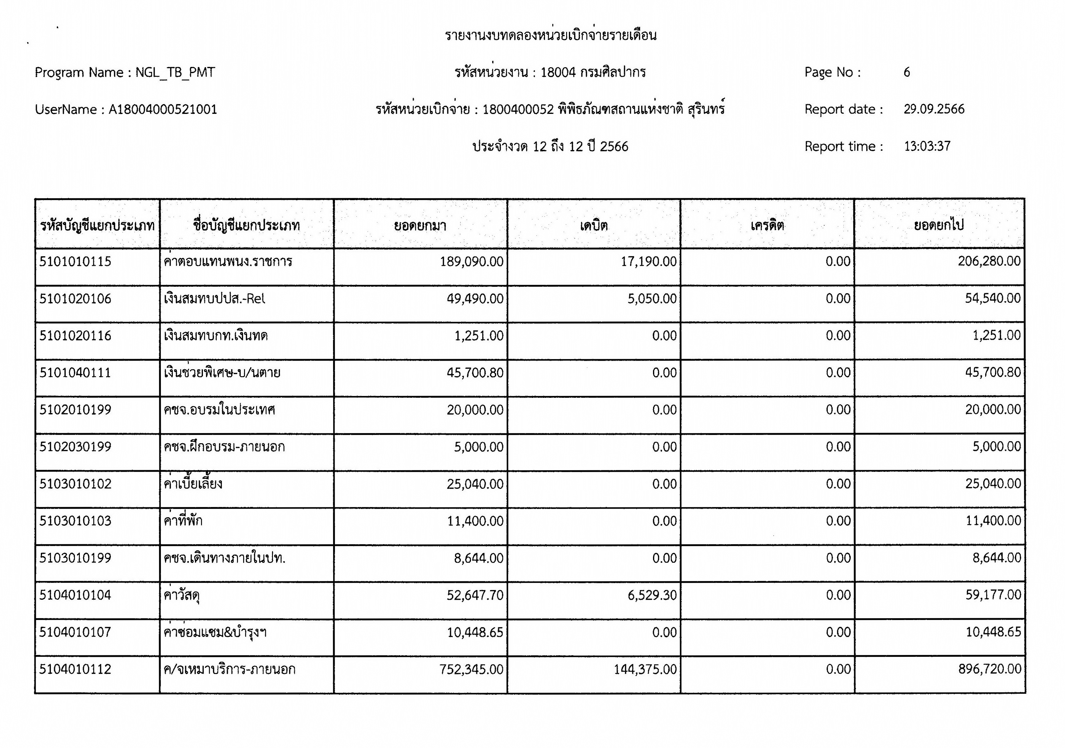 รายงานงบทดลองหน่วยเบิกจ่ายรายเดือน กันยายน พ.ศ. ๒๕๖๖