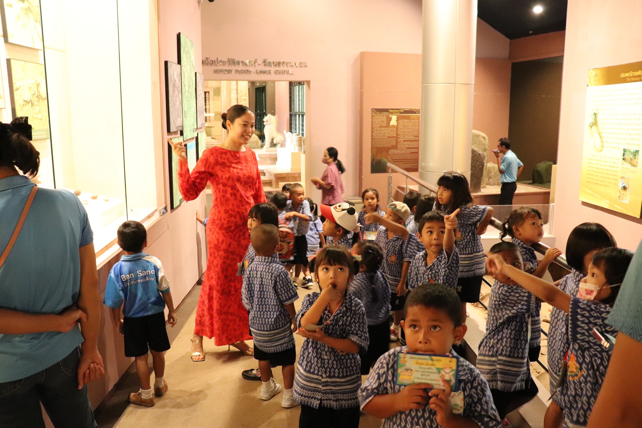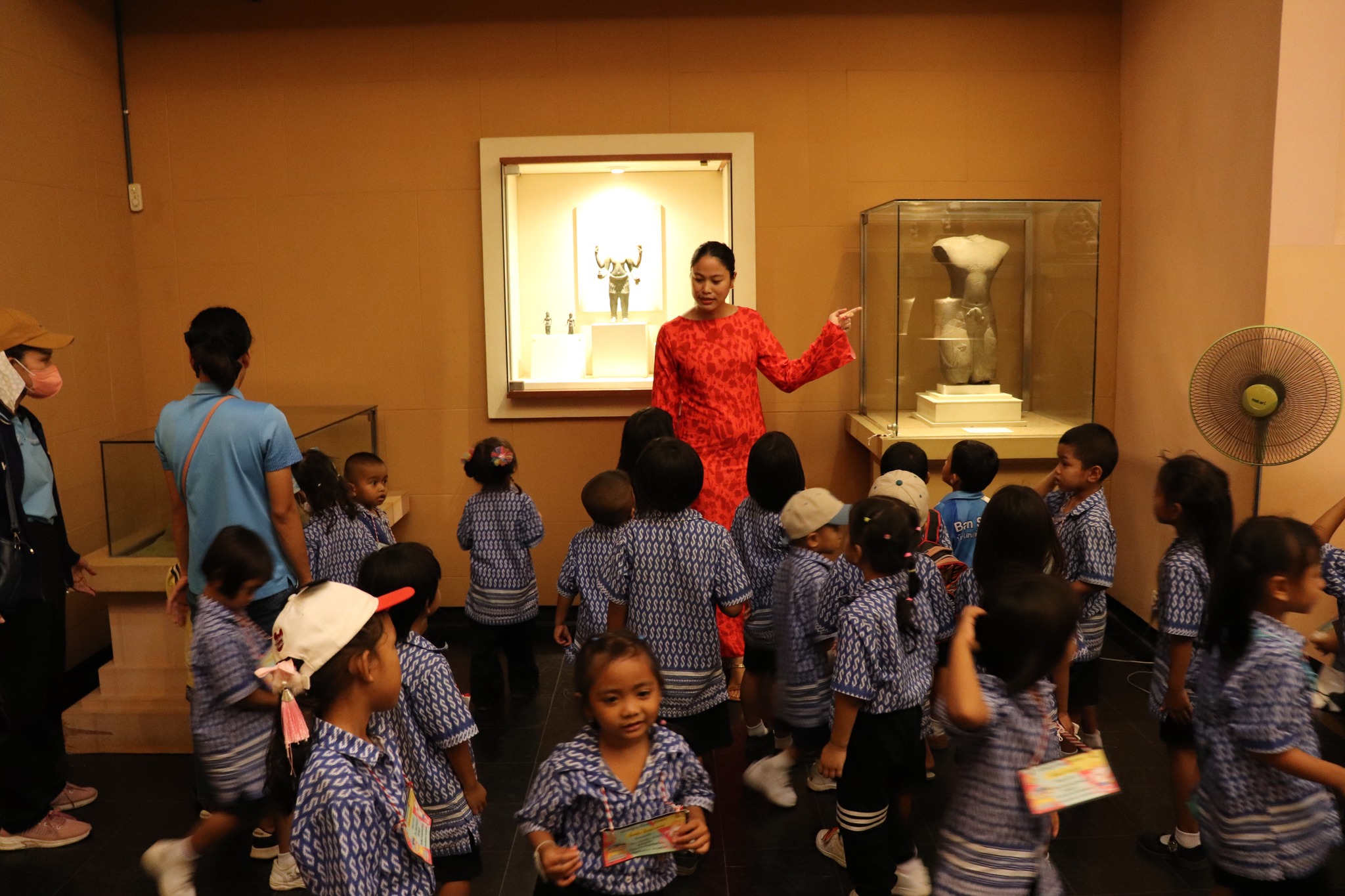 วันศุกร์ที่ ๖ ตุลาคม พ.ศ.๒๕๖๖ เวลา ๐๙.๓๐ น. นักเรียนชั้นอนุบาล ๑ - ๓ โรงเรียนบ้านโสน(พิทยศึกษา) ตำบลแสลงพันธ์ อำเภอเมืองสุรินทร์ จังหวัดสุรินทร์ จำนวน ๓๕ คน คุณครู ๕ คน เข้าเยี่ยมชมพิพิธภัณฑสถานแห่งชาติ สุรินทร์ โดยมีนพรัศม์ เมธีวราธนานันท์ ภัณฑารักษ์ปฏิบัติการ ให้การต้อนรับและบรรยายนำชม