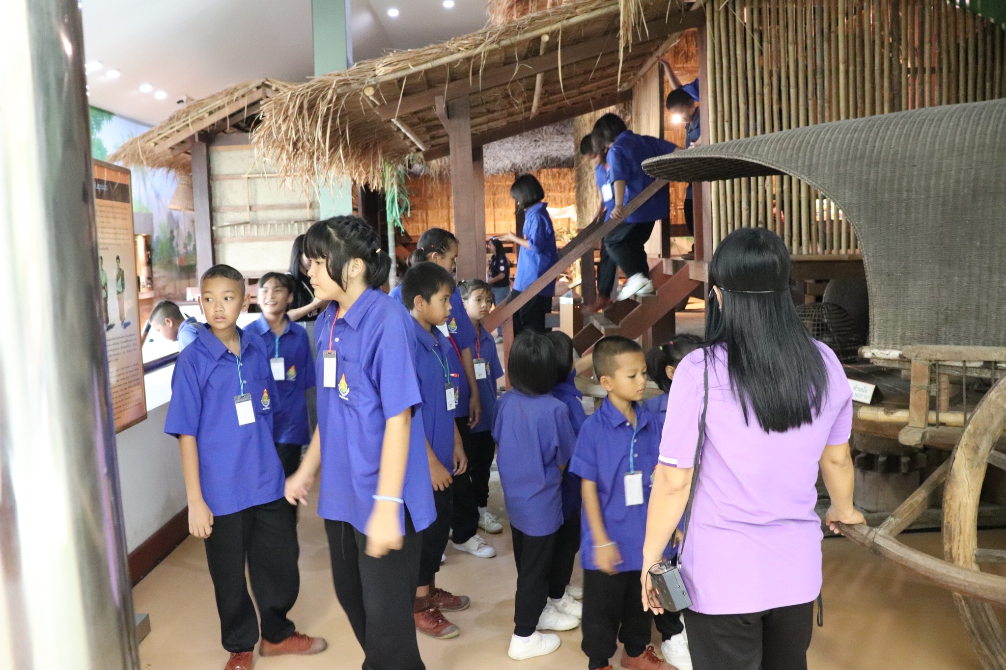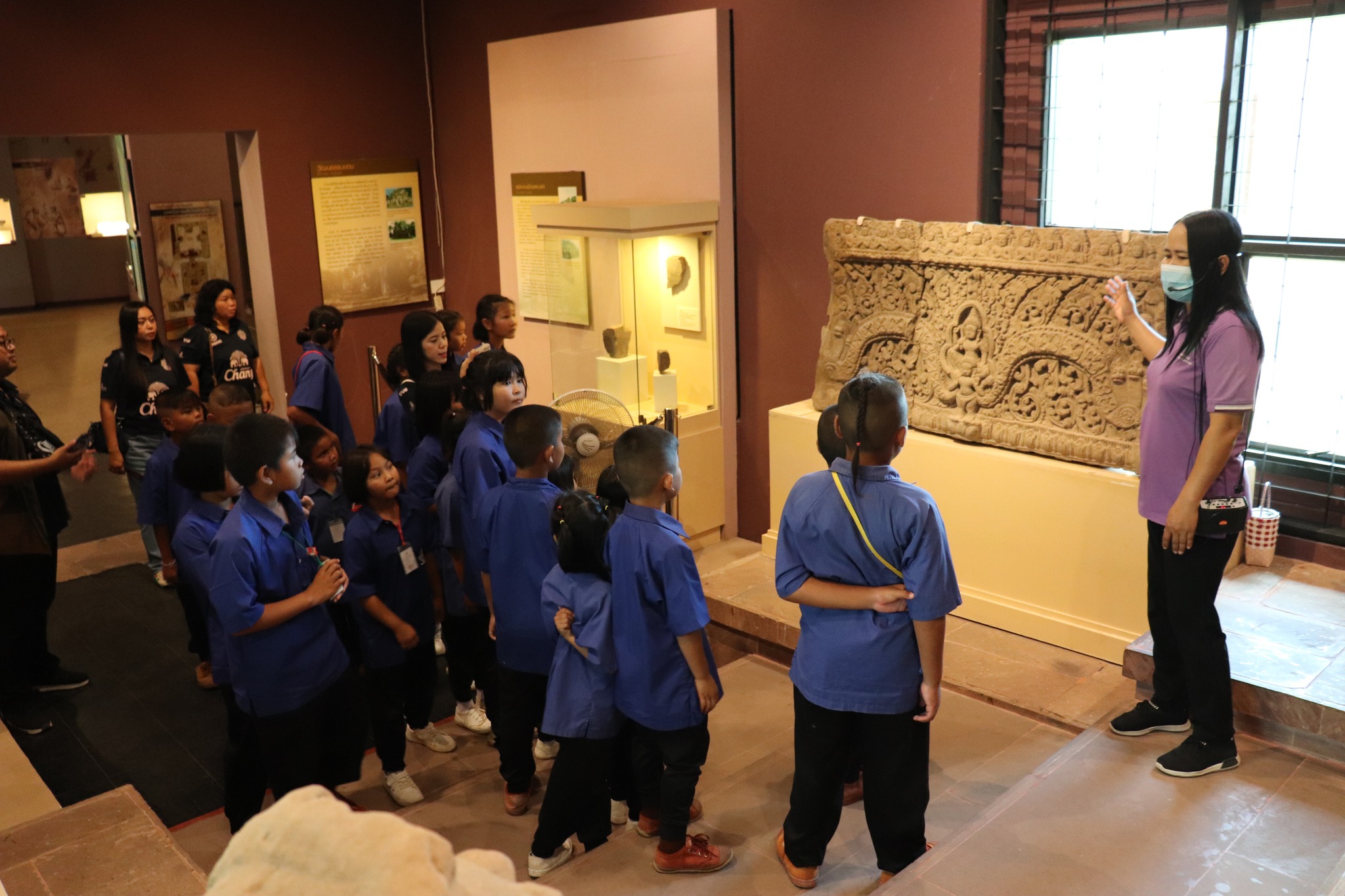 วันพฤหัสบดีที่ ๙ พฤศจิกายน พ.ศ. ๒๕๖๖ เวลา ๐๙.๓๐ น. นักเรียนชั้นประถมศึกษาที่ ๑ - ๖ โรงเรียนบ้านไพรวัลย์น้อย ตำบลเขาคอก อำเภอประโคนชัย จังหวัดบุรีรัมย์ จำนวน ๒๖ คน คุณครู ๖ คน เข้าเยี่ยมชมพิพิธภัณฑสถานแห่งชาติ สุรินทร์ โดยมีนางศรีสุดา ศรีสด พนักงานประจำห้อง ให้การต้อนรับและบรรยายนำชม