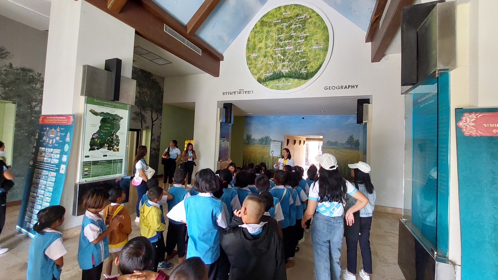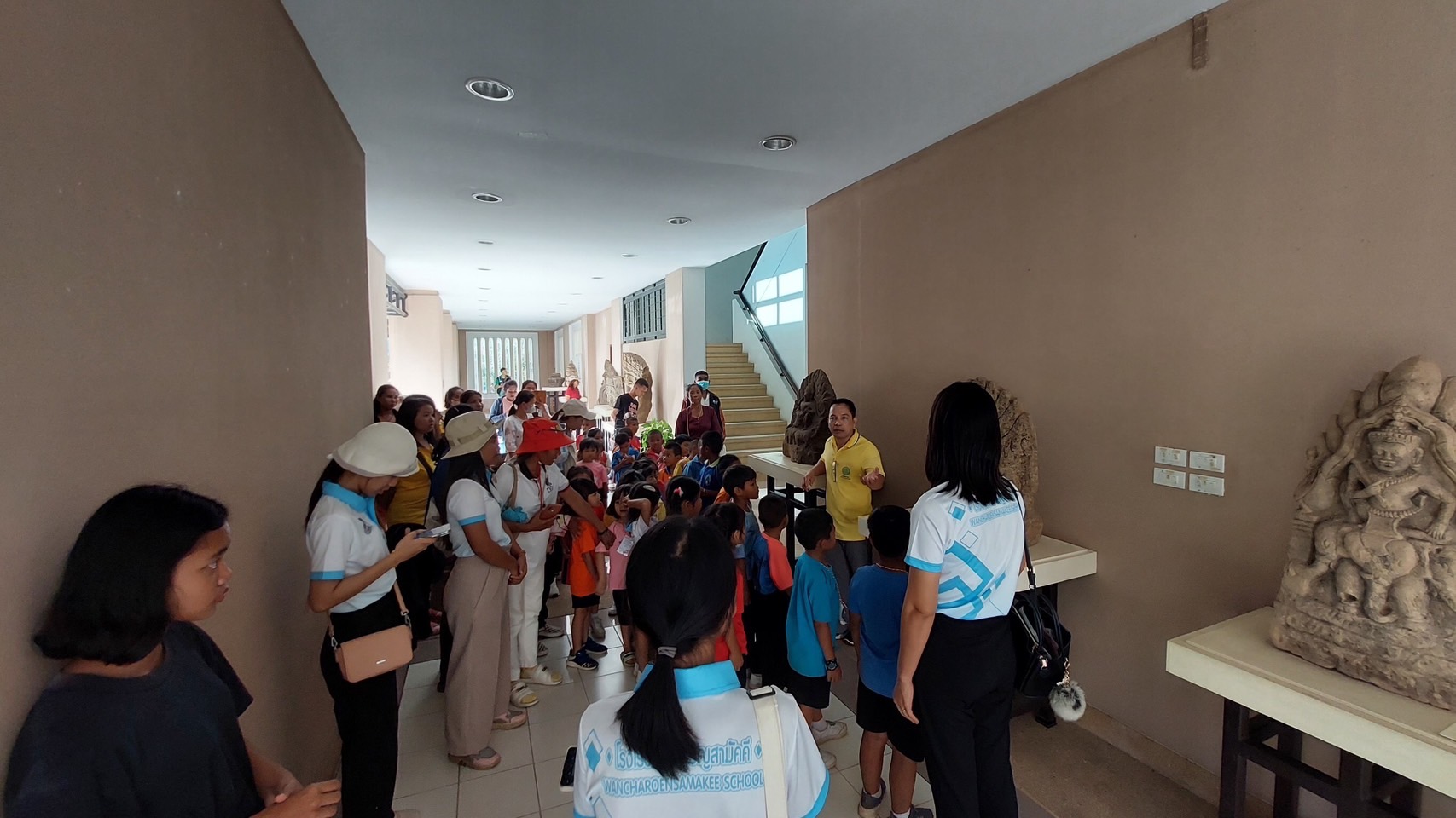 วันพุธที่ ๒๙ พฤศจิกายน พ.ศ. ๒๕๖๖ เวลา ๑๔.๓๐น. นักเรียนชั้นประถมศึกษาปีที่ ๑-๖ โรงเรียนวันเจริญสามัคคี ตำบลบ้านไพร อำเภอปราสาท จังหวัดสุรินทร์ จำนวน ๙๐ คน คุณครู ๑๐ คน เข้าเยี่ยมชมพิพิธภัณฑสถานแห่งชาติ สุรินทร์ โดยมีนายกรภัทร์ สุขใหญ่ พนักงานประจำพิพิธภัณฑ์ นางถนอม หลวงกลาง นางศรีสุดา ศรีสด พนักงานประจำห้อง ให้การต้อนรับและบรรยายนำชม