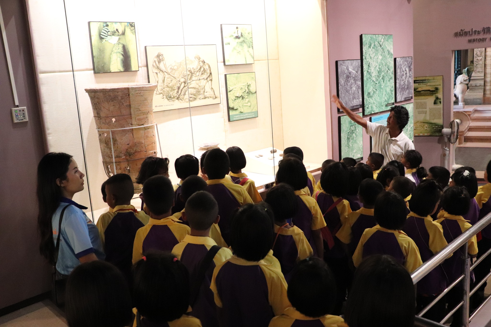 วันพฤหัสบดีที่ ๓๐ พฤศจิกายน พ.ศ. ๒๕๖๖ เวลา ๑๓.๐๐น. นักเรียนชั้นประถมศึกษาปีที่ ๑-๓ โรงเรียนบ้านโดง ตำบลสังขะ อำเภอสังขะ จังหวัดสุรินทร์ จำนวน ๕๔ คน คุณครู ๕ คน เข้าเยี่ยมชมพิพิธภัณฑสถานแห่งชาติ สุรินทร์ โดยมีนายแก่นแก้ว หอมนวล พนักงานประจำห้อง ให้การต้อนรับและบรรยายนำชม