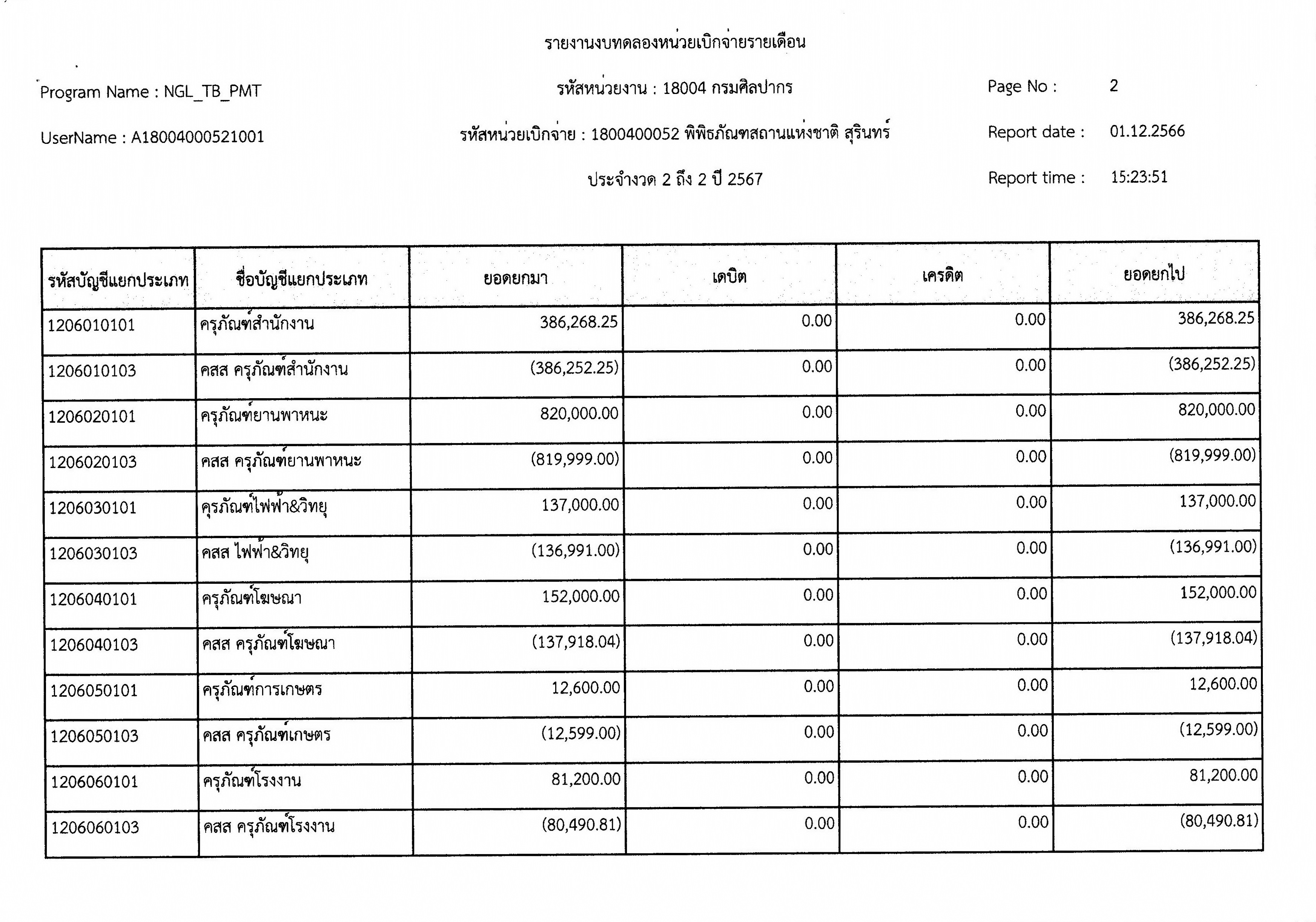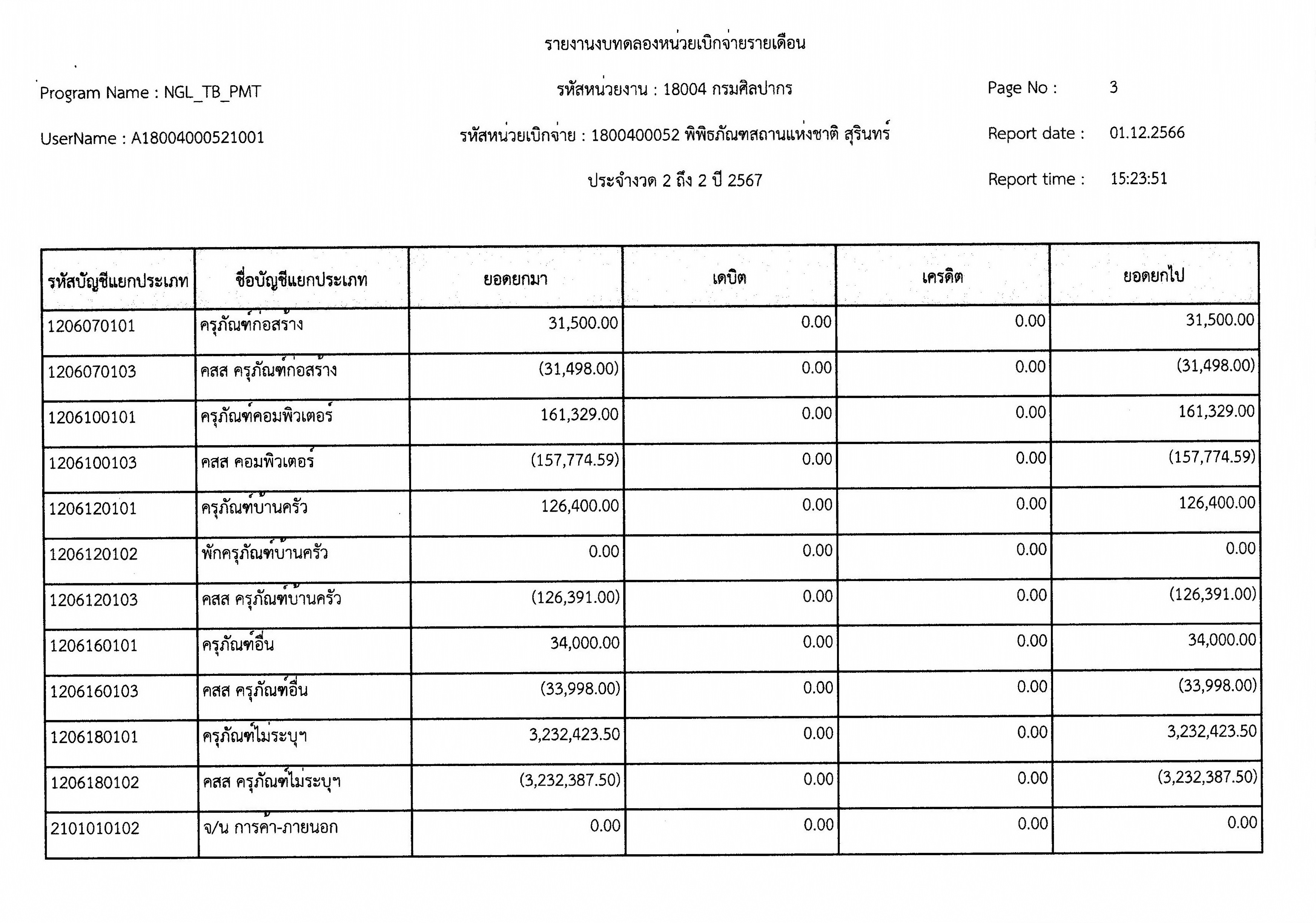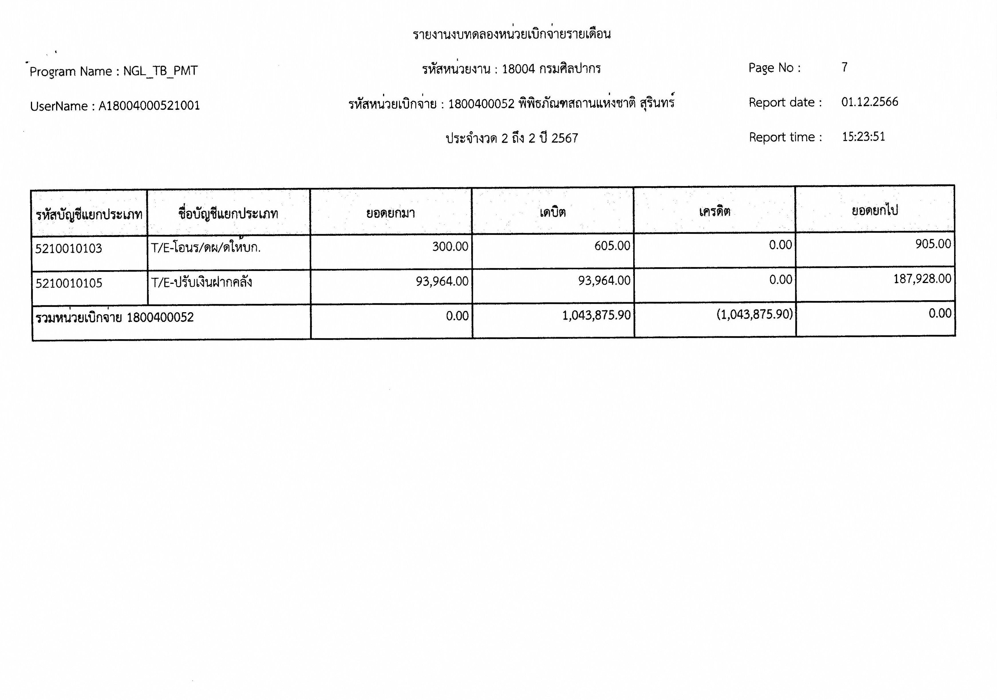 รายงานงบทดลองหน่วยเบิกจ่ายรายเดือน พฤศจิกายน พ.ศ. ๒๕๖๖