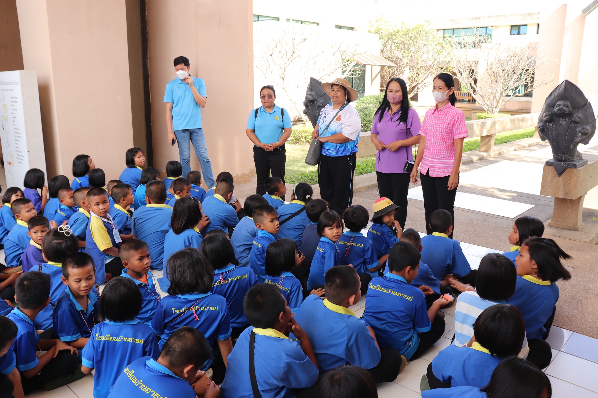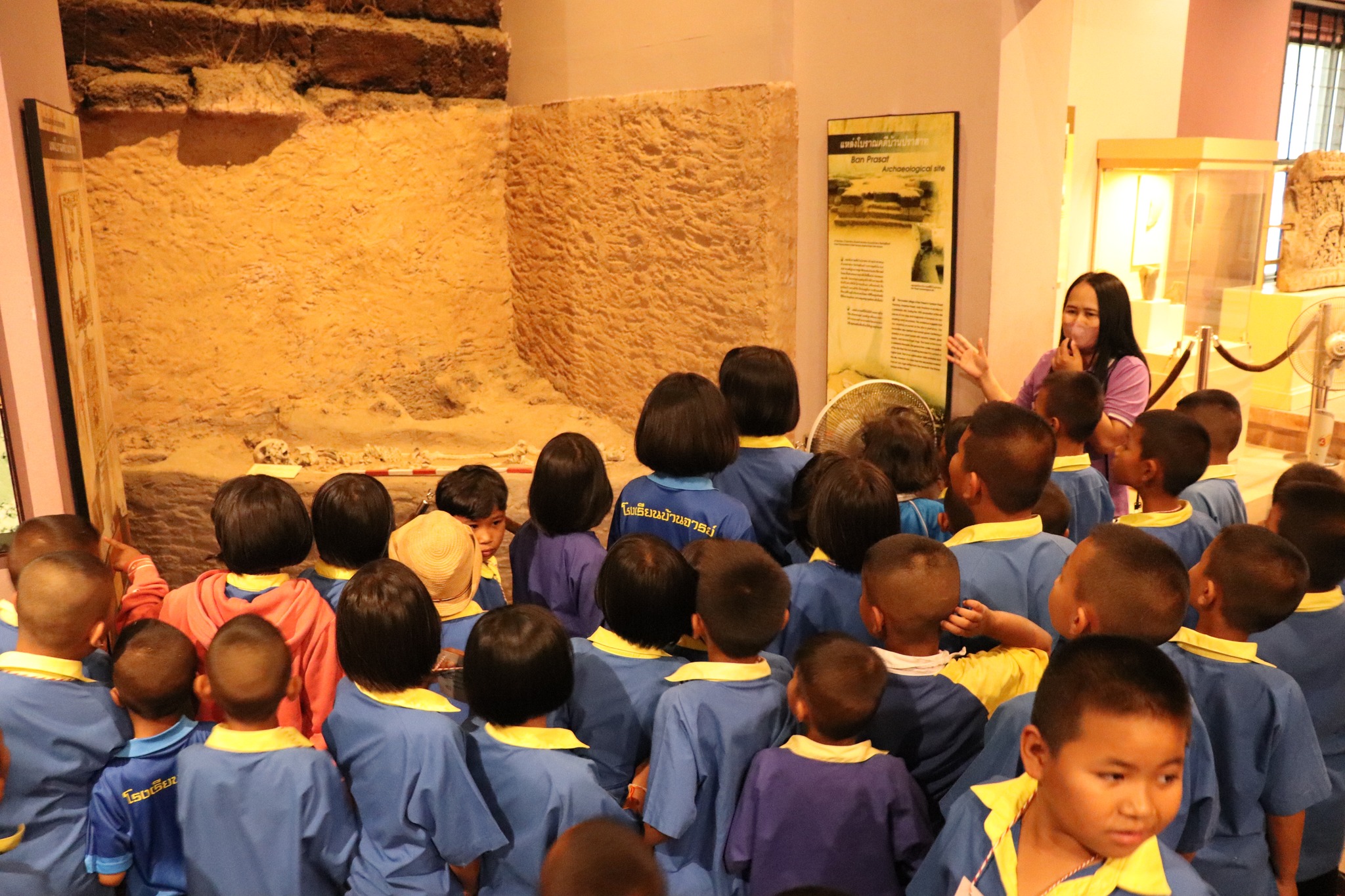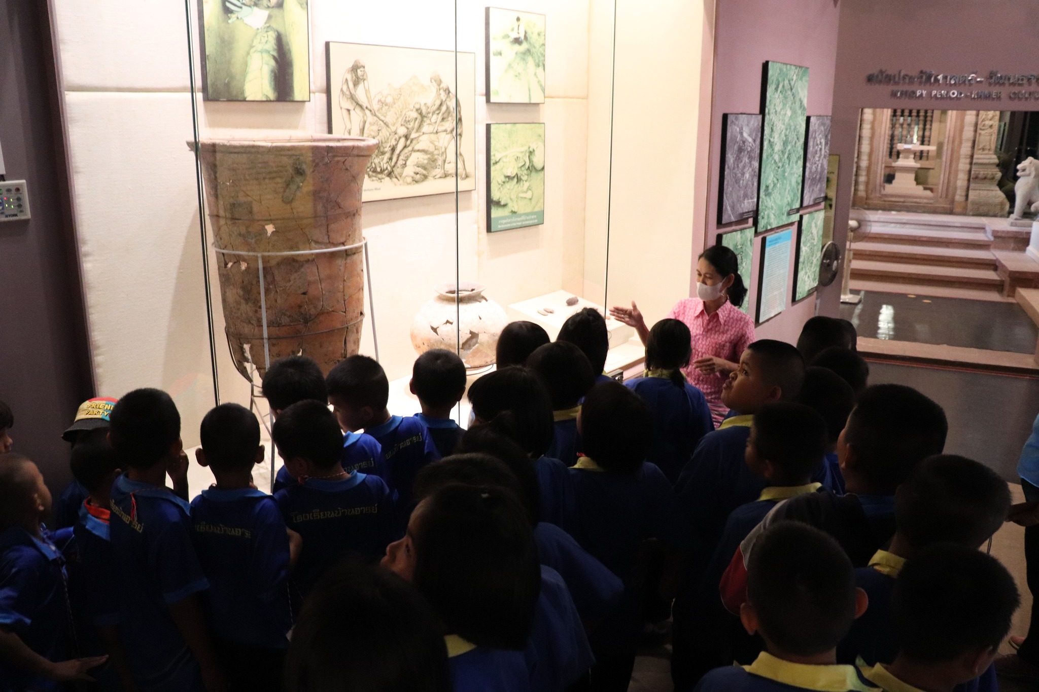 วันพฤหัสบดีที่ ๑๔ ธันวาคม พ.ศ.๒๕๖๖ เวลา ๑๔.๐๐ น. นักเรียนชั้นประถมศึกษาปีที่ ๑-๓ จากโรงเรียนบ้านจารย์ ตำบลบ้านจารย์ อำเภอสังขะ จังหวัดสุรินทร์ จำนวน ๙๘ คน คุณครู ๕ คน เข้าเยี่ยมชมพิพิธภัณฑสถานแห่งชาติ สุรินทร์ โดยมีนางถนอม หลวงกลาง นางศรีสุดา ศรีสด พนักงานประจำห้อง ให้การต้อนรับและบรรยายนำชม