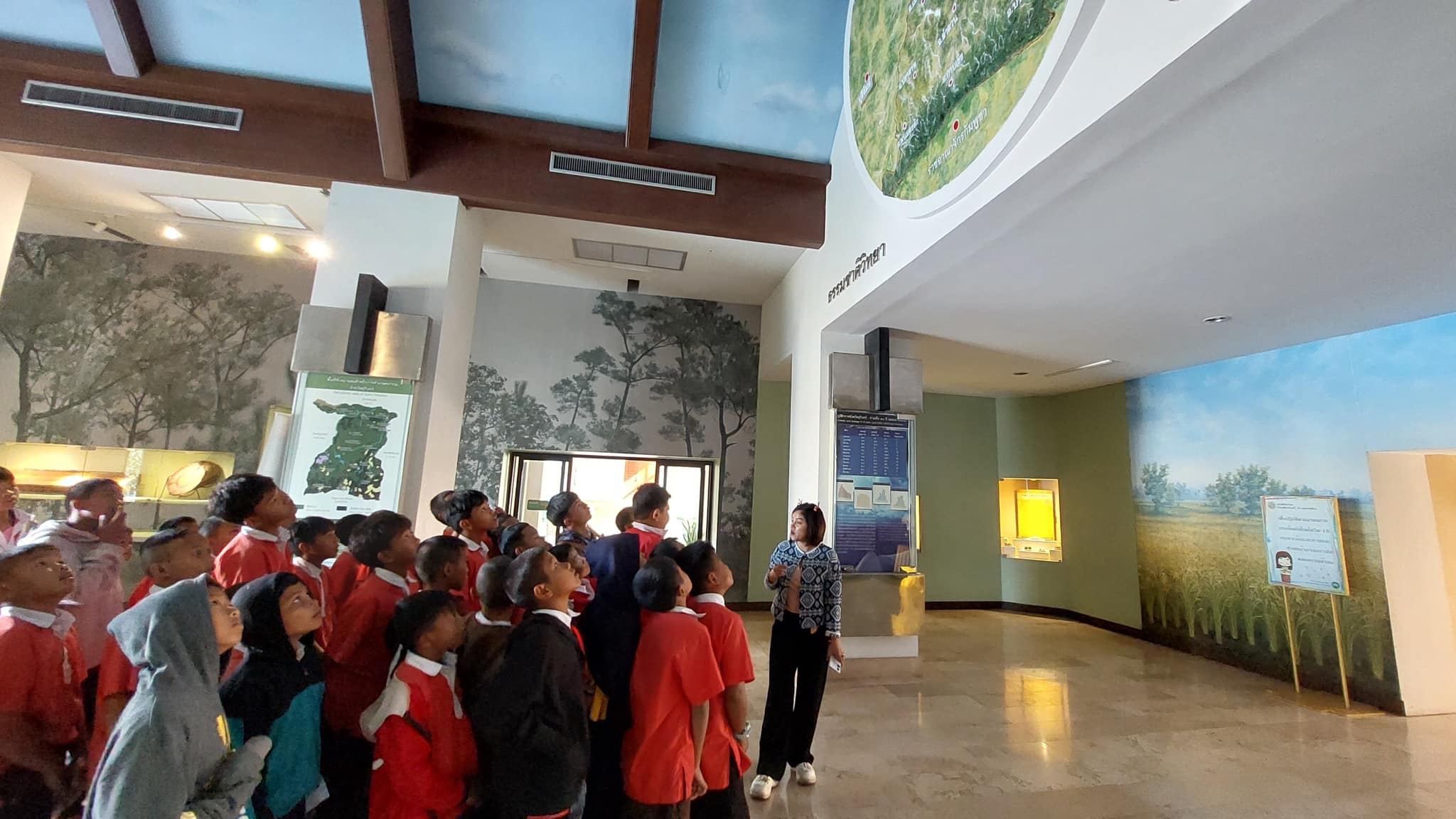วันศุกร์ที่ ๒๒ ธันวาคม พ.ศ. ๒๕๖๖ เวลา ๐๙.๐๐ น. นักเรียนชั้นประถมศึกษาปีที่ ๔ ถึงชั้นมัธยมศึกษาปีที่ ๓ โรงเรียนบ้านสระทอง ตําบลแนงมุด อําเภอกาบเชิง จังหวัดสุรินทร์ จำนวน ๑๖๐ คน คุณครู ๑๕ คน เข้าเยี่ยมชมพิพิธภัณฑสถานแห่งชาติ สุรินทร์ โดยมีนางสาวอาภาภรณ์ เปล่งปลั่งศรี นักวิชาการวัฒนธรรม และพนักงานประจำห้องทุกคน ให้การต้อนรับและบรรยายนำชม
