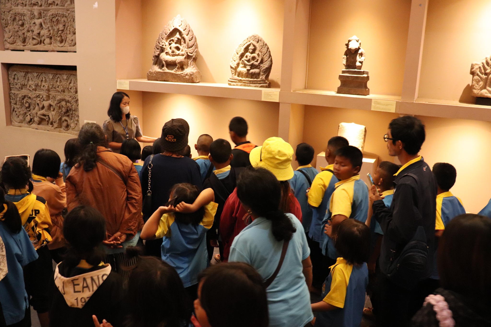 วันศุกร์ที่ ๕ มกราคม พ.ศ.๒๕๖๗ เวลา ๑๓.๐๐ น. นักเรียนชั้นอนุบาล ๒ ถึงชั้นประถมศึกษาปีที่ ๖ โรงเรียนบ้านอำปึลกง ตำบลบ้านพลวง อำเภอปราสาท จังหวัดสุรินทร์ จำนวน ๑๕๖ คน คุณครู ๑๓ คน เข้าเยี่ยมชมพิพิธภัณฑสถานแห่งชาติ สุรินทร์ โดยมีนางถนอม หลวงกลาง นางศรีสุดา ศรีสด พนักงานประจำห้อง ให้การต้อนรับและบรรยายนำชม