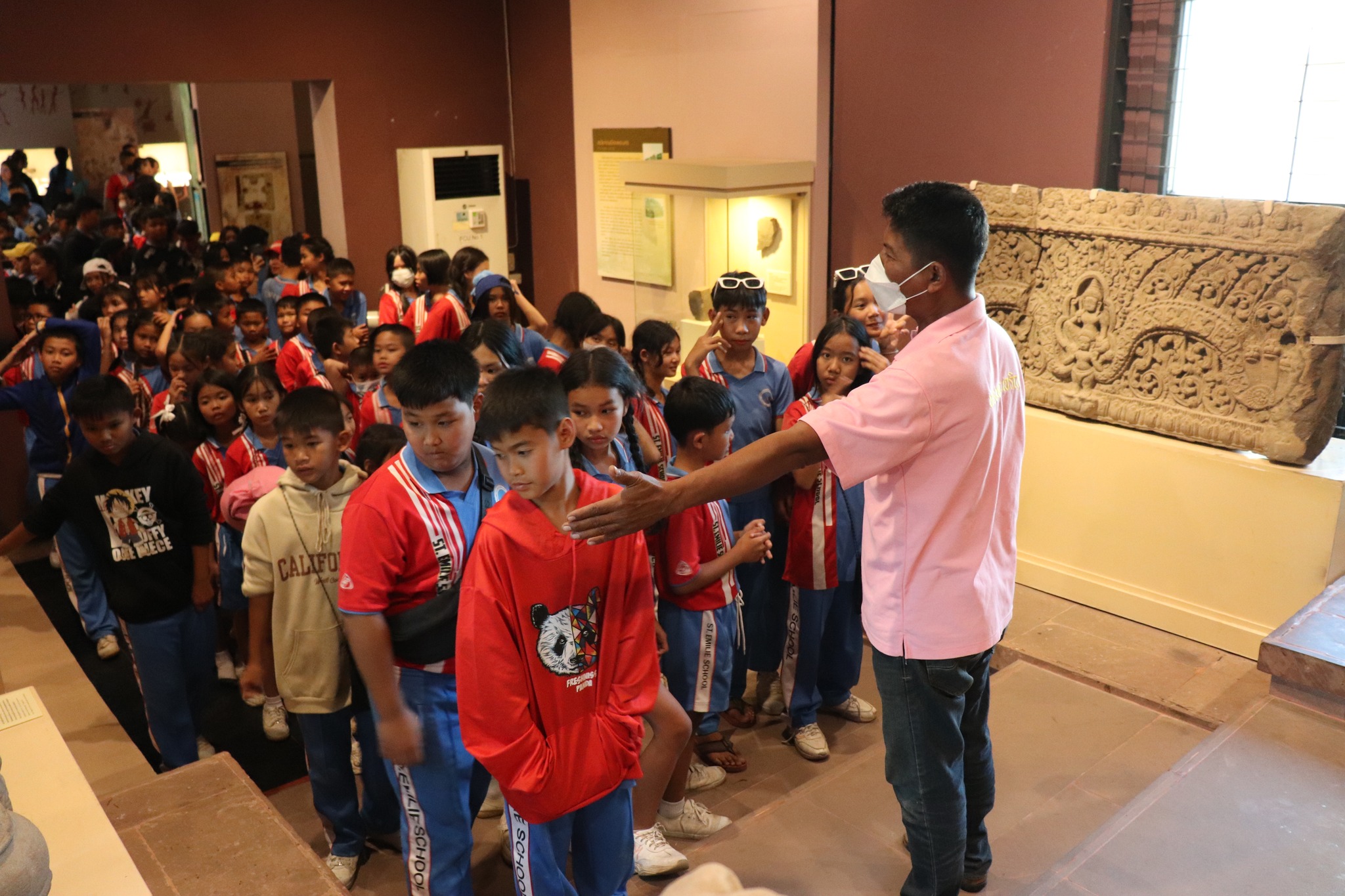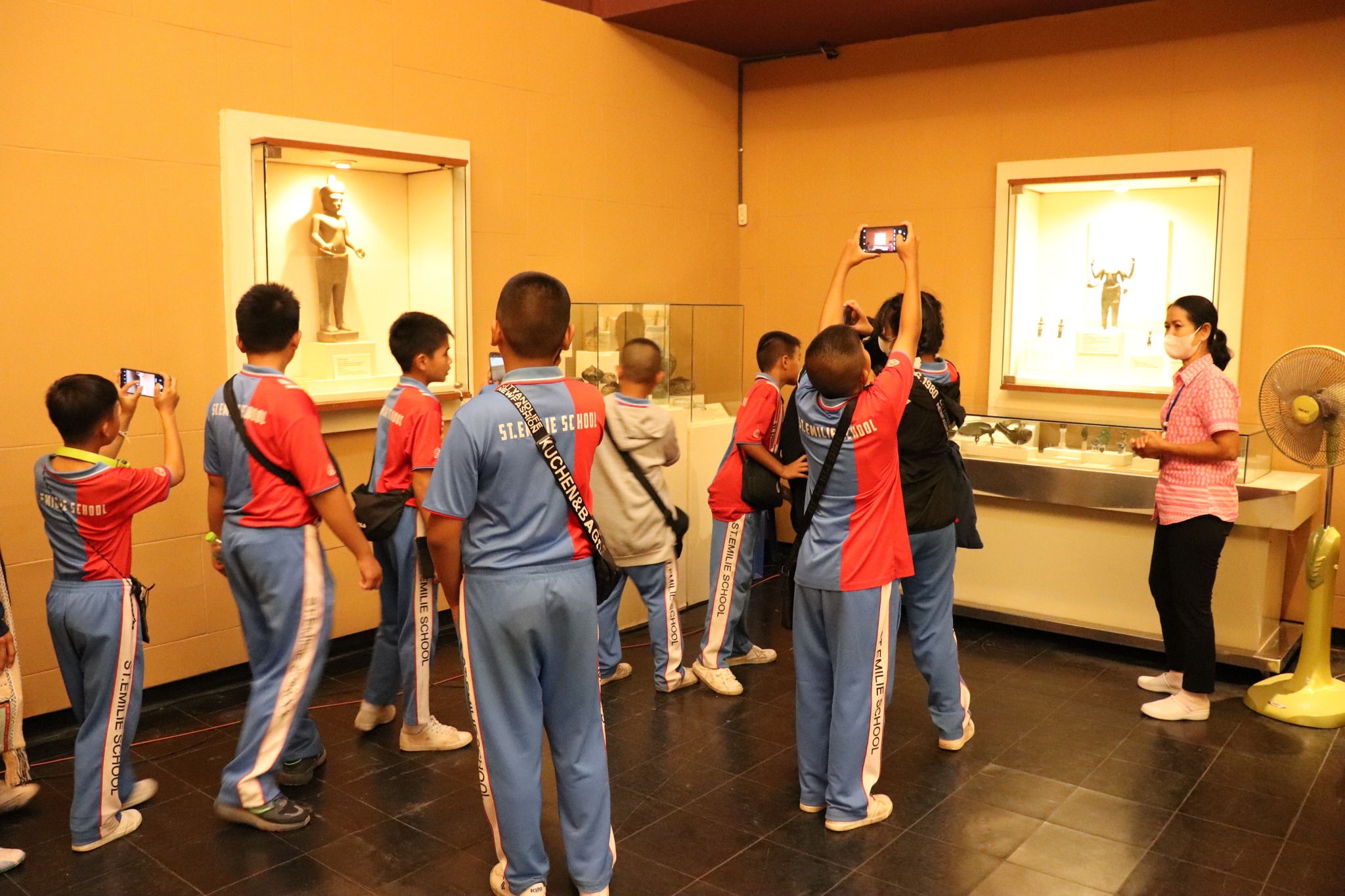 วันพฤหัสบดีที่ ๑๘ มกราคม พ.ศ. ๒๕๖๗ เวลา ๑๔.๐๐ น. นักเรียนชั้นประถมศึกษาปีที่ ๑-๖ โรงเรียนเซ็นต์เอเมลี ตำบลในเมือง อำเภอเมืองฯ จังหวัดอุบลราชธานี จำนวน ๒๕๐ คน คุณครู ๑๕ คน เข้าเยี่ยมชมพิพิธภัณฑสถานแห่งชาติ สุรินทร์ โดยมีนางถนอม หลวงกลาง นางศรีสุดา ศรีสด นายแก่นแก้ว หอมนวล พนักงานประจำห้องทุกคน ให้การต้อนรับและบรรยายนำชม