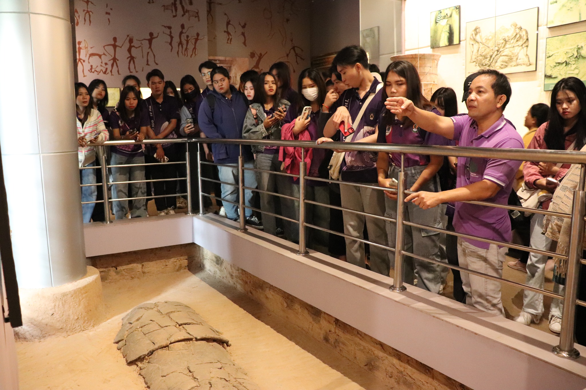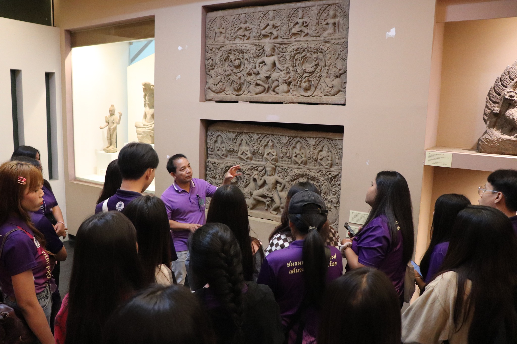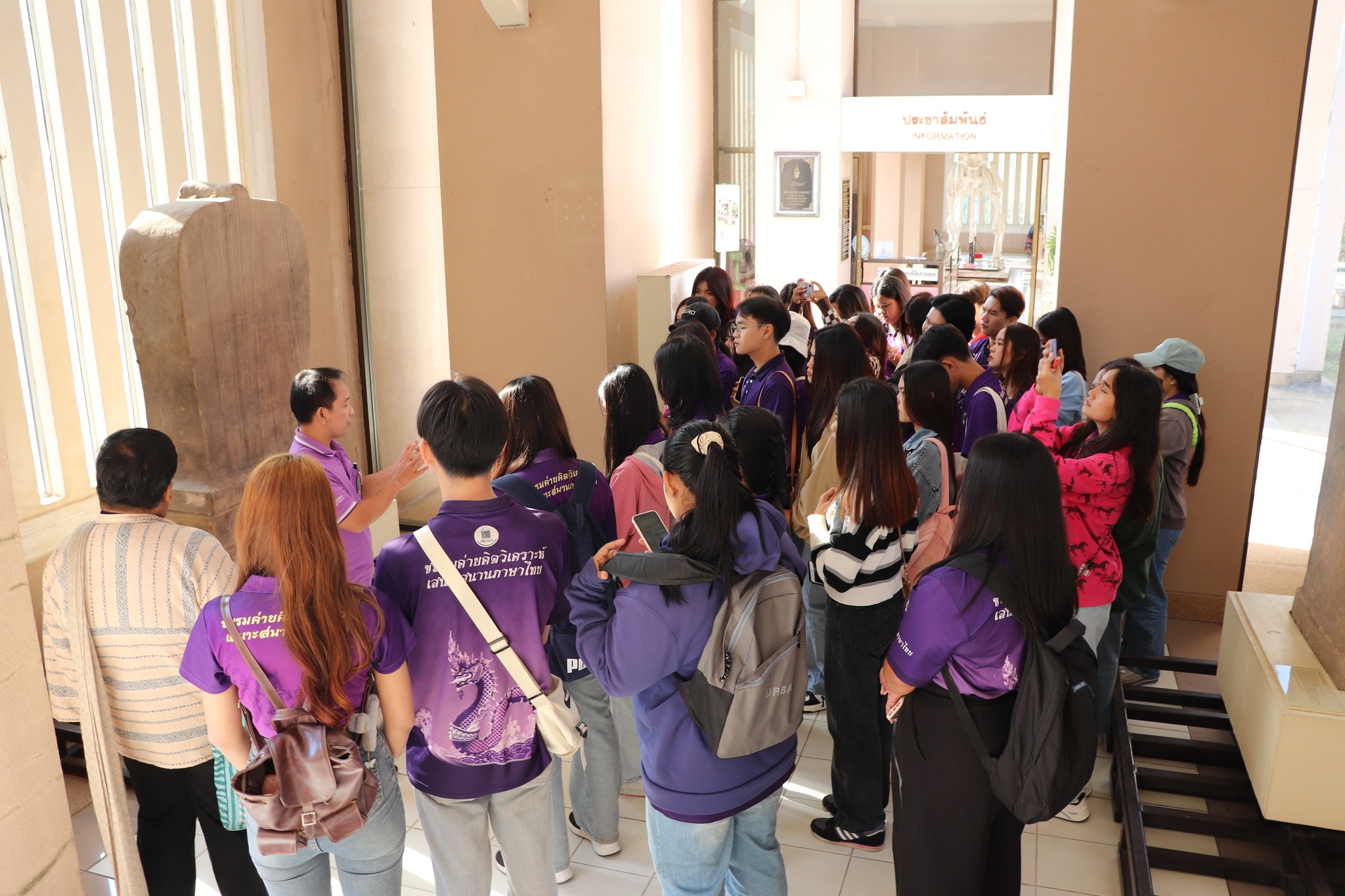 วันเสาร์ที่ ๒๗ มกราคม พ.ศ. ๒๕๖๗ เวลา ๐๙.๐๐-๑๐.๐๐ น. นักศึกษาชั้นปีที่ ๓ สาขาวิชาภาษาไทย คณะมนุษยศาสตร์และสังคมศาสตร์ มหาวิทยาลัยราชภัฏบุรีรัมย์ จังหวัดบุรีรัมย์ จำนวน ๔๕ คน อาจารย์ ๓ คน เข้าเยี่ยมชมพิพิธภัณฑสถานแห่งชาติ สุรินทร์ โดยมีนายกรภัทร์ สุขใหญ่ พนักงานประจำพิพิธภัณฑ์ ให้การต้อนรับและบรรยายนำชม