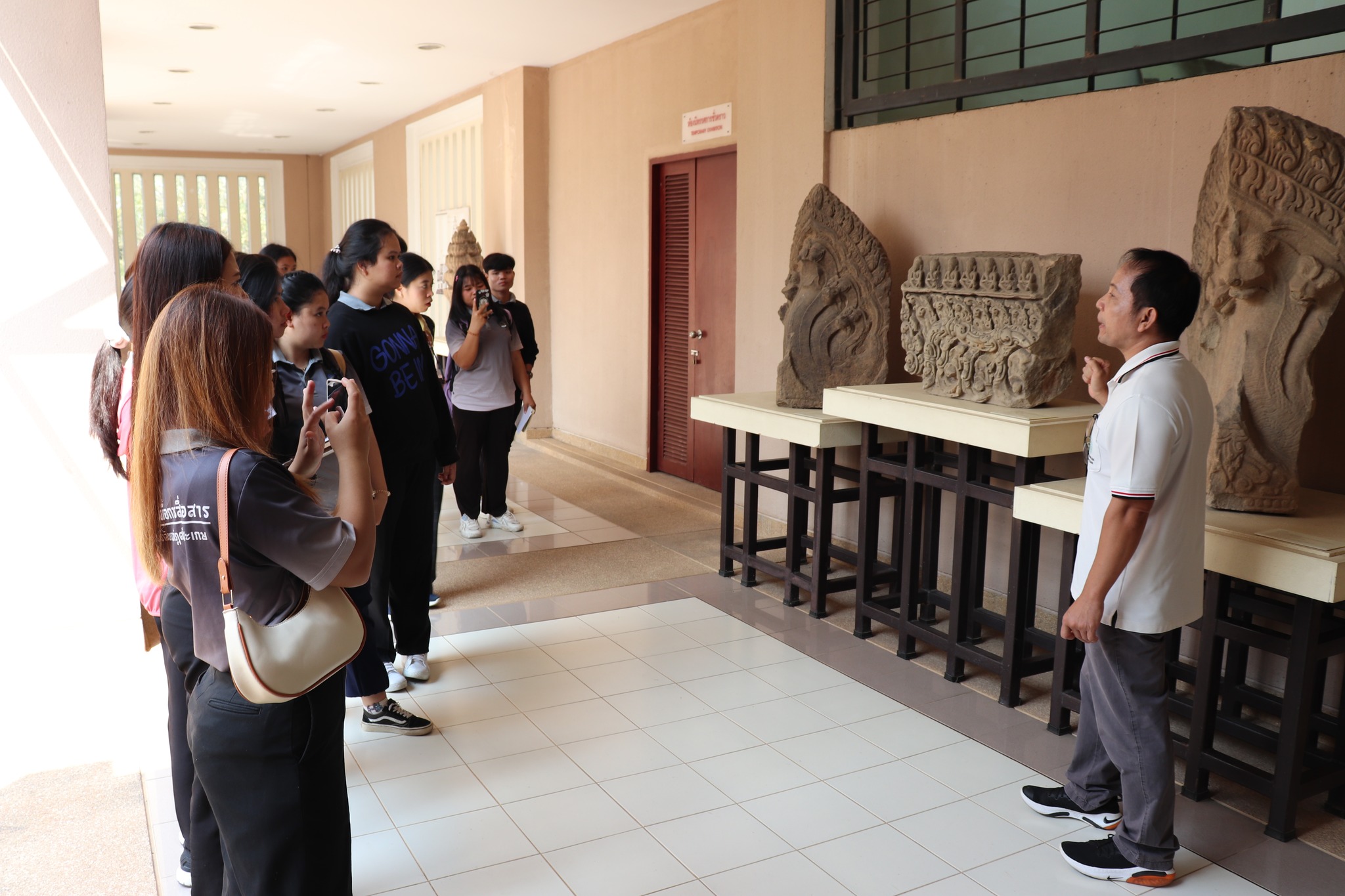 วันศุกร์ที่ ๒ กุมภาพันธ์ พ.ศ.๒๕๖๗ เวลา ๑๑.๓๐-๑๒.๓๐ น. นักศึกษาชั้นปีที่ ๓ สาขาวิชาภาษาไทยเพื่อการสื่อสาร คณะมนุษยศาสตร์และสังคมศาสตร์ มหาวิทยาลัยราชภัฏศรีสะเกษ จำนวน ๔๕ คน อาจารย์ ๓ คน เข้าเยี่ยมชมพิพิธภัณฑสถานแห่งชาติ สุรินทร์ โดยมีนายกรภัทร์ สุขใหญ่ พนักงานประจำพิพิธภัณฑ์ ให้การต้อนรับและบรรยายนำชม