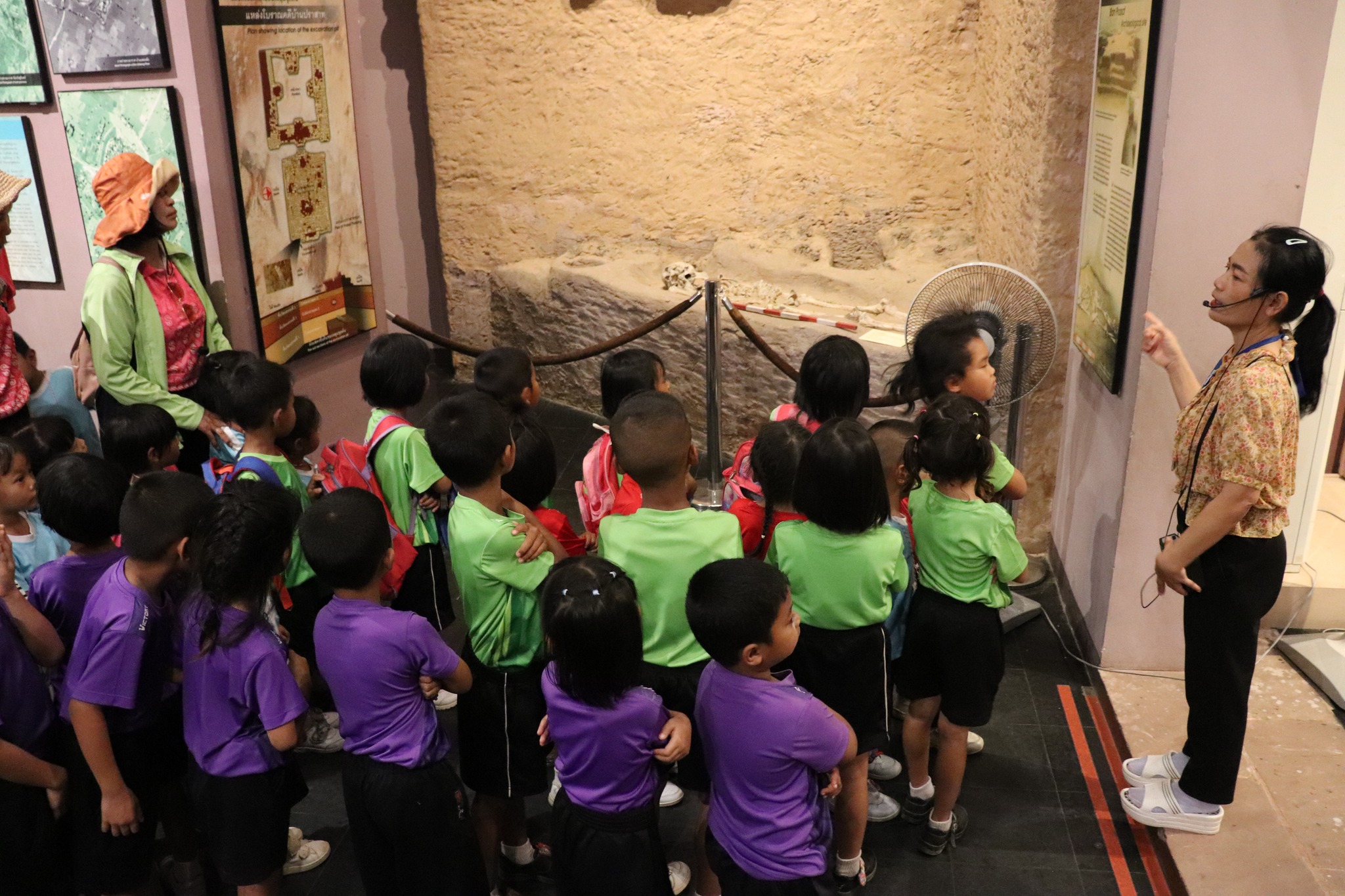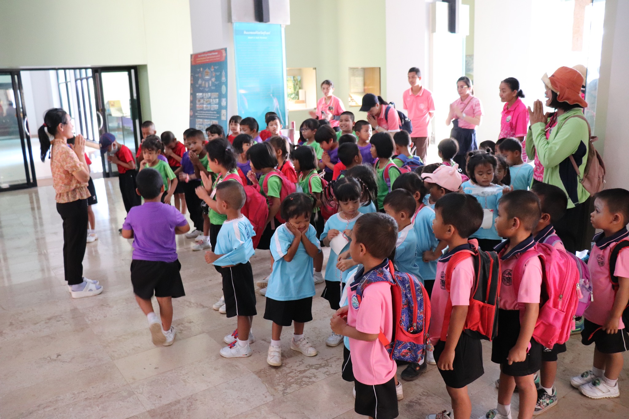 วันพฤหัสบดีที่ ๘ กุมภาพันธ์ พ.ศ. ๒๕๖๗ เวลา ๑๓.๓๐ น.นักเรียนศูนย์พัฒนาเด็กเล็กเทศบาลตำบลกันตวจระมวล อำเภอปราสาท จังหวัดสุรินทร์ จำนวน ๑๑๕ คน คุณครู ๑๕ คน เข้าเยี่ยมชมพิพิธภัณฑสถานแห่งชาติ สุรินทร์ โดยมี นางสาวอภิญญา สุขใหญ่ พนักงานประจำห้อง ให้การต้อนรับและบรรยายนำชม