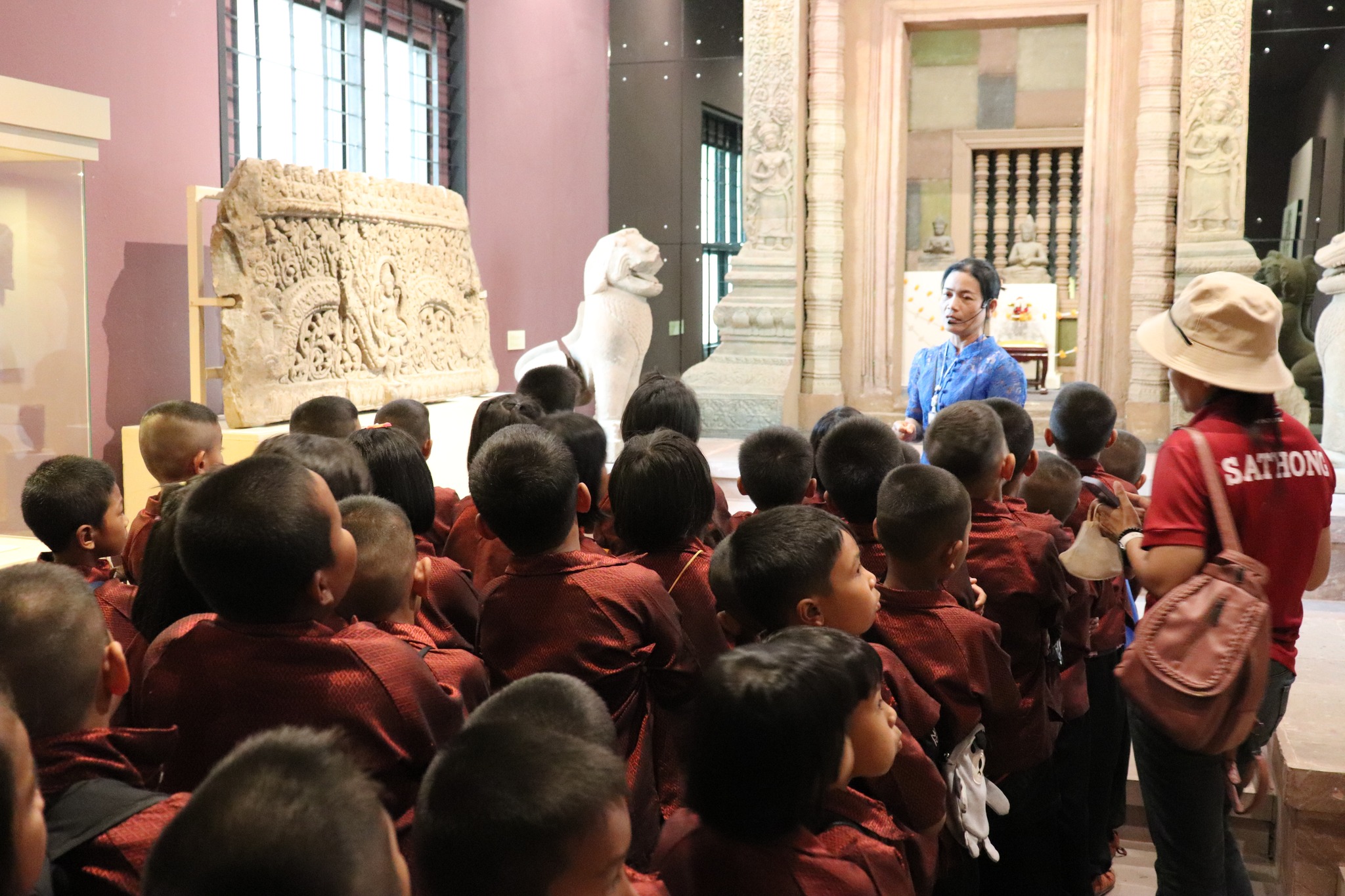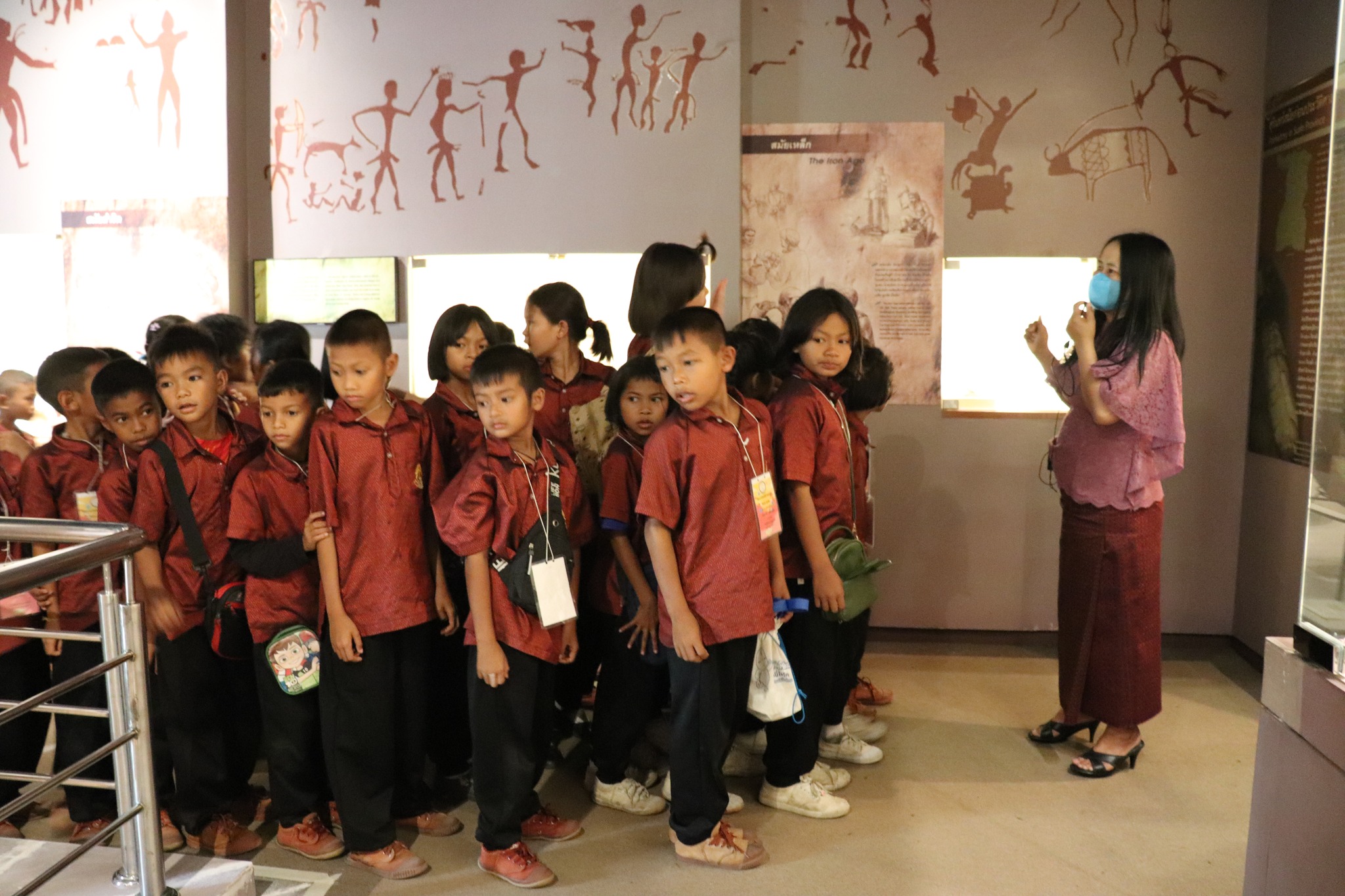 วันศุกร์ที่ ๙ กุมภาพันธ์ พ.ศ. ๒๕๖๗ เวลา ๑๓.๓๐ น. นักเรียนชั้นประถมศึกษาปีที่ ๑ - ๓ โรงเรียนบ้านสระทอง ตำบลแนงมุด อำเภอกาบเชิง จังหวัดสุรินทร์ จำนวน ๘๗ คน คุณครู ๑๐ คน เข้าเยี่ยมชมพิพิธภัณฑสถานแห่งชาติ สุรินทร์ โดยมีนางสาวอภิญญา สุขใหญ่ นางศรีสุดา ศรีสด พนักงานประจำห้อง ให้การต้อนรับและบรรยายนำชม