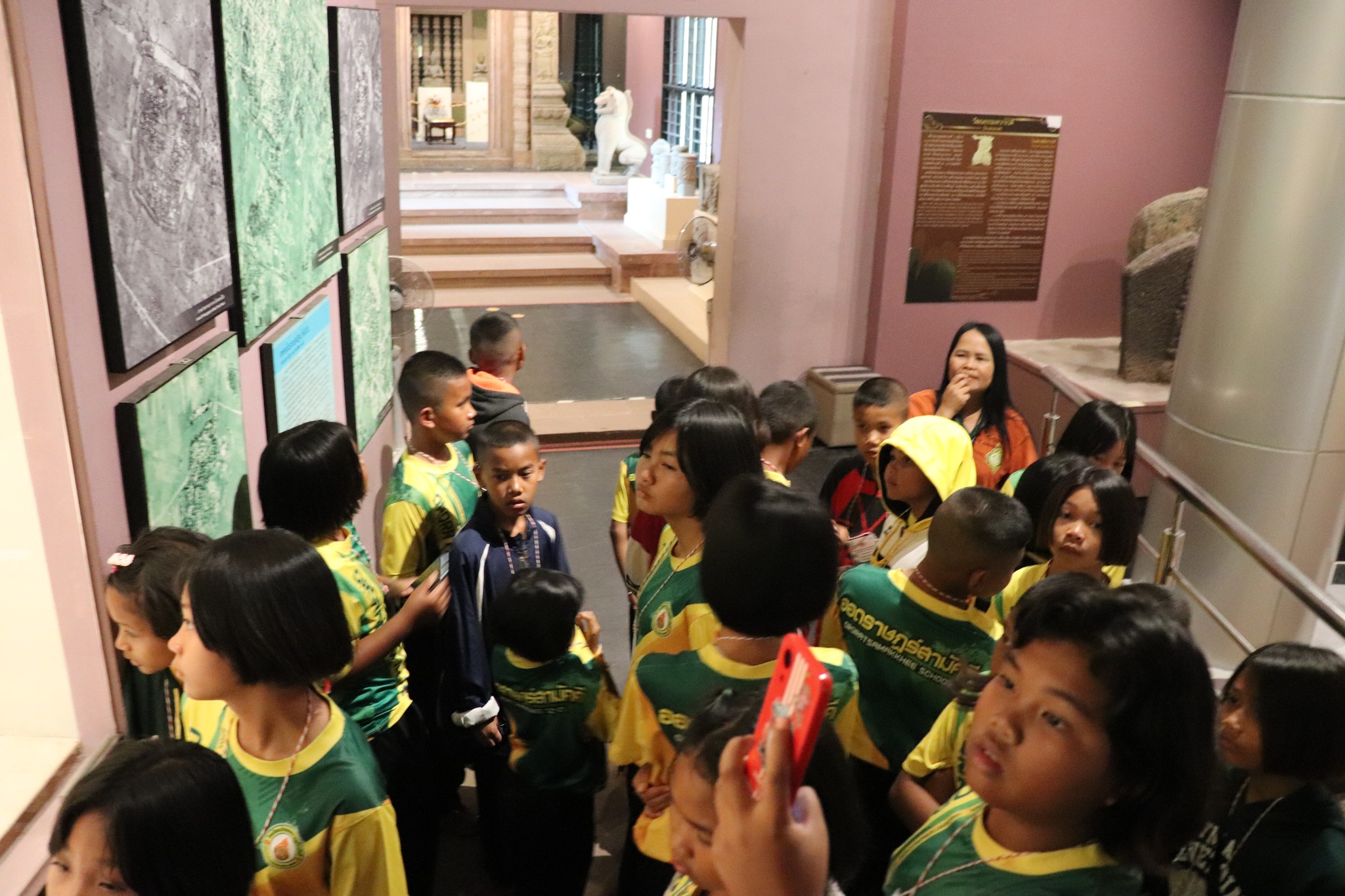 วันพฤหัสบดีที่ ๑๕ กุมภาพันธ์ พ.ศ.๒๕๖๗ เวลา ๑๐.๓๐ น. นักเรียนชั้นอนุบาล ๒ ถึงชั้นประถมศึกษาที่ ๖ โรงเรียนบ้านออดราษฎร์สามัคคี อำเภอบัวเชด จังหวัดสุรินทร์ จำนวน ๑๐๐ คน คุณครู ๑๐ คน เข้าเยี่ยมชมพิพิธภัณฑสถานแห่งชาติ สุรินทร์ โดยมีนางศรีสุดา ศรีสด นายแก่นแก้ว หอมนวล พนักงานประจำห้อง ให้การต้อนรับและบรรยายนำชม