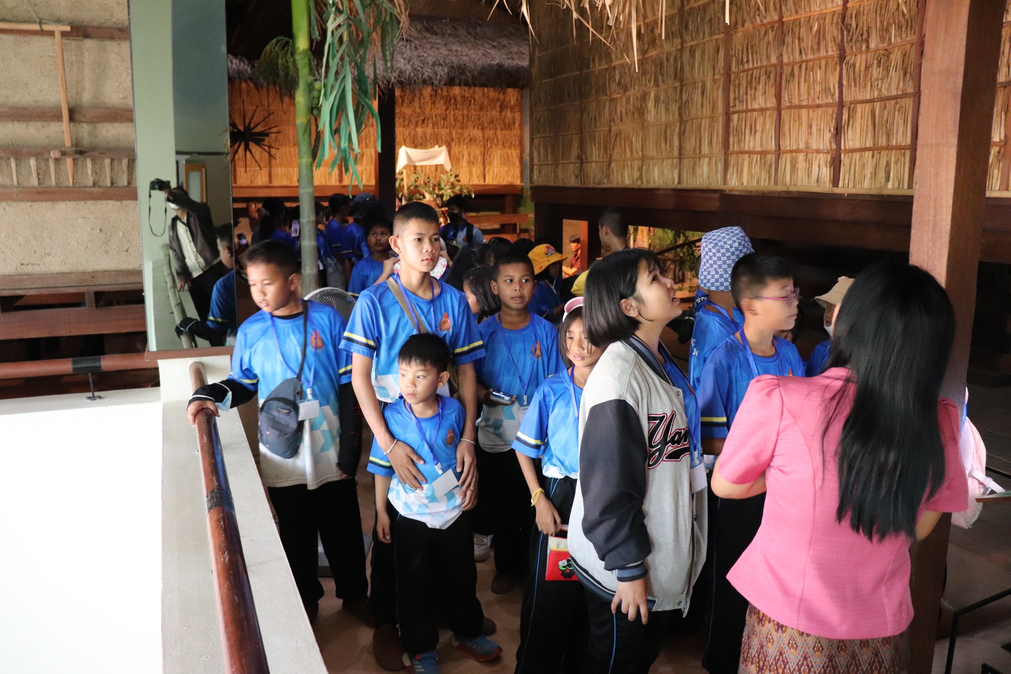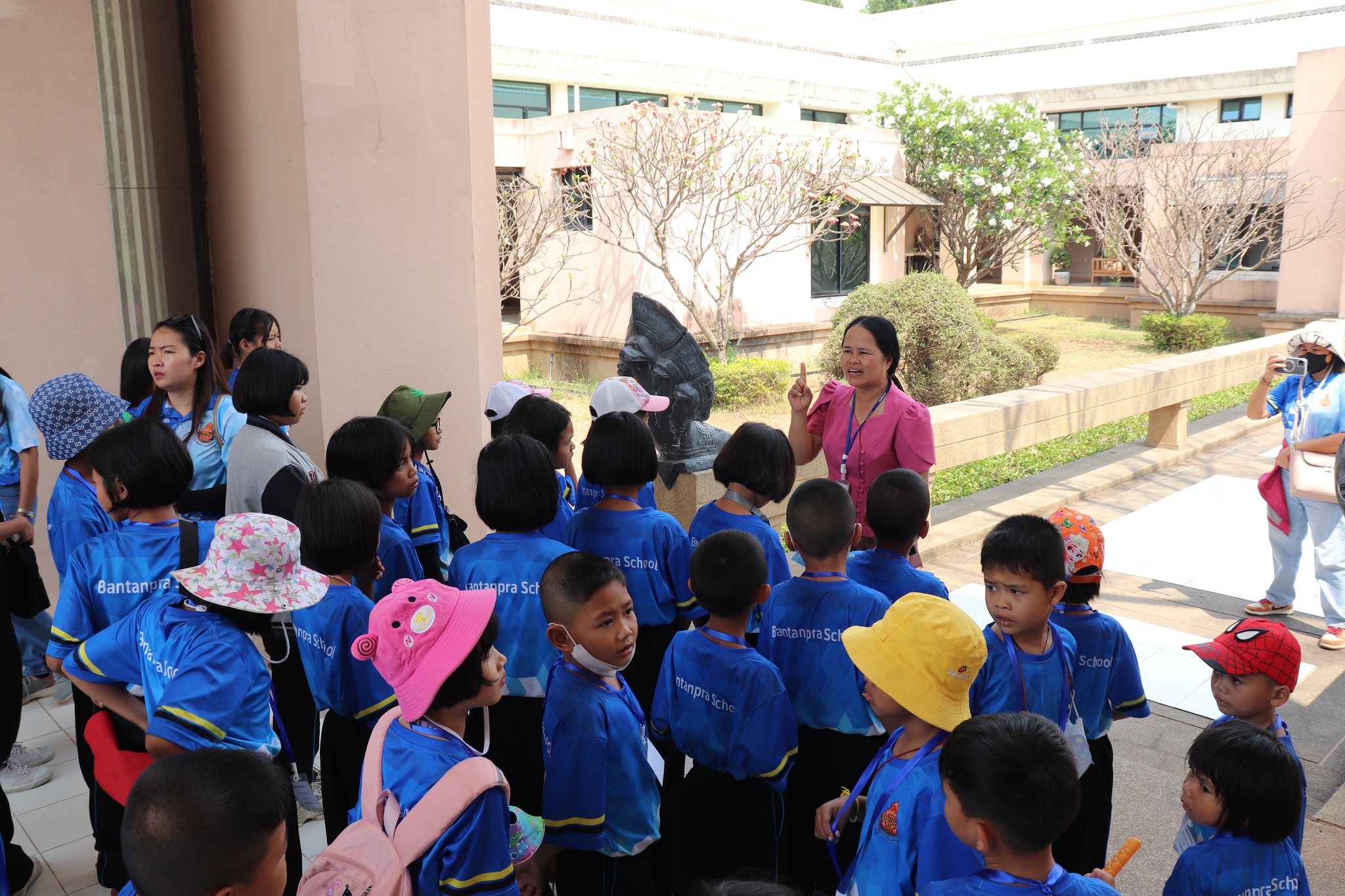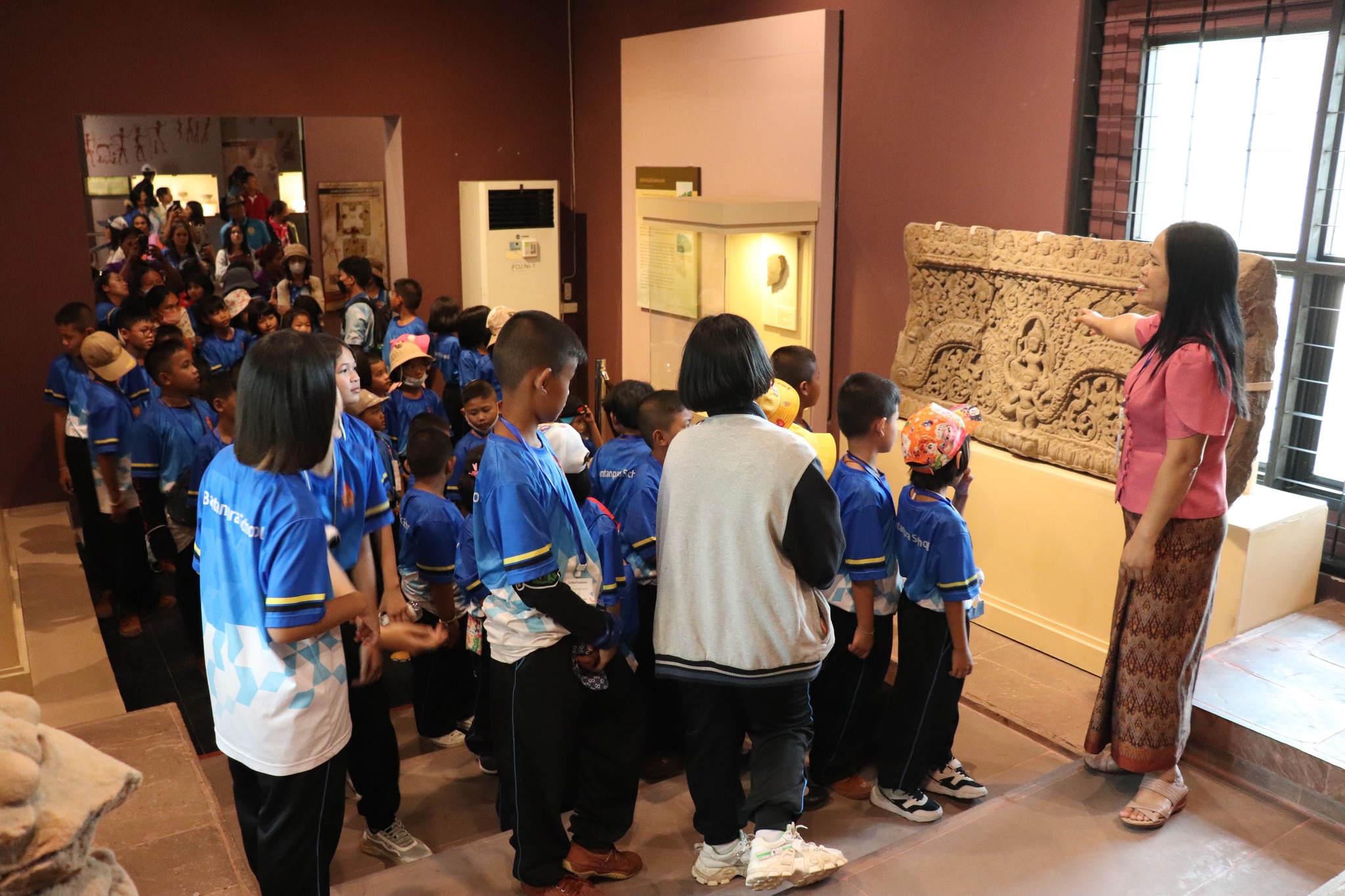 วันศุกร์ที่ ๑ มีนาคม พ.ศ. ๒๕๖๗ เวลา ๑๓.๐๐ น. นักเรียนชั้นอนุบาล ๑ ถึงชั้นประถมศึกษาที่ ๖ โรงเรียนบ้านแท่นพระ ตำบลหนองคู อำเภอลำปลายมาศ จังหวัดบุรีรัมย์ จำนวน ๙๐ คน คุณครูผู้ปกครอง ๒๒ คน เข้าเยี่ยมชมพิพิธภัณฑสถานแห่งชาติ สุรินทร์ โดยมีนางศรีสุดา ศรีสด พนักงานประจำห้อง ให้การต้อนรับและบรรยายนำชม