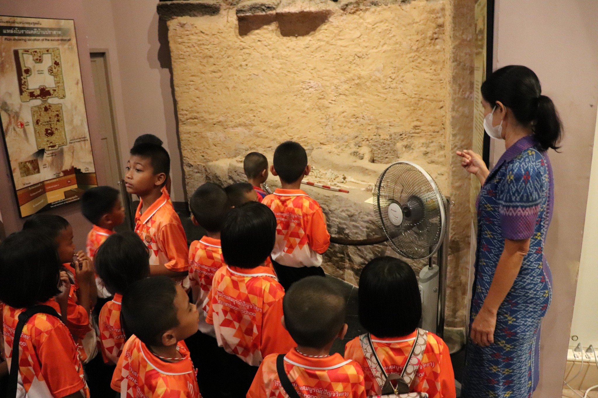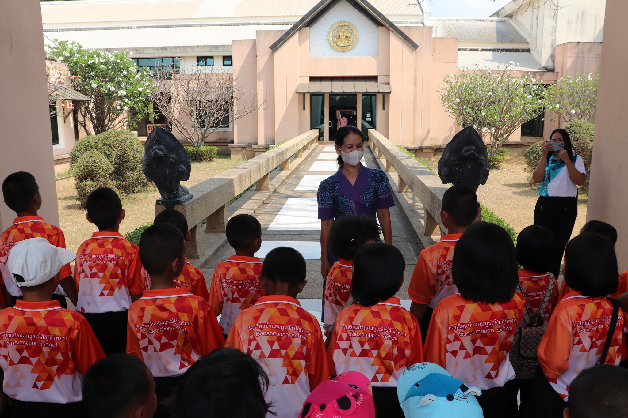 วันศุกร์ที่ ๑ มีนาคม พ.ศ. ๒๕๖๗ เวลา ๑๓.๓๐ น. นักเรียนชั้นอนุบาล ๒ ถึงชั้นประถมศึกษาที่ ๒ โรงเรียนบ้านสมบูรณ์(ปัญจวิทยา) ตำบลกุดหวาย อำเภอศีขรภูมิ จังหวัดสุรินทร์ จำนวน ๔๕ คน คุณครู ๑๐ คน เข้าเยี่ยมชมพิพิธภัณฑสถานแห่งชาติ สุรินทร์ โดยมีนางถนอม หลวงกลาง พนักงานประจำห้อง ให้การต้อนรับและบรรยายนำชม