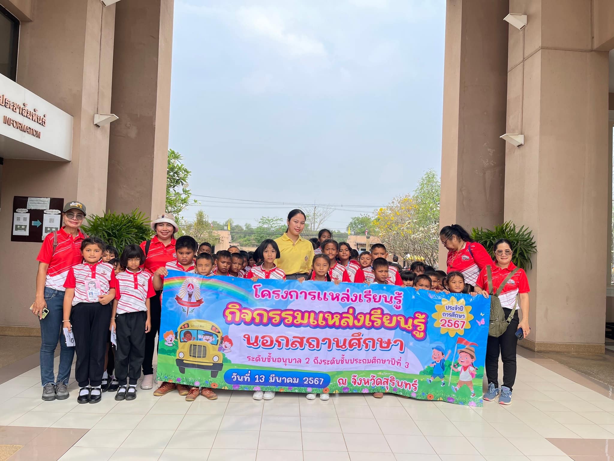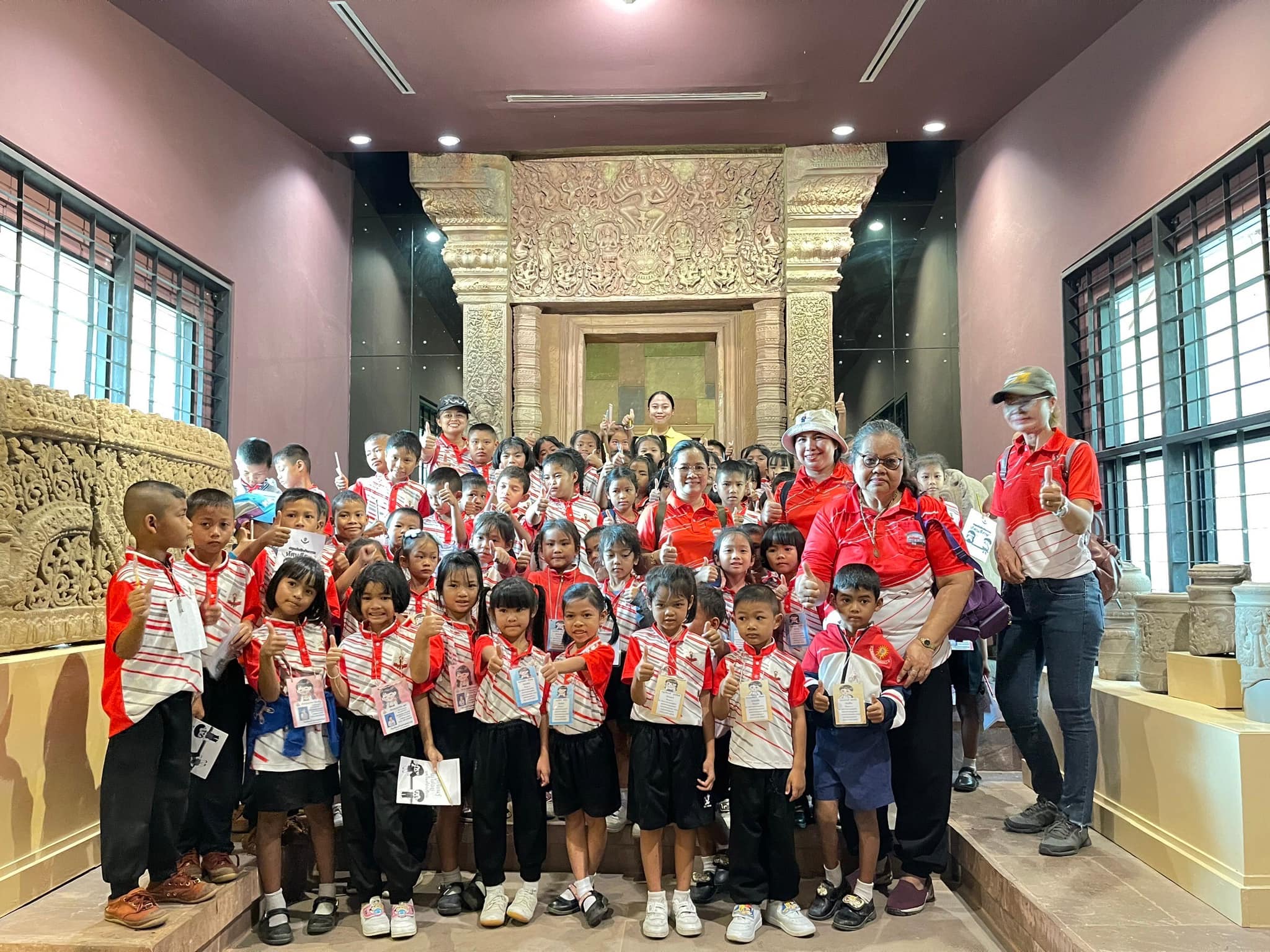 วันพุธที่ ๑๓ มีนาคม พ.ศ. ๒๕๖๗ เวลา ๑๐.๐๐ น. นักเรียนชั้นอนุบาล ๒ ถึงชั้นประถมศึกษาปีที่ ๓ โรงเรียนบ้านเกษตรถาวร ตำบลด่าน อำเภอกาบเชิง จังหวัดสุรินทร์ จำนวน ๓๐ คน คุณครู ๑๐ คน เข้าเยี่ยมชมพิพิธภัณฑสถานแห่งชาติ สุรินทร์ โดยมี นายนพรัศม์ เมธีวราธนานันท์ ภัณฑารักษ์ปฏิบัติการ ให้การต้อนรับและบรรยายนำชม