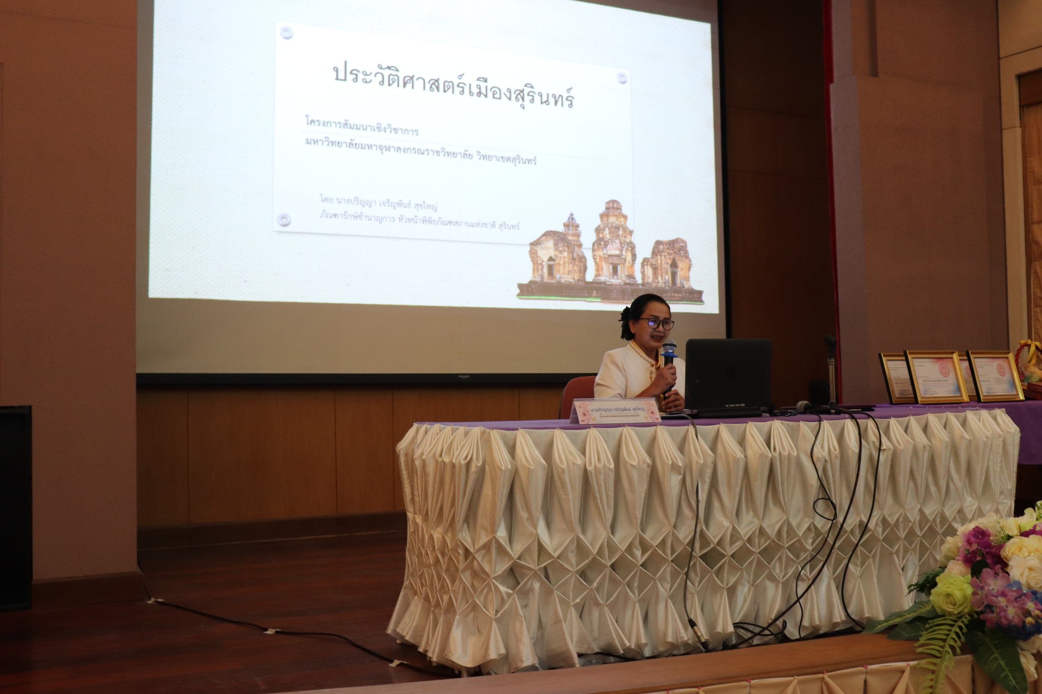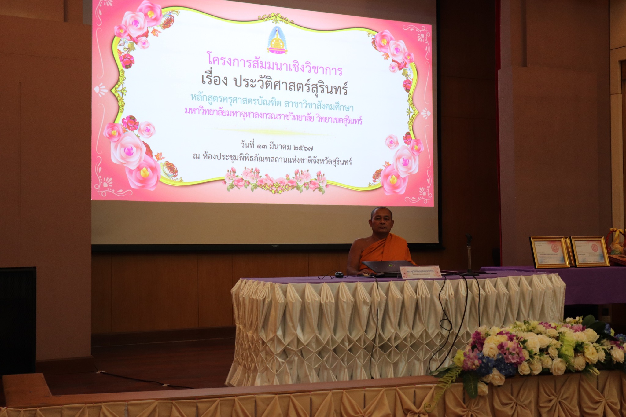 วันพุธที่ ๑๓ มีนาคม พ.ศ.๒๕๖๗ พิพิธภัณฑสถานแห่งชาติ สุรินทร์ ให้การต้อนรับคณาจารย์และนิสิตมหาวิทยาลัยมหาจุฬาลงกรณ์ราชวิทยาลัย วิทยาเขตสุรินทร์ หลักสูตรครุศาสตร์บัณฑิต สาขาสังคมศึกษา จำนวน ๕๕ รูป/คน โดยมีนางปริญญา สุขใหญ่ หัวหน้าพิพิธภัณฑสถานแห่งชาติ สุรินทร์ และนายกรภัทร์ สุขใหญ่ พนักงานประจำพิพิธภัณฑ์ ต้อนรับและบรรยายให้ความรู้
