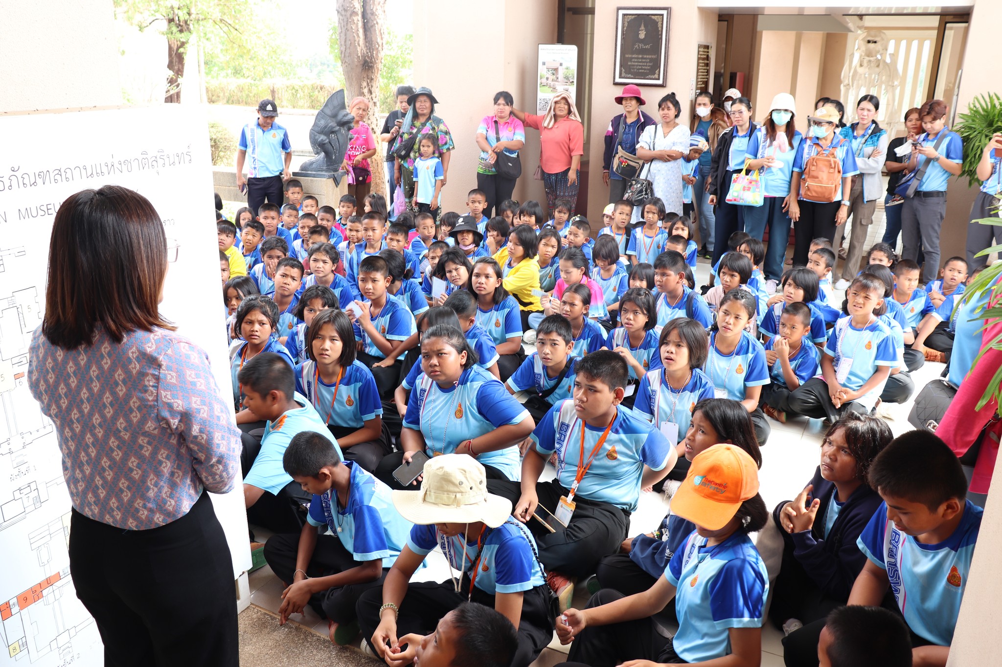 วันศุกร์ที่ ๑๕ มีนาคม พ.ศ.๒๕๖๗ เวลา ๑๔.๓๐ น. นักเรียนชั้นอนุบาล ๑ ถึงชั้นประถมศึกษาปีที่ ๓ โรงเรียนบ้านสวาย ตำบลตาเบา อำเภอปราสาท จังหวัดสุรินทร์ จำนวน ๑๔๐ คน คุณครูและผู้ปกคราอง ๒๐ คน เข้าเยี่ยมชมพิพิธภัณฑสถานแห่งชาติ สุรินทร์ โดยมี นางสาวอาภาภรณ์ เปล่งปลั่งศรี นักวิชาการวัฒนธรรม และนายแก่นแก้ว หอมนวล พนักงานประจำห้อง ให้การต้อนรับและบรรยายนำชม