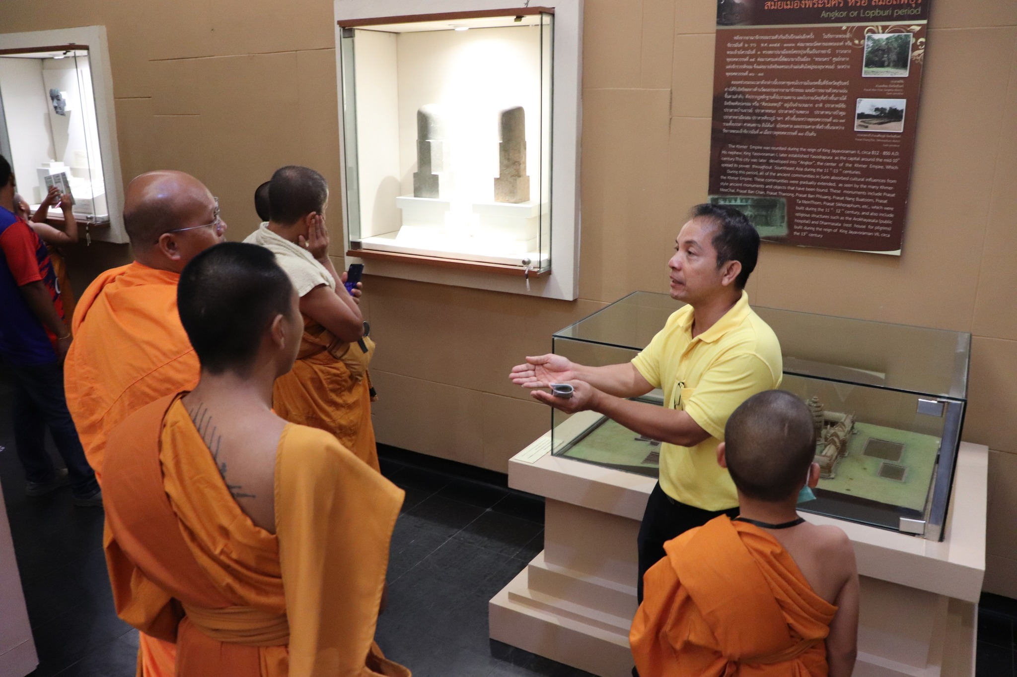 วันพุธที่ ๑๐ เมษายน พ.ศ.๒๕๖๗ เวลา ๑๔.๐๐ น. คณะภิกษุสามเณรที่เข้าร่วมโครงการบรรพชาอุปสมบทภาคฤดูร้อน จากป่าโคกสูง ตำบลหนองแวง อำเภอละหานทราย จังหวัดบุรีรัมย์ จำนวน ๓๐ รูป เข้าเยี่ยมชมพิพิธภัณฑสถานแห่งชาติ สุรินทร์ โดยมีนายกรภัทร์ สุขใหญ่ พนักงานประจำพิพิธภัณฑ์ ให้การต้อนรับและบรรยายนำชม