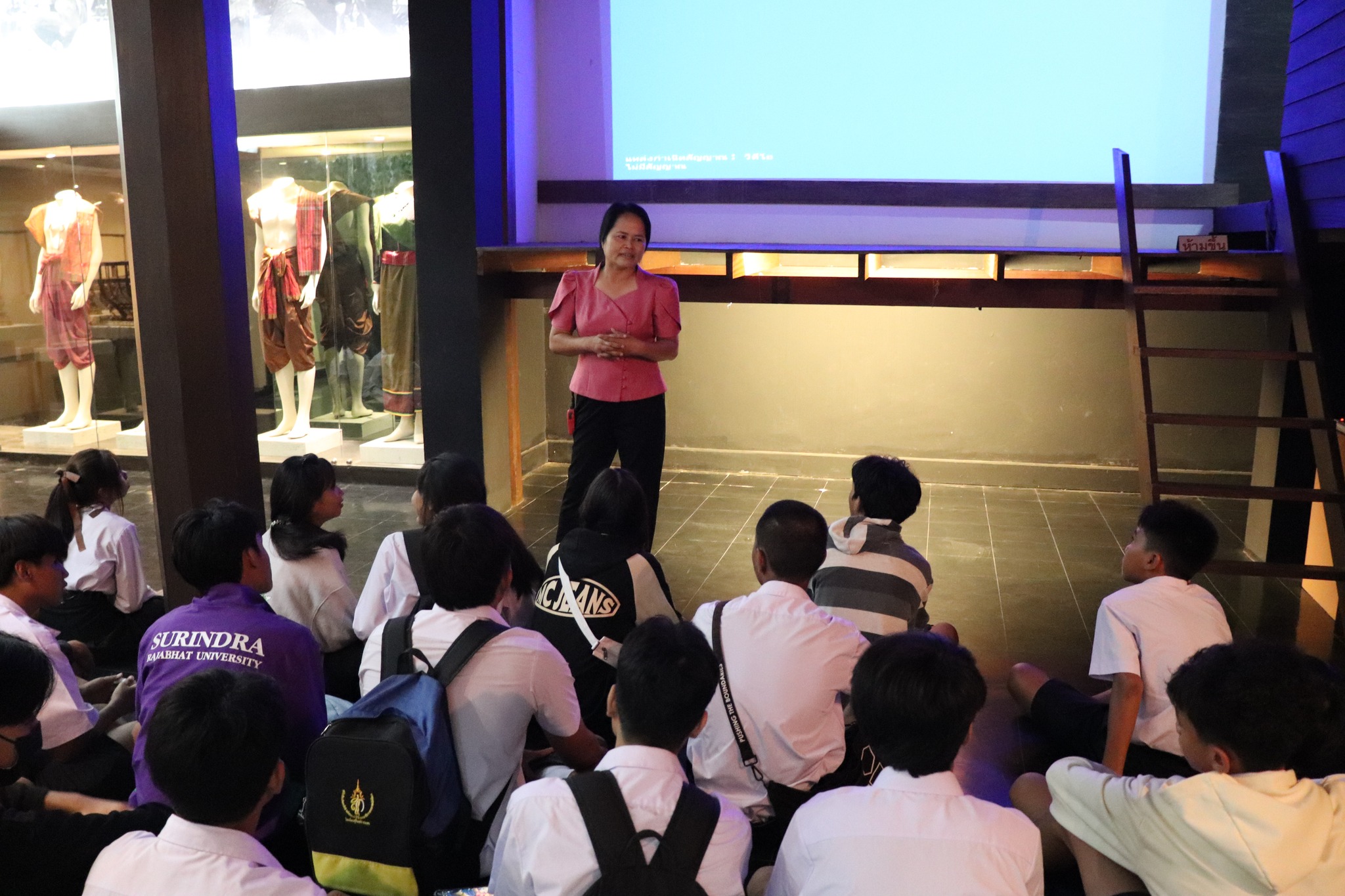 วันศุกร์ที่ ๑๗ พฤษภาคม พ.ศ.๒๕๖๗ เวลา ๐๙.๐๐ น. นักเรียนชั้นมัธยมศึกษาปีที่ ๑-๖ โรงเรียนสุรินทร์ราชมงคล ตำบลนอกเมือง อำเภอเมืองสุรินทร์ จังหวัดสุรินทร์ จำนวน ๒๐๐ คน คุณครู ๓๐ คน เข้าเยี่ยมชมพิพิธภัณฑสถานแห่งชาติ สุรินทร์ โดยมีนางสาวอาภาภรณ์ เปล่งปลั่งศรี นักวิชาการวัฒนธรรม นางถนอม หลวงกลาง นางสาวอภิญญา สุขใหญ่ นางศรีสุดา ศรีสด พนักงานประจำห้อง ให้การต้อนรับและบรรยายนำชม