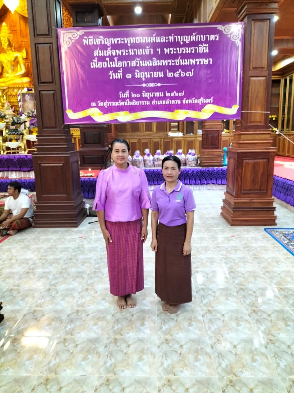 วันศุกร์ที่ ๒๑ มิถุนายน พ.ศ. ๒๕๖๗ นางปริญญา สุขใหญ่ หัวหน้าพิพิธภัณฑสถานแห่งชาติ สุรินทร์ พร้อมเจ้าหน้าที่ เข้าร่วมพิธีเจริญพระพุทธมนต์โครงการรวมใจเทิดไท้สถาบันพระมหากษัตริย์ ประจำปีงบประมาณ ๒๕๖๗ กิจกรรมเฉลิมพระเกียรติสมเด็จพระนางเจ้าสุทิดา พัชรสุธาพิมลลักษณ พระบรมราชินี เนื่องในโอกาสวันเฉลิมพระชนมพรรษา ๓ มิถุนายน ๒๕๖๗ ณ วัดสุวรรณรัตน์โพธิยาราม ตำบลลำดวน อำเภอลำดวน จังหวัดสุรินทร์