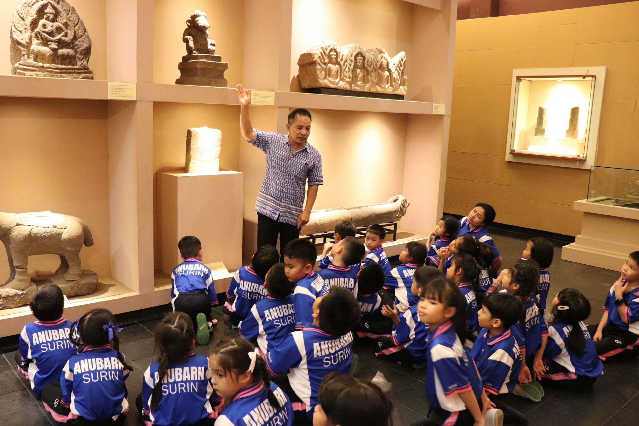 วันพฤหัสบดีที่ ๒๕ กรกฎาคม พ.ศ. ๒๕๖๗ โรงเรียนอนุบาลสุรินทร์ ตำบลในเมือง อำเภอเมืองฯ จังหวัดสุรินทร์ จัดโครงการค่ายวิชาการภาษาอังกฤษ "English Camp On Tour 2024" (ค่ายเสริมประสบการณ์การเรียนรู้ภาษาอังกฤษ) สำหรับนักเรียนโครงการจัดการเรียนการสอนตามหลักสูตรกระทรวงศึกษาธิการเป็นภาษาอังกฤษ ชั้นประถมศึกษาปีที่ ๑-๒ จึงได้ขอความอนุเคราะห์สถานที่พิพิธภัณฑสถานแห่งชาติ สุรินทร์
