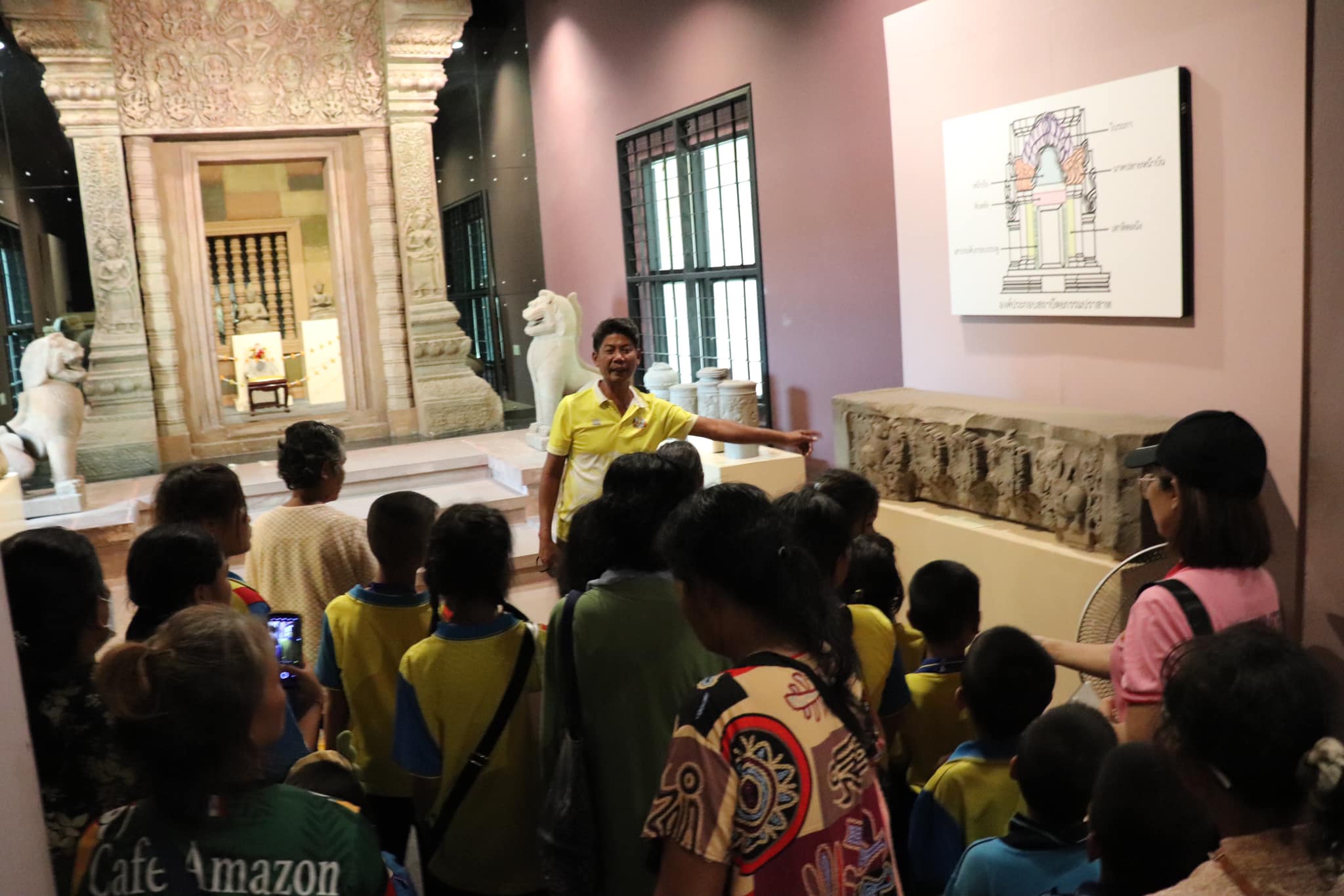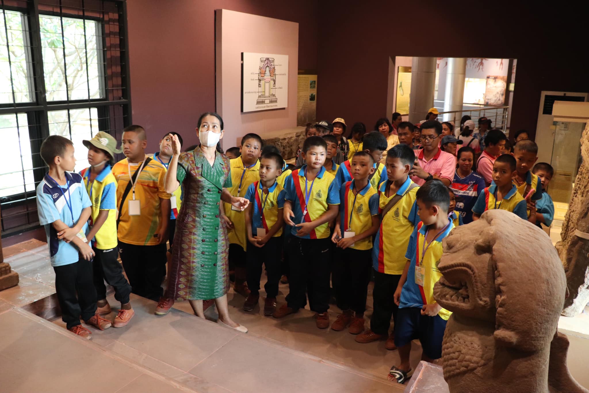 วันศุกร์ที่ ๙ สิงหาคม พ.ศ.๒๕๖๗ เวลา ๑๔.๐๐ น.นักเรียนชั้นอนุบาล ๑ ถึงชั้นประถมศึกษาปีที่ ๖ จากโรงเรียนบ้านโนนเรือคำบอน ตำบลสวนกล้วย อำเภอกันทรลักษ์ จังหวัดศรีสะเกษ จำนวน ๘๕ คน คุณครูและผู้ปกครอง ๓๘ คน เข้าเยี่ยมชมพิพิธภัณฑสถานแห่งชาติ สุรินทร์ โดยมีนางถนอม หลวงกลาง นายแก่นแก้ว หอมนวล พนักงานประจำห้อง ให้การต้อนรับและบรรยายนำชม