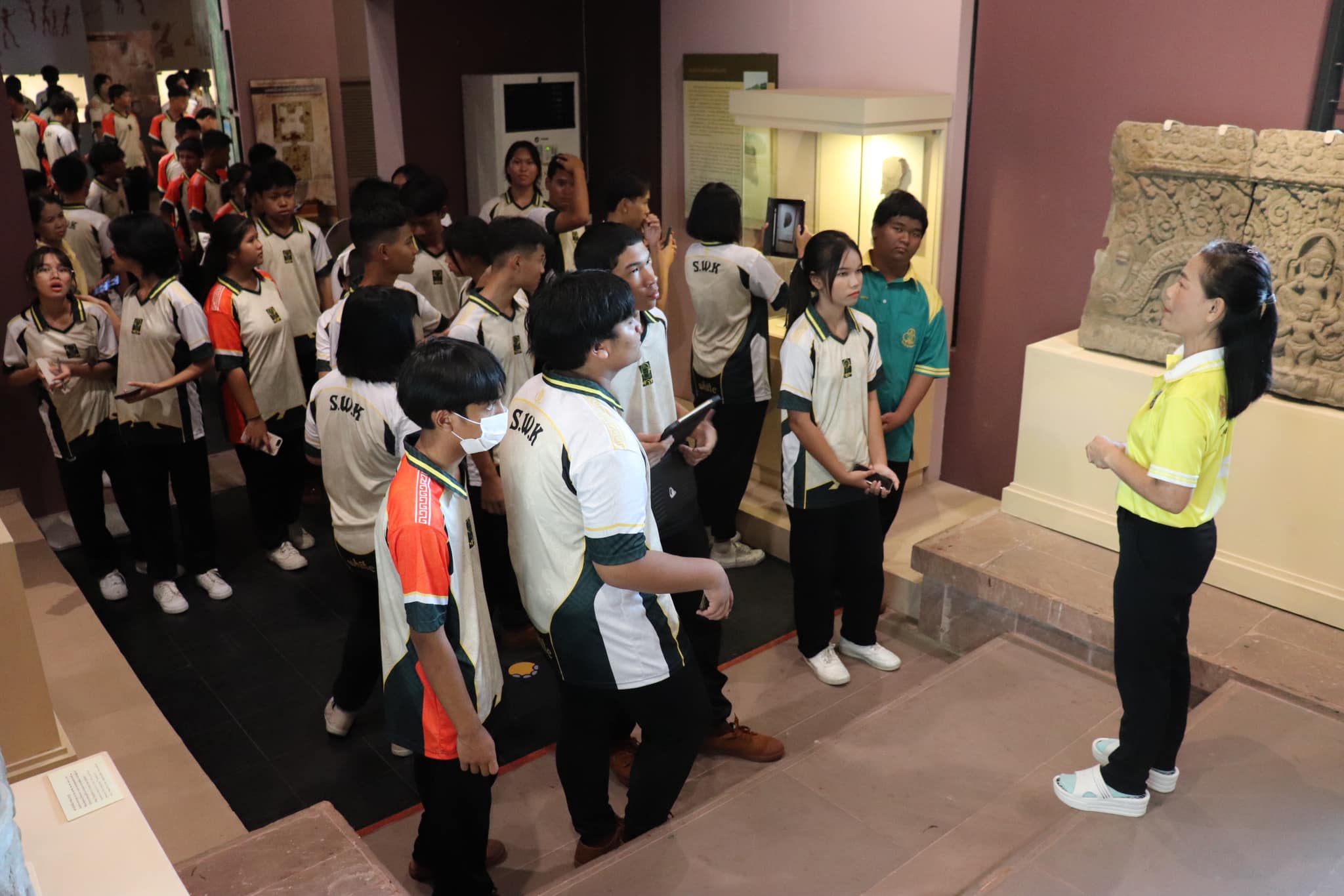 วันพุธที่ ๒๑ สิงหาคม พ.ศ. ๒๕๖๗ เวลา ๐๙.๐๐ น.นักเรียนชั้นมัธยมศึกษาปีที่ ๔ จำนวน ๒ ห้อง โรงเรียนสุรวิทยาคาร อำเภอเมืองสุรินทร์ จังหวัดสุรินทร์ จำนวน ๑๒๐ คน คุณครู ๑๐ คน เข้าเยี่ยมชมพิพิธภัณฑสถานแห่งชาติ สุรินทร์ โดยมีนายนพรัศม์ เมธีวราธนานันท์ ภัณฑารักษ์ปฏิบัติการ นางสาวอภิญญา สุขใหญ่ นางศรีสุดา ศรีสด พนักงานประจำห้อง ให้การต้อนรับและบรรยายนำชม