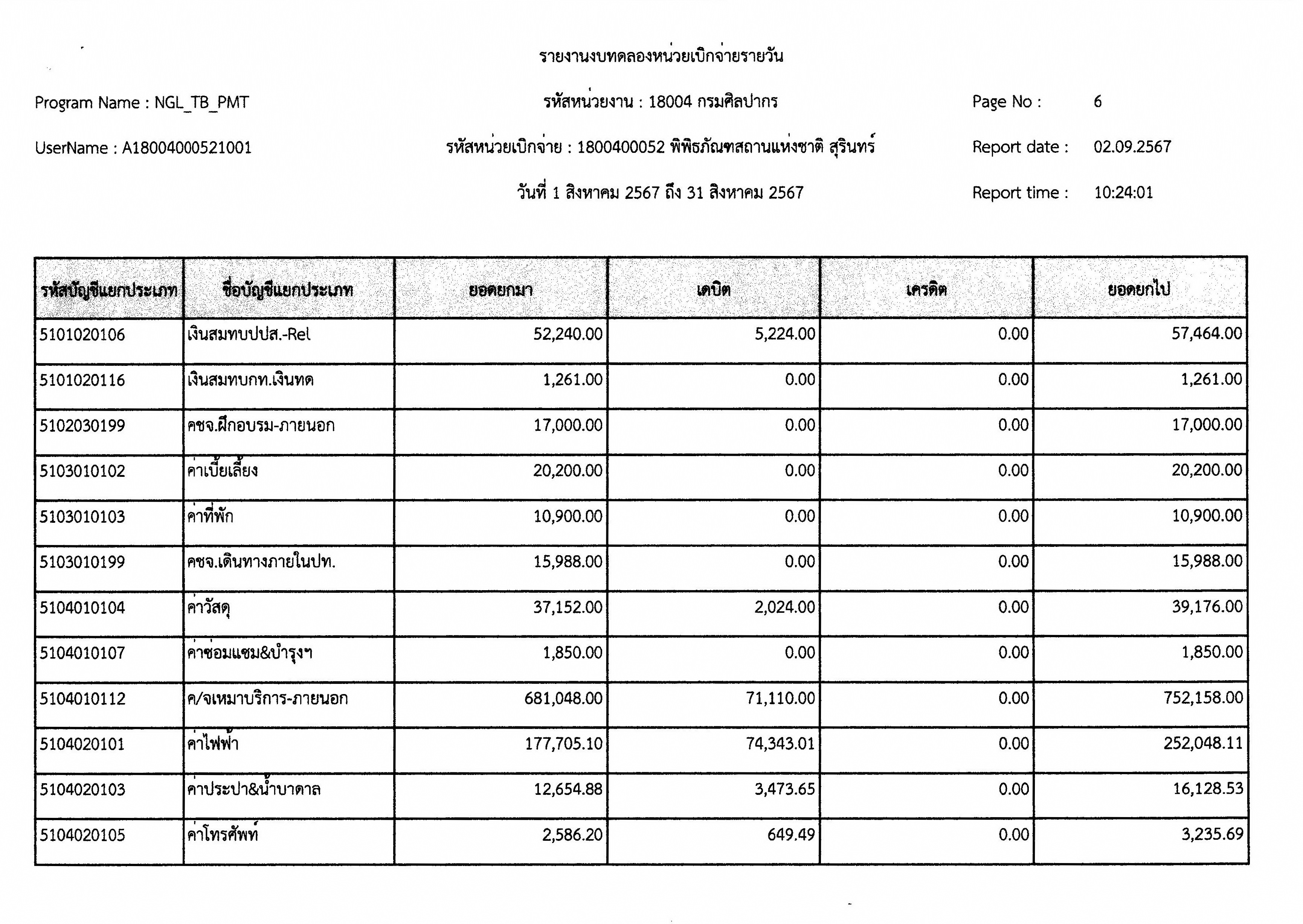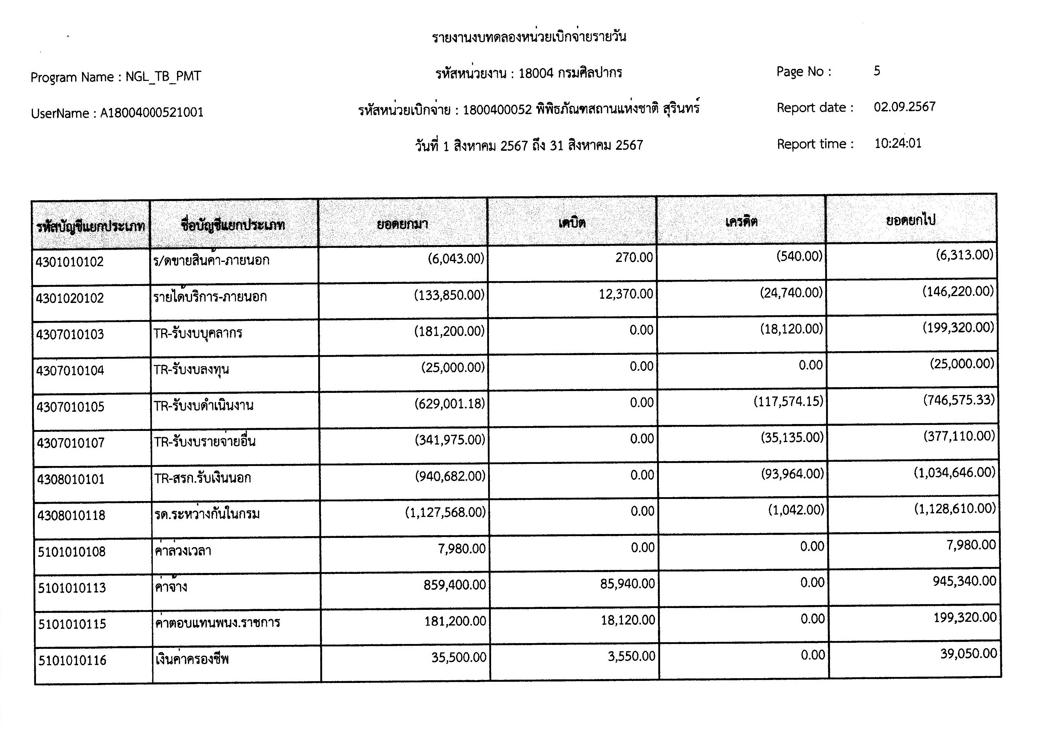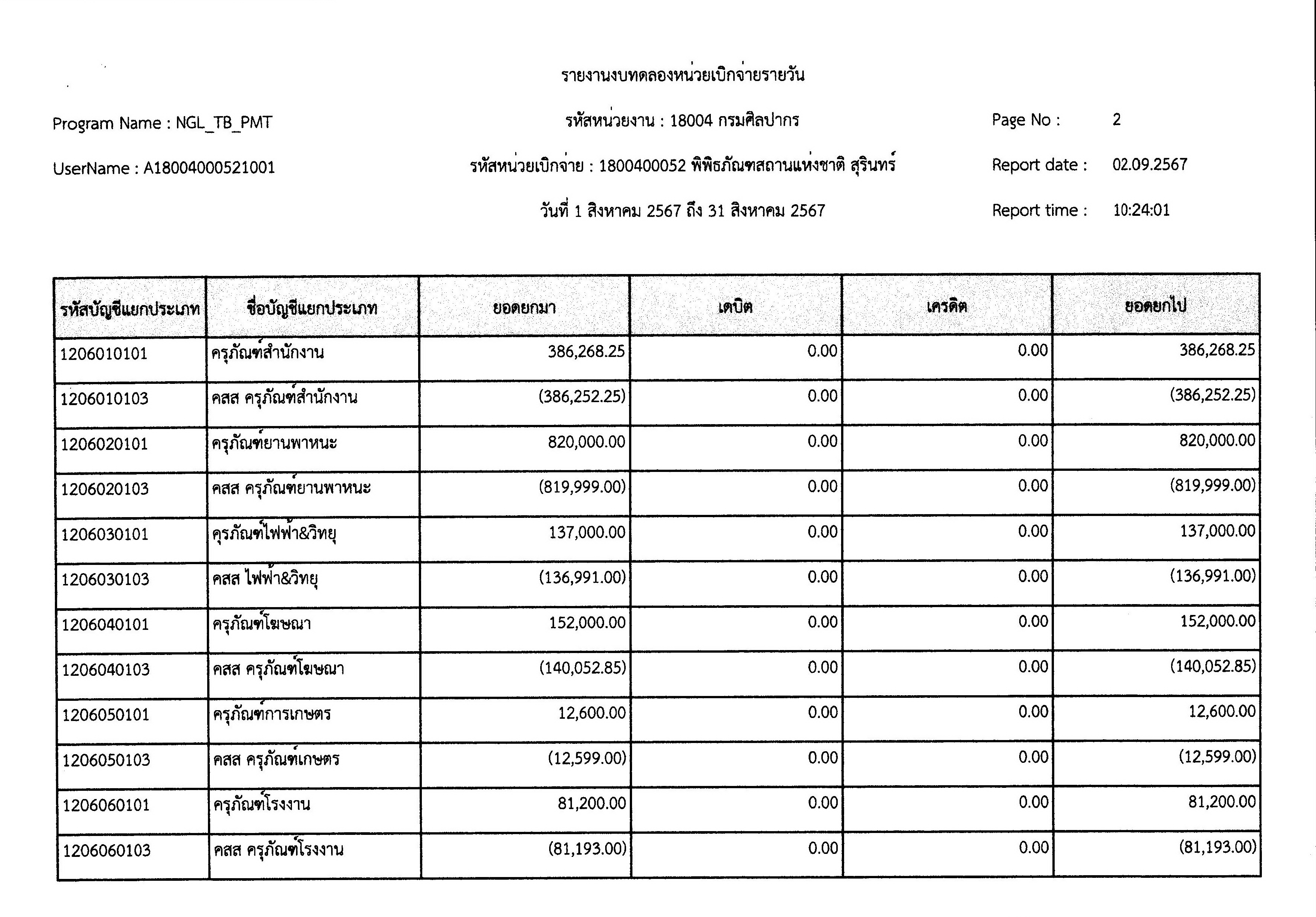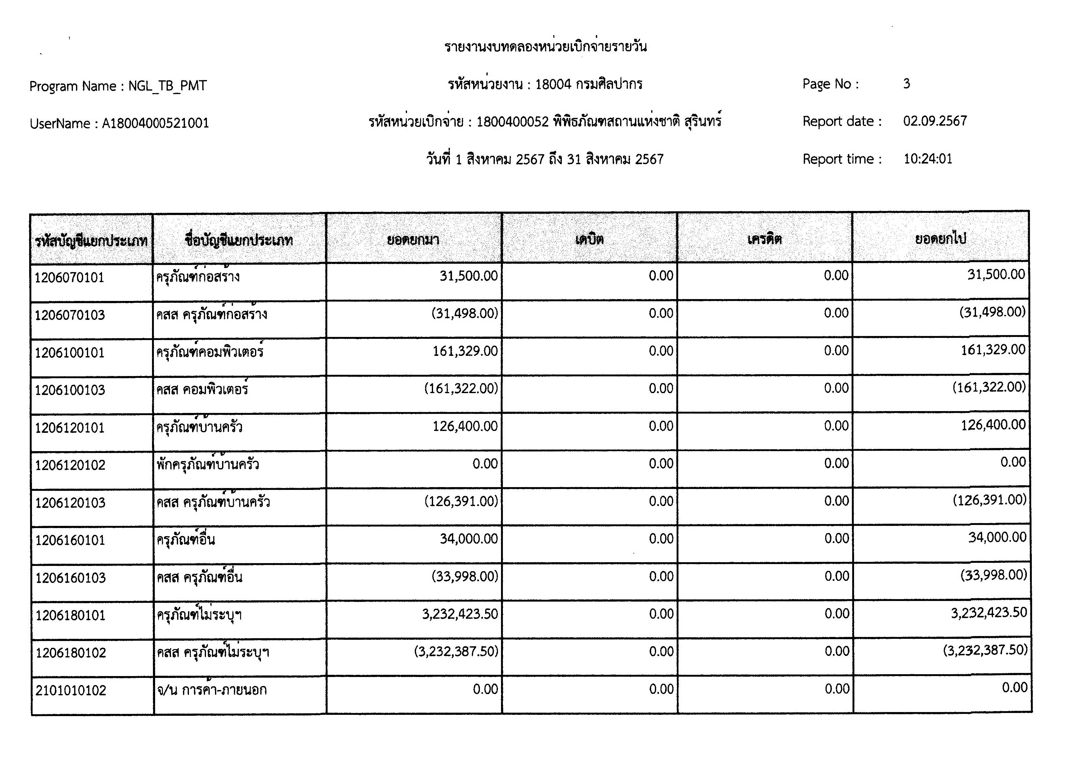 รายงานงบทดลองหน่วยเบิกจ่าย ประจำเดือน สิงหาคม ๒๕๖๗