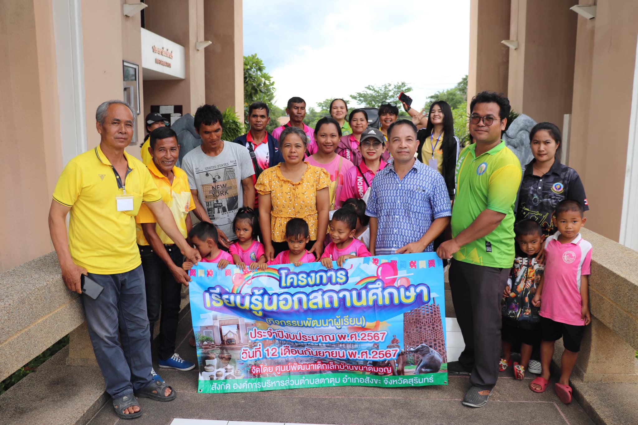 วันพฤหัสบดีที่ ๑๒ กันยายน พ.ศ. ๒๕๖๗ เวลา ๑๔.๐๐ น. นักเรียนศูนย์พัฒนาเด็กเล็กองค์การบริหารส่วนตำบลตาตุม อำเภอสังขะ จังหวัดสุรินทร์ จำนวน ๑๖๐ คน คุณครู ๒๐ คน เข้าเยี่ยมชมพิพิธภัณฑสถานแห่งชาติ สุรินทร์ โดยมีนายกรภัทร์ สุขใหญ่ พนักงานประจำพิพิธภัณฑ์ นางสาวอาภาภรณ์ เปล่งปลั่งศรี นักวิชาการวัฒนธรรม นางสาวอภิญญา สุขใหญ่ และนางศรีสุดา สีสด พนักงานประจำห้อง ให้การต้อนรับและบรรยายนำชม