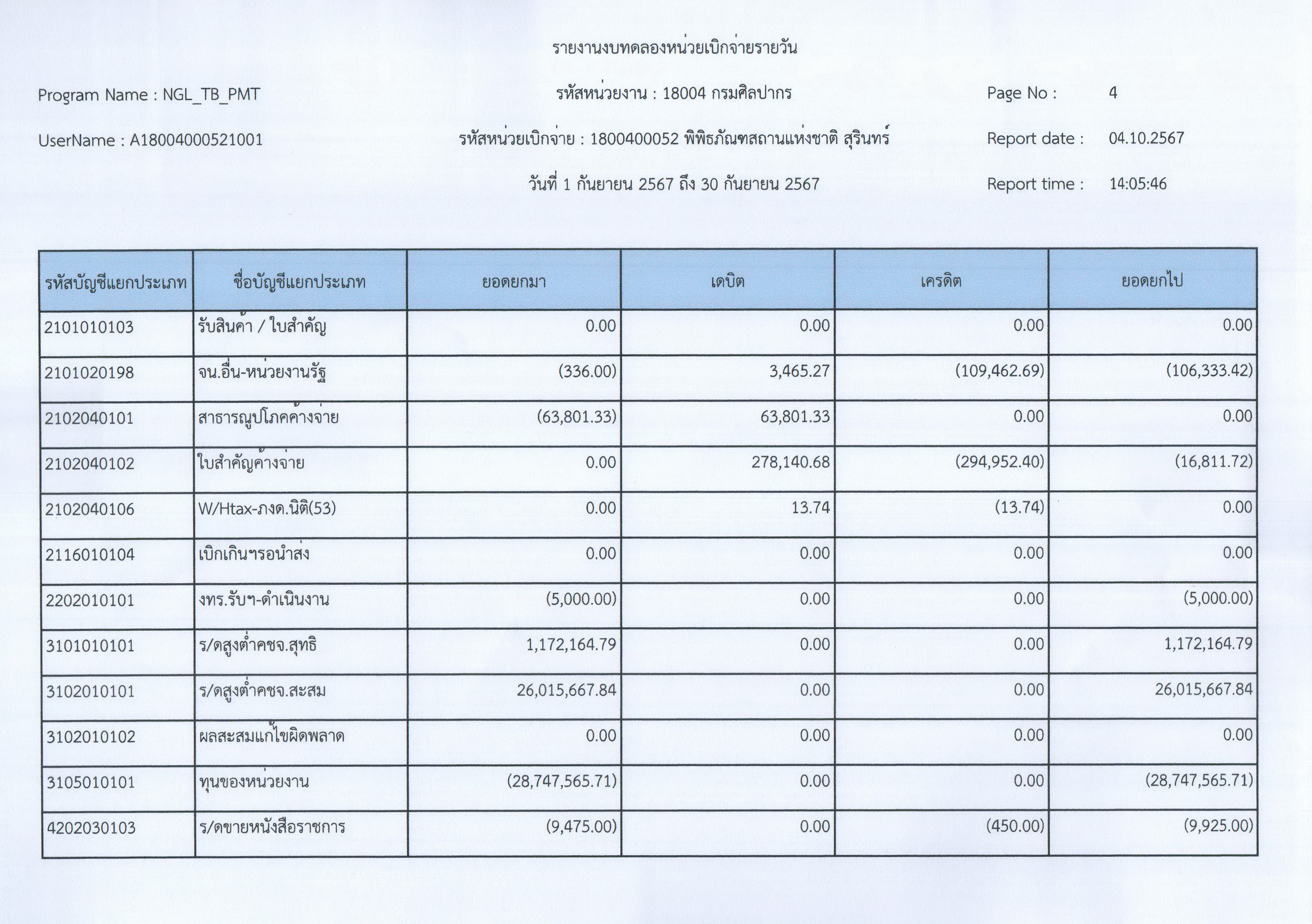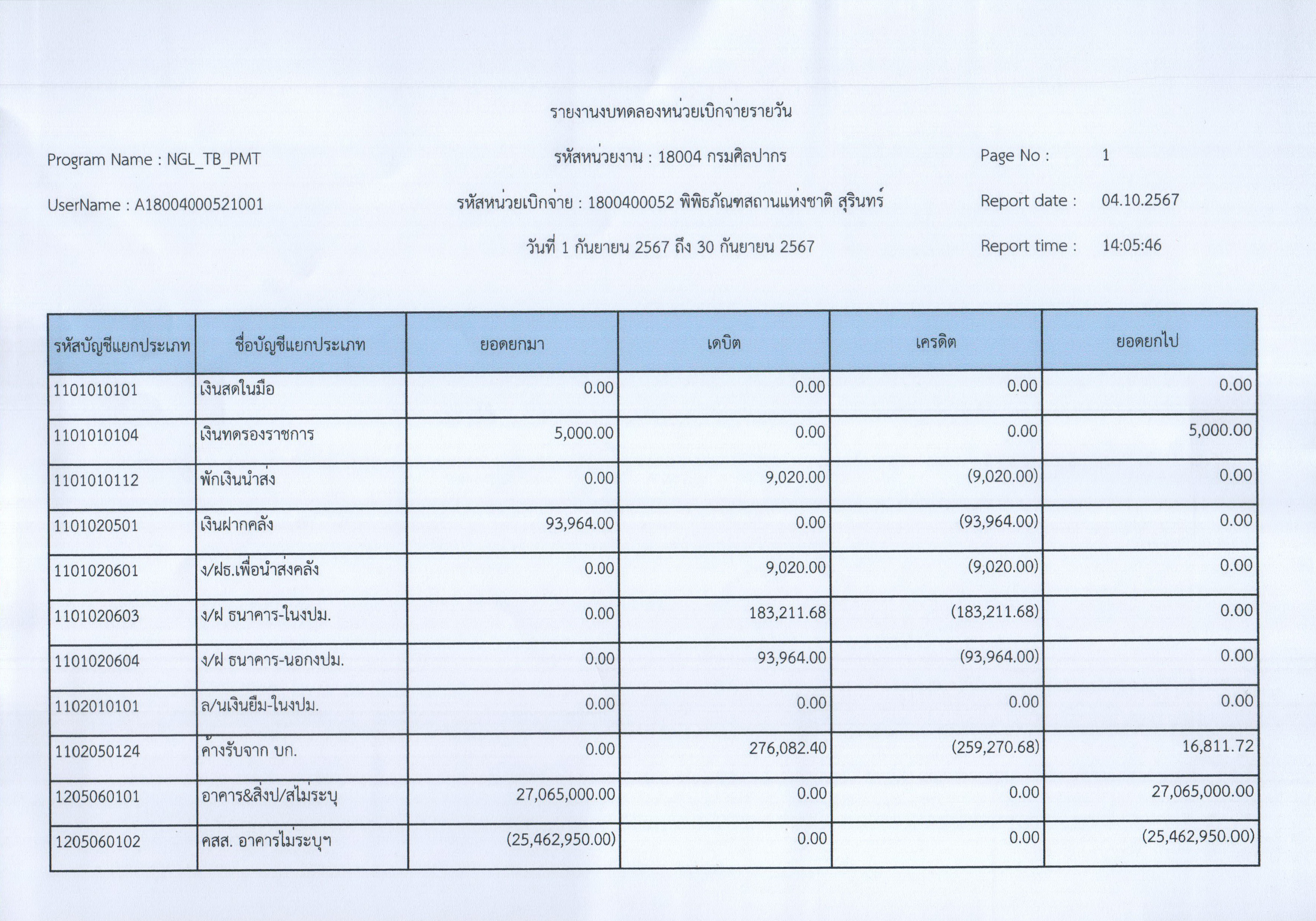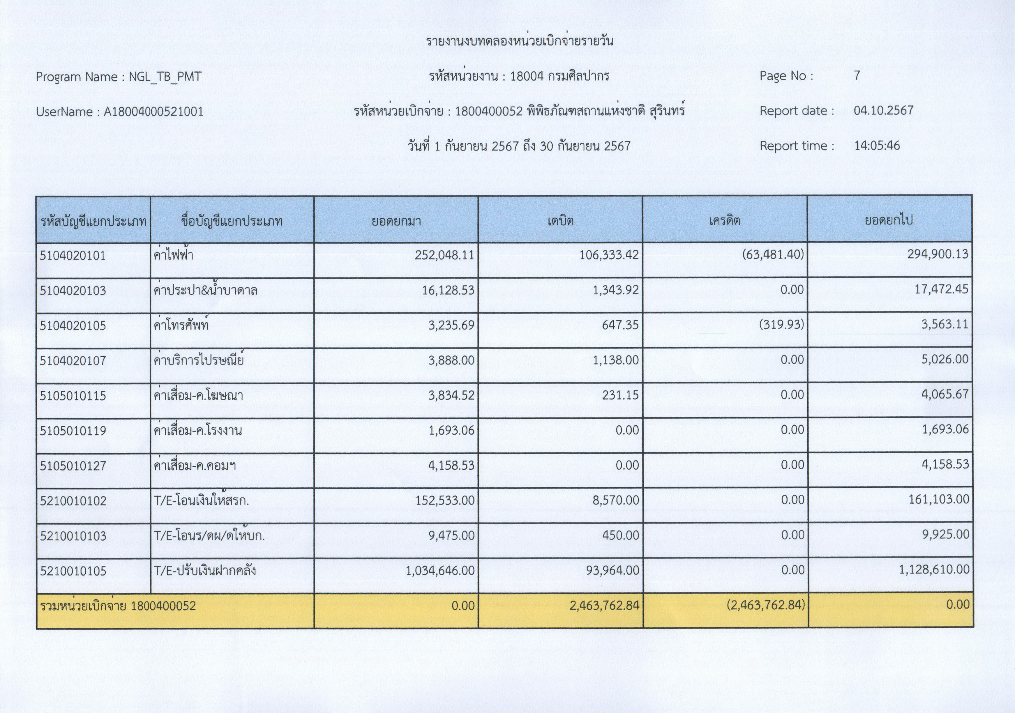 รายงานงบทดลองประจำเดือนกันยายน ๒๕๖๗