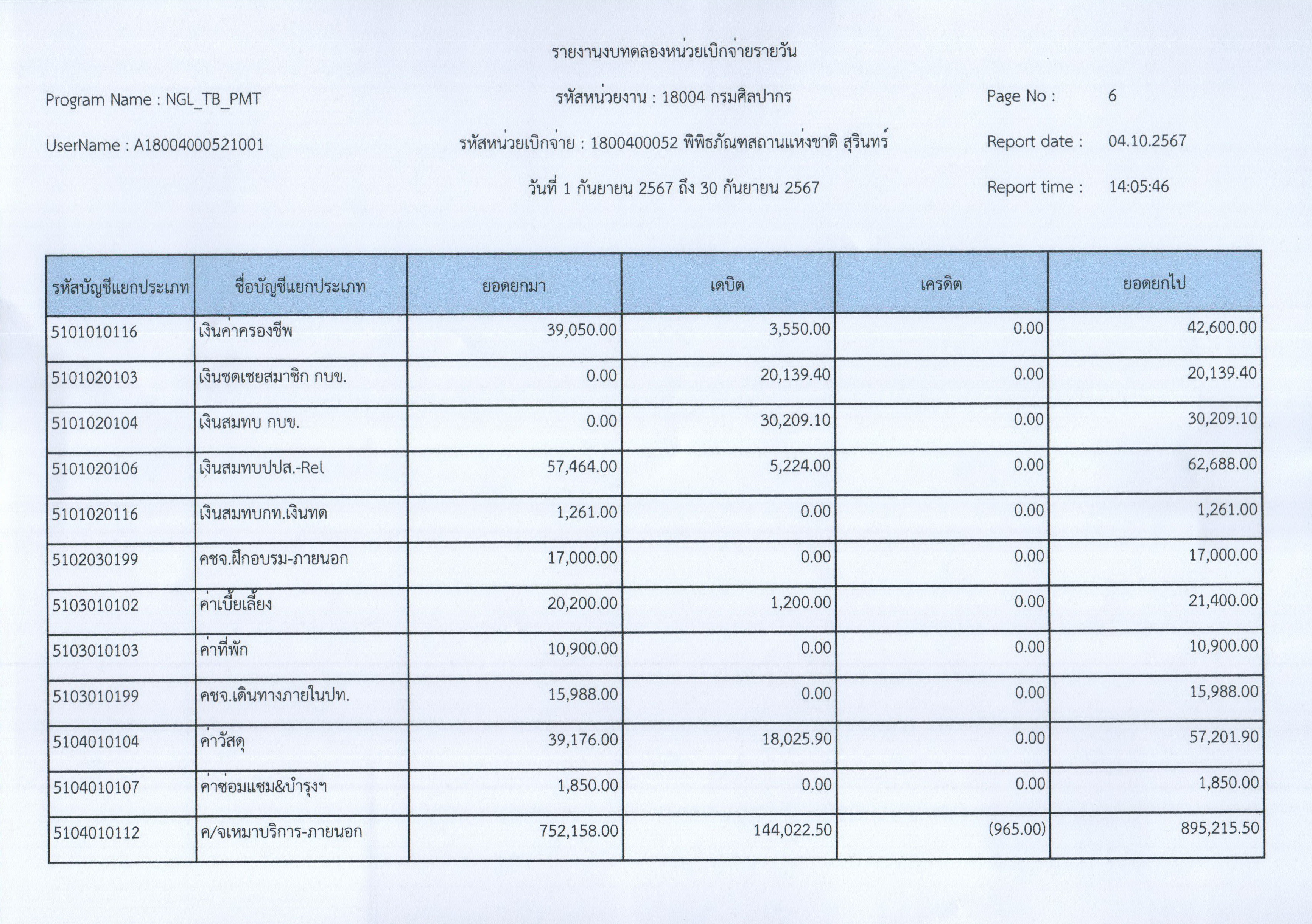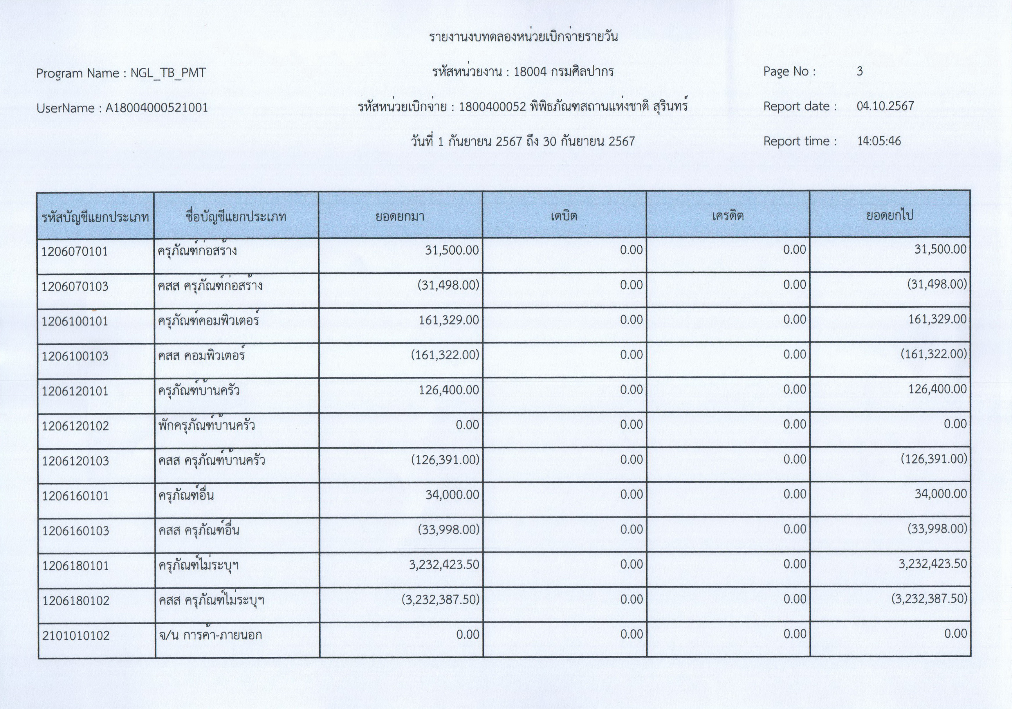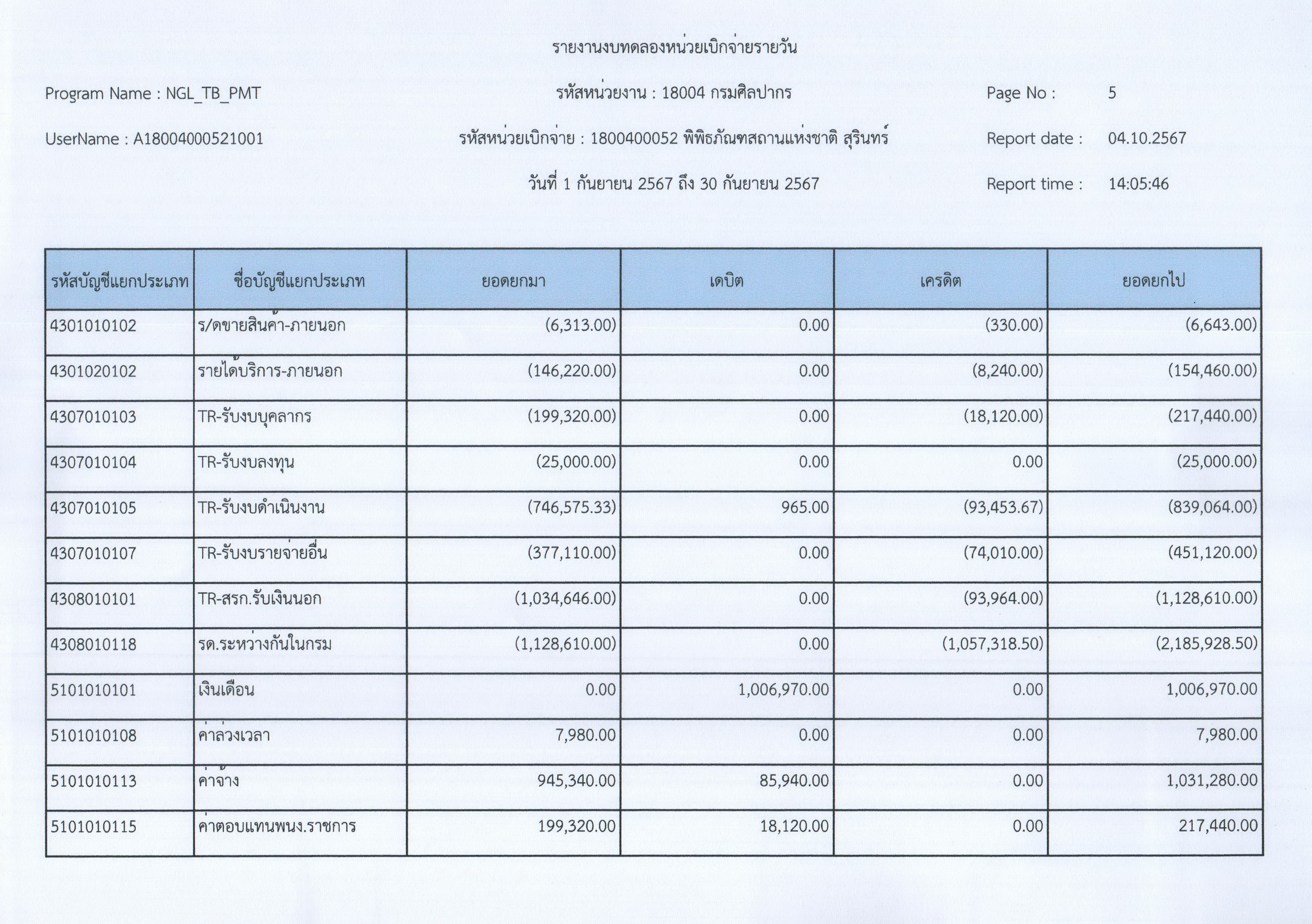 รายงานงบทดลองประจำเดือนกันยายน ๒๕๖๗
