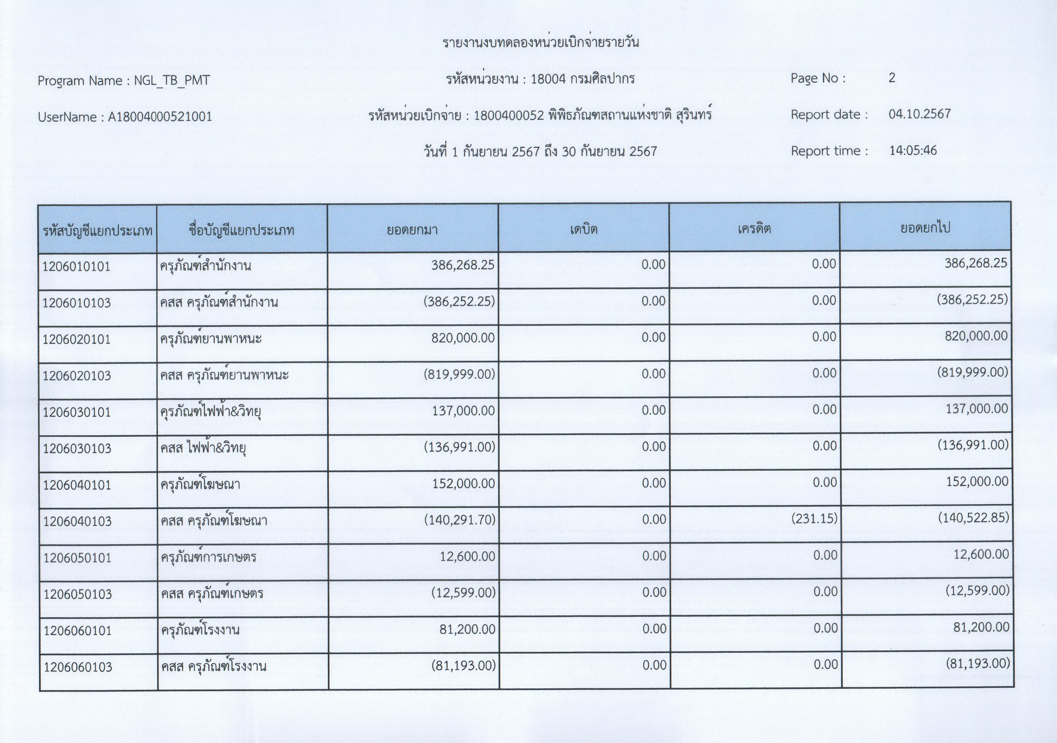 รายงานงบทดลองหน่วยเบิกจ่ายรายวัน ประจำเดือนกันยายน พ.ศ. ๒๕๖๗