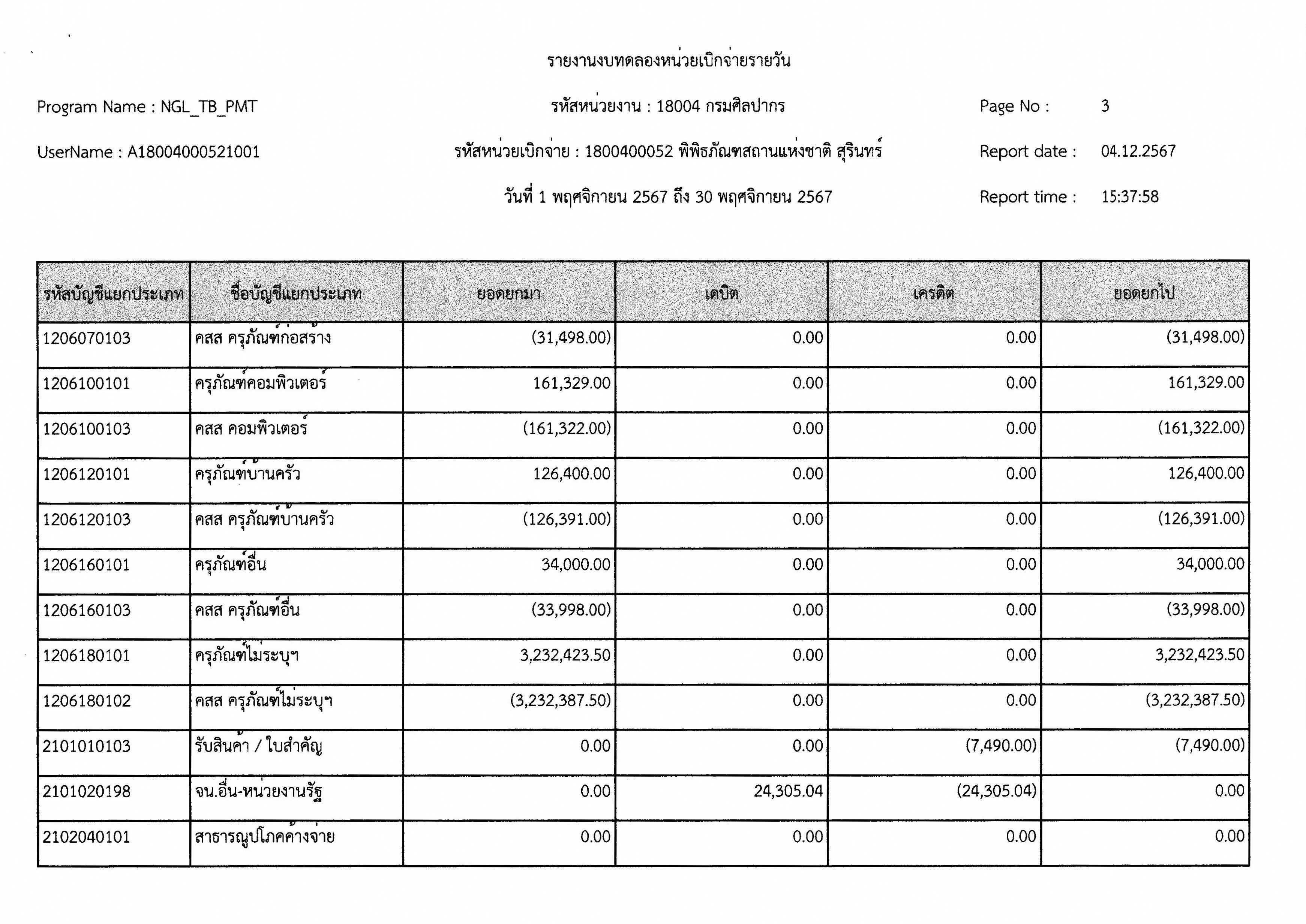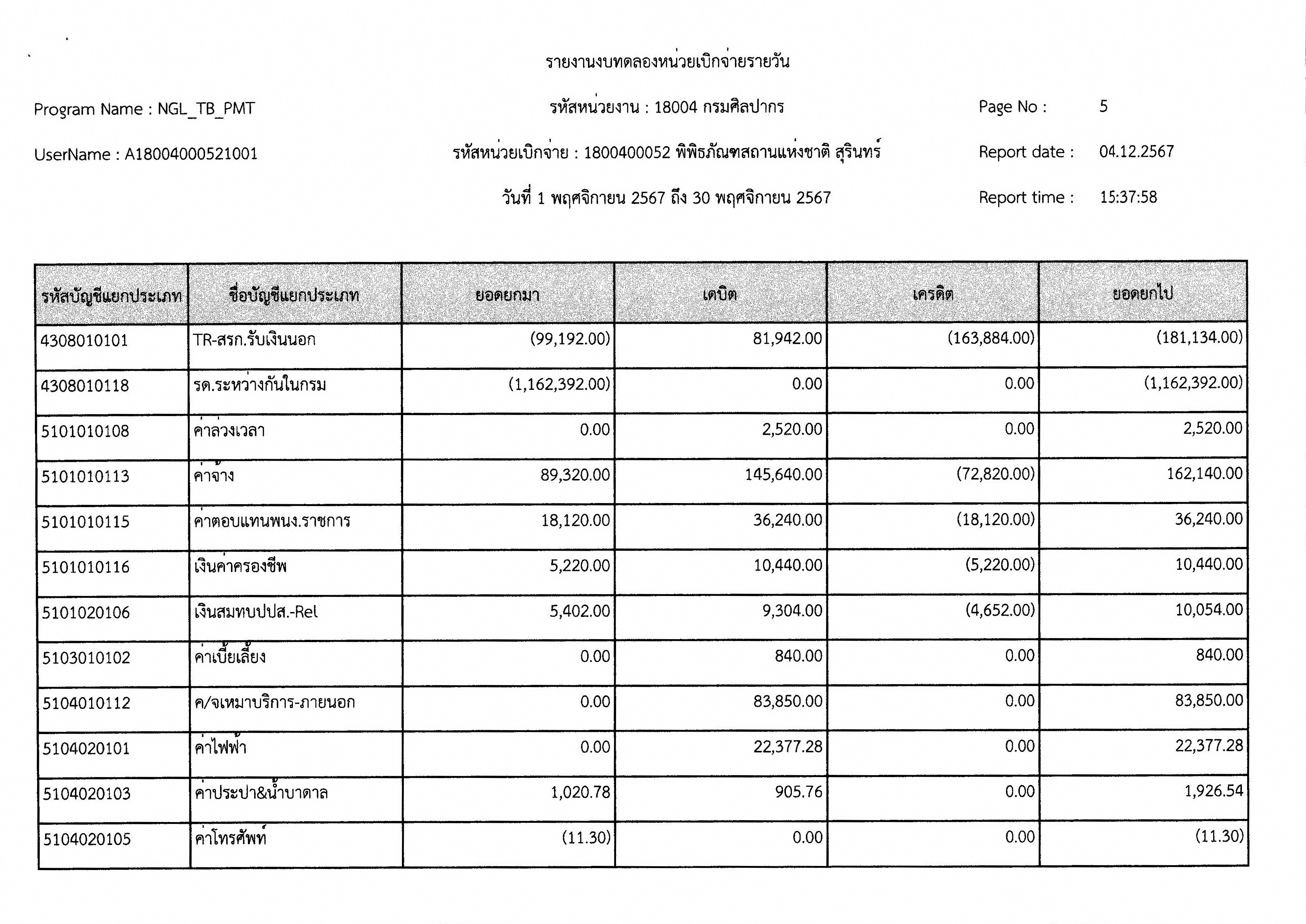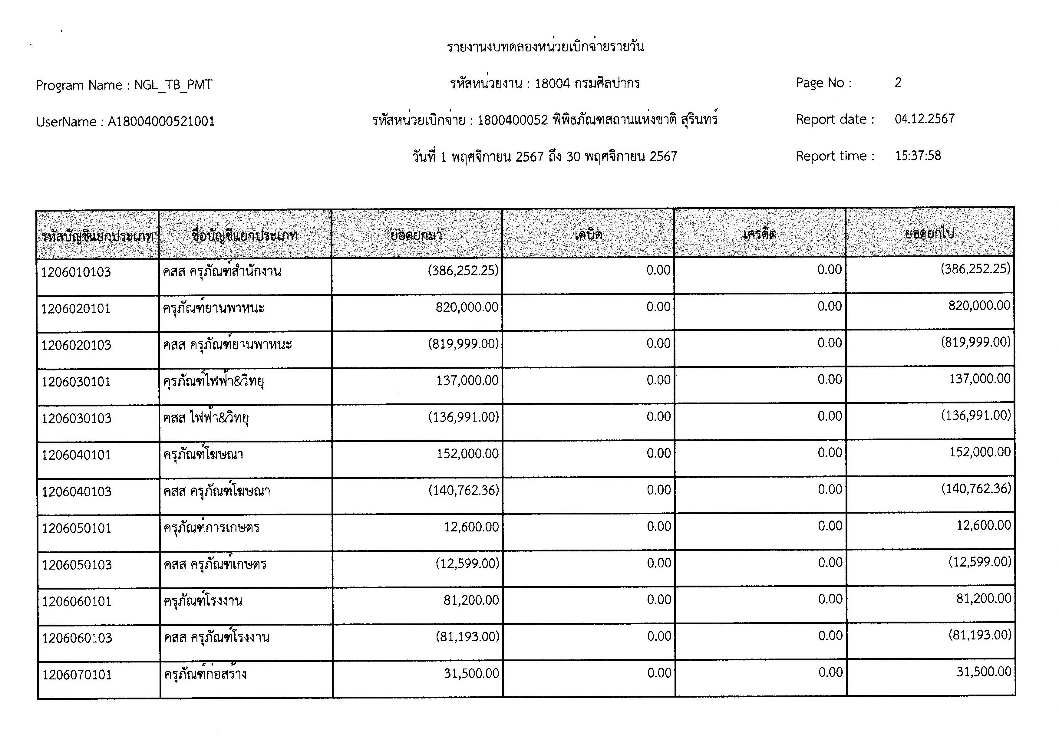 รายงานงบทดลองหน่วยเบิกจ่ายรายเดือน พฤศจิกายน ๒๕๖๗