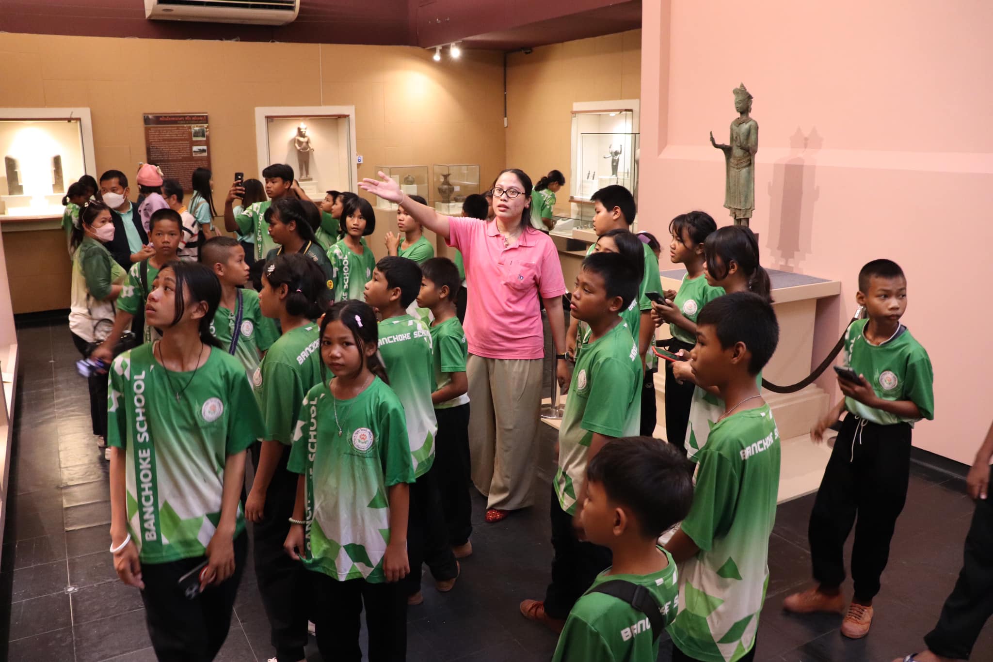 วันพุธที่ ๑๑ ธันวาคม พ.ศ.๒๕๖๗ เวลา ๐๙.๐๐ น.นักเรียนชั้นประถมศึกษาปีที่ ๑-๖ โรงเรียนบ้านโชค ตำบลตาเบา อำเภอปราสาท จังหวัดสุรินทร์ จำนวน ๗๗ คน คุณครู ๑๒ คน เข้าเยี่ยมชมพิพิธภัณฑสถานแห่งชาติ สุรินทร์ โดยมี นพรัศม์ เมธีวราธนานันท์ ภัณฑารักษ์ปฏิบัติการ และนางถนอม หลวงกลาง พนักงานประจำพิพิธภัณฑ์ ให้การต้อนรับและบรรยายนำชม