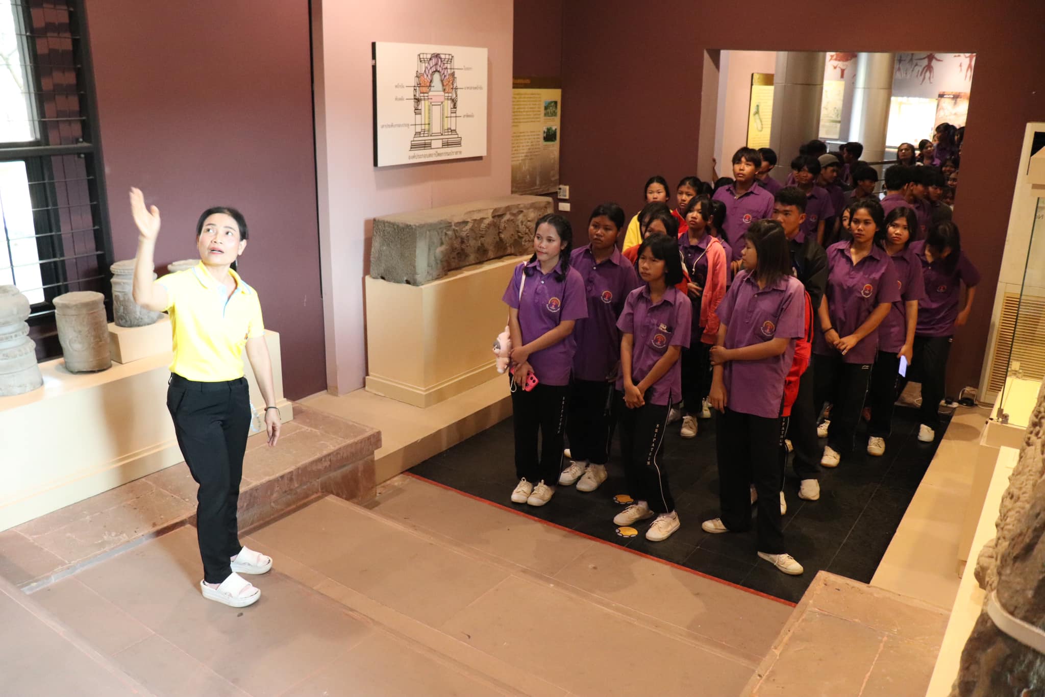 วันพฤหัสบดีที่ ๑๒ ธันวาคม พ.ศ.๒๕๖๗ เวลา ๑๐.๐๐ น.นักเรียนชั้นมัธยมศึกษาปีที่ ๑-๖ โรงเรียนศรีปทุมวิทยาคม ตำบลหนองบัว อำเภอท่าตูม จังหวัดสุรินทร์ จำนวน ๑๒๐ คน คุณครู ๒๐ คน เข้าเยี่ยมชมพิพิธภัณฑสถานแห่งชาติ สุรินทร์ โดยมี นางสาวอภิญญา สุขใหญ่ และนางศรีสุดา สีสด พนักงานประจำพิพิธภัณฑ์ ให้การต้อนรับและบรรยายนำชม