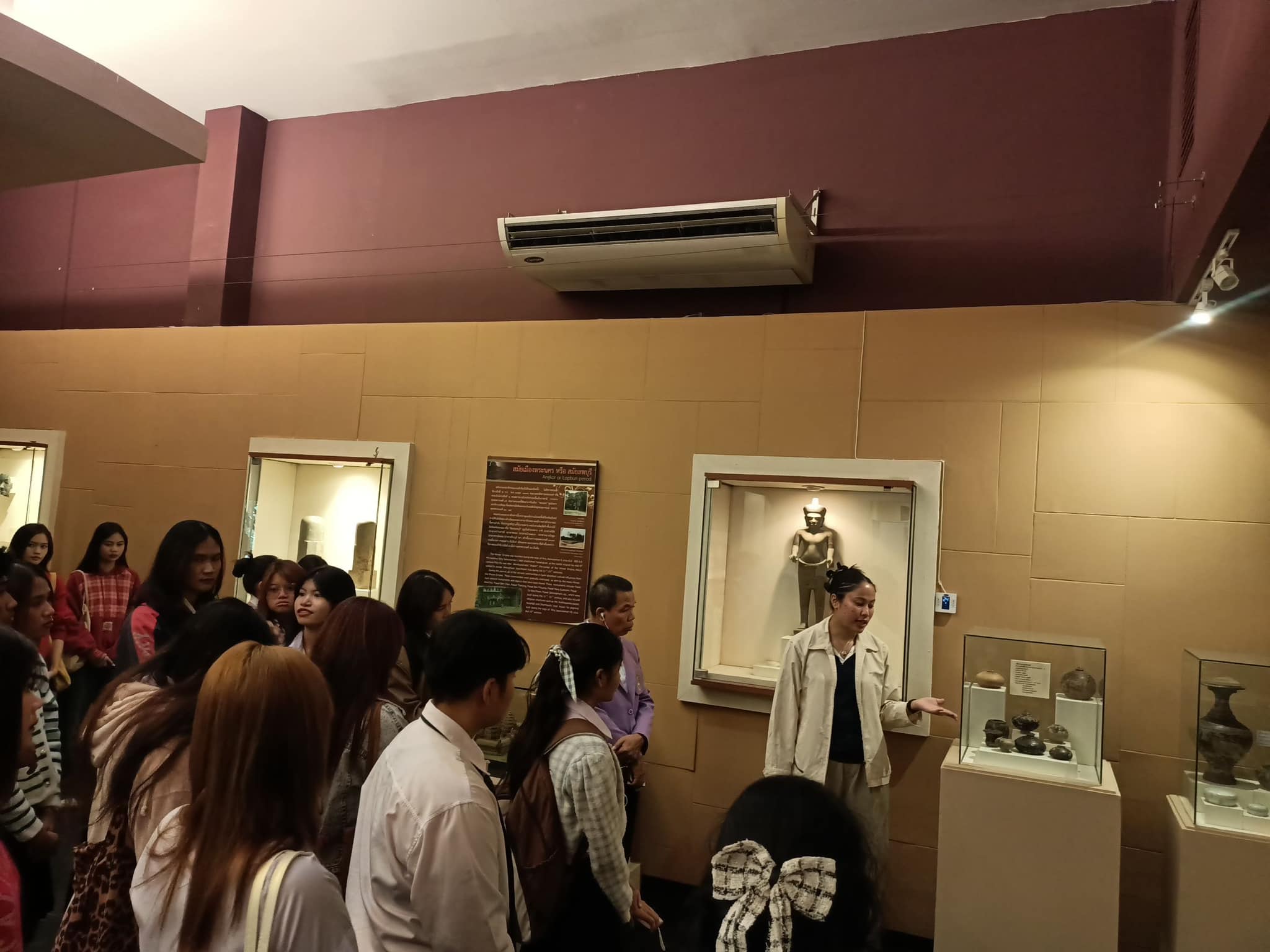 วันพฤหัสบดีที่ ๑๙ ธันวาคม พ.ศ.๒๕๖๗ เวลา ๐๙.๐๐ น. นักศึกษาชั้นปีที่ ๑ คณะมนุษยศาสตร์และสังคมศาสตร์ มหาวิทยาลัยราชภัฏสุรินทร์ ตำบลนอกเมือง อำเภอเมืองสุรินทร์ จังหวัดสุรินทร์ จำนวน ๓๐ คน อาจารย์ ๑ คน เข้าเยี่ยมชมพิพิธภัณฑสถานแห่งชาติ สุรินทร์ โดยมีนพรัศม์ เมธีวราธนานันท์ ภัณฑารักษ์ปฏิบัติการ ให้การต้อนรับและบรรยายนำชม