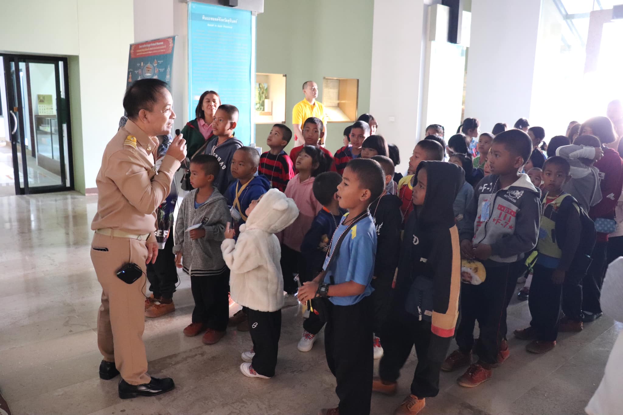 วันพุธที่ ๒๕ ธันวาคม พ.ศ.๒๕๖๗ เวลา ๐๙.๓๐ น. นักเรียนชั้นอนุบาล ๒ ถึงชั้นประถมศึกษาที่ ๖ โรงเรียนบ้านระเภาว์ ตำบลท่าสว่าง อำเภอเมืองฯ จังหวัดสุรินทร์ จำนวน ๑๒๐ คน คุณครู ๑๑ คน เข้าเยี่ยมชมพิพิธภัณฑสถานแห่งชาติ สุรินทร์ โดยมีนายกรภัทร์ สุขใหญ่ พนักงานประจำพิพิธภัณฑ์ และนายธนากร วงศ์สิริพัฒนะ นักวิชาการวัฒนธรรม ให้การต้อนรับและบรรยายนำชม