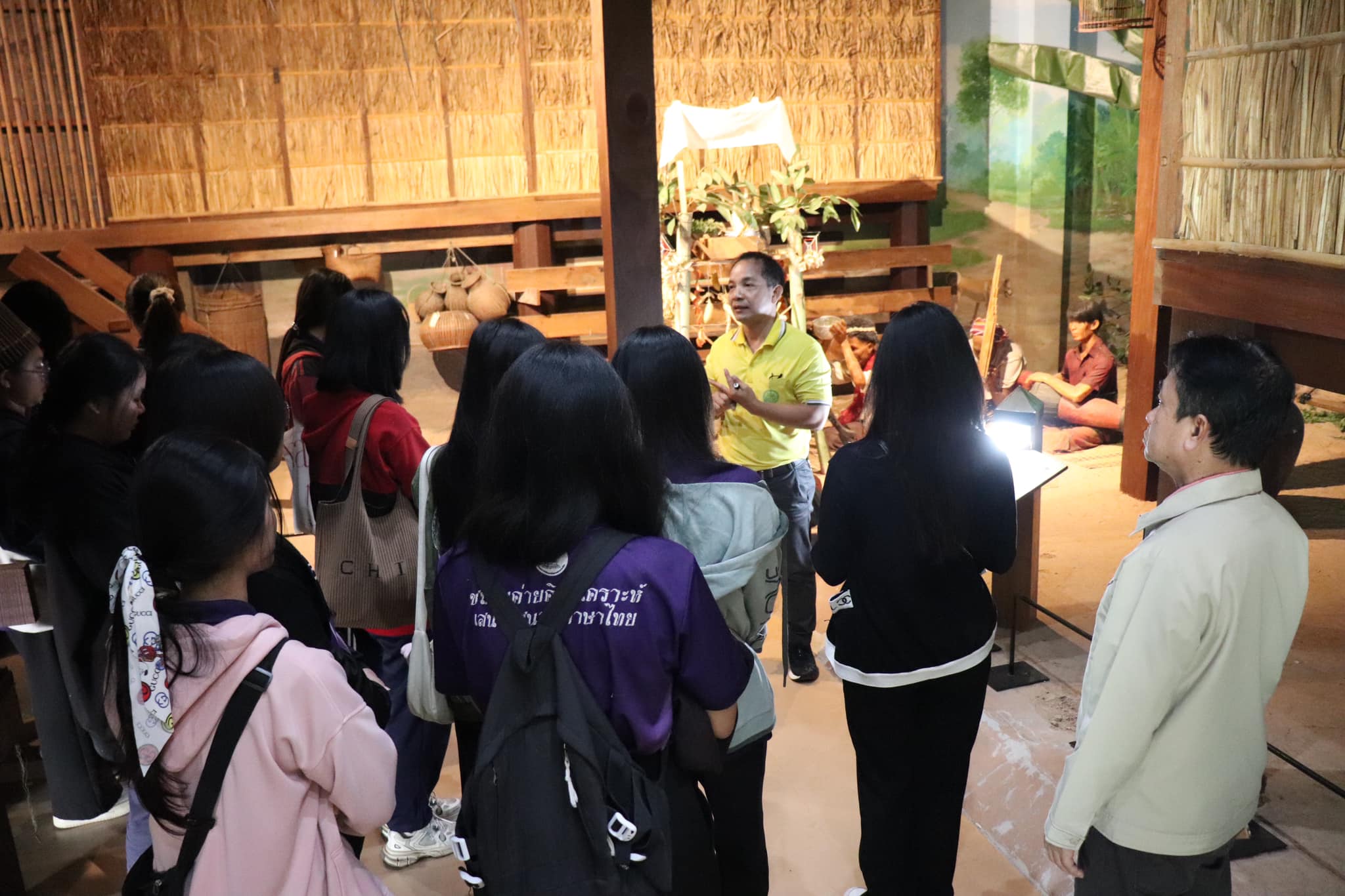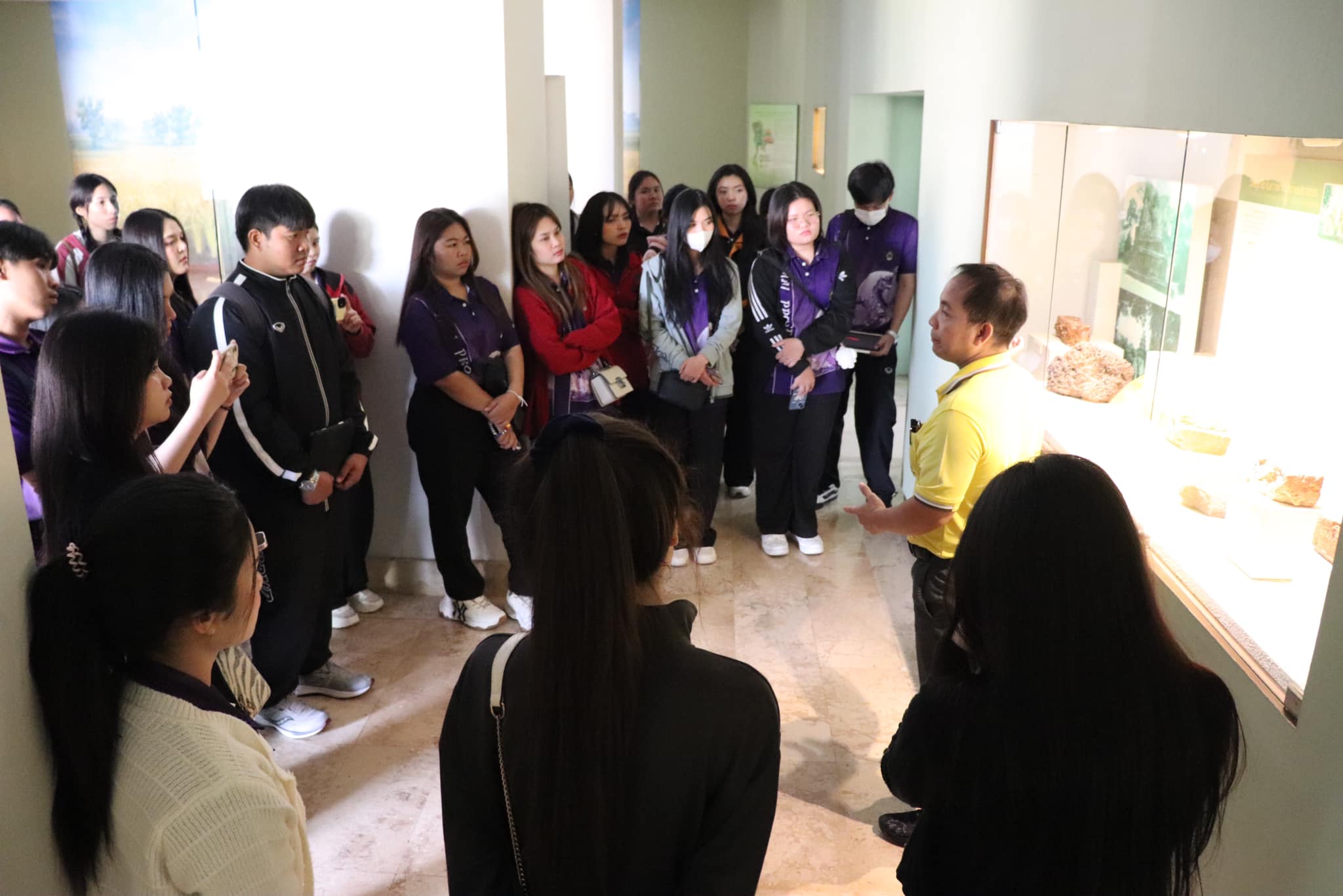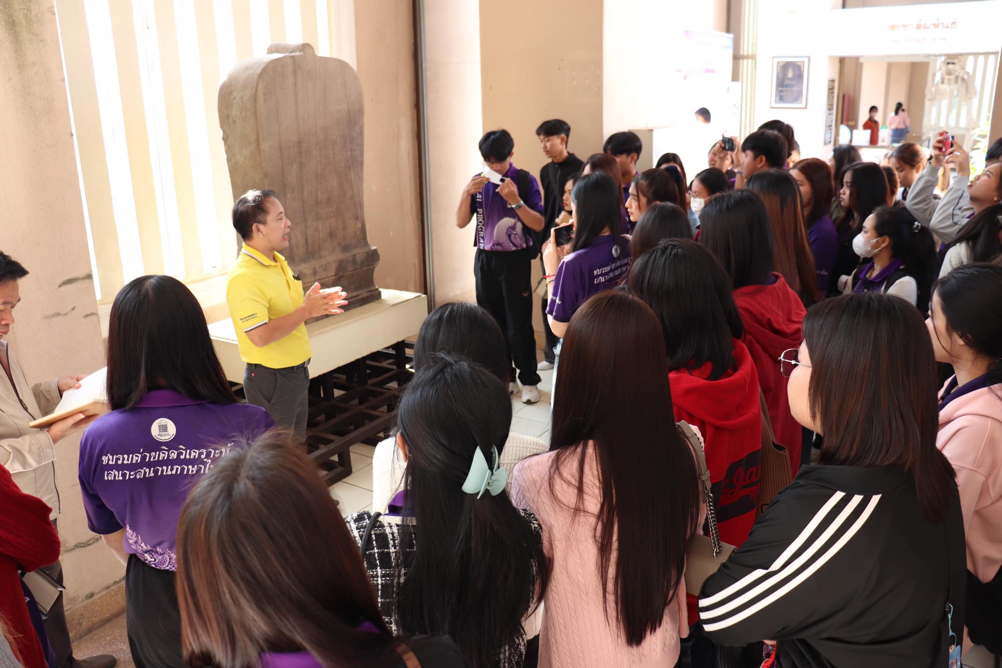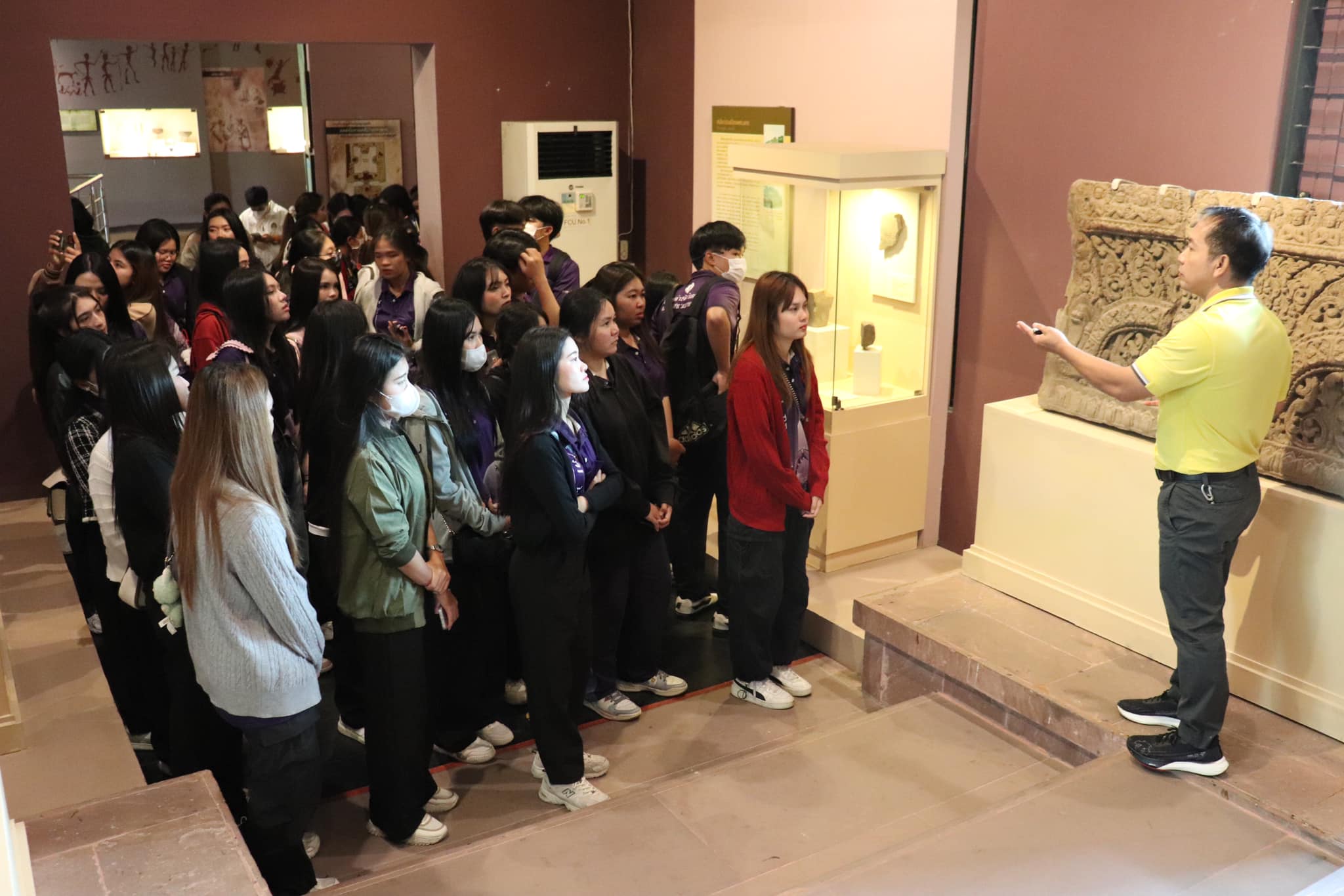 วันศุกร์ที่ ๑๐ มกราคม พ.ศ. ๒๕๖๘ เวลา ๐๙.๐๐ น. นักศึกษาชั้นปีที่ ๓ รายวิชาโทภาษาเขมร สาขาวิชาภาษาไทย คณะมนุษยศาสตร์และสังคมศาสตร์ มหาวิทยาลัยราชภัฏบุรีรัมย์ จำนวน ๕๐ คน อาจารย์ ๒ คน เข้าเยี่ยมชมพิพิธภัณฑสถานแห่งชาติ สุรินทร์ อำเภอเมืองสุรินทร์ จังหวัดสุรินทร์ โดยมีนายกรภัทร์ สุขใหญ่ พนักงานประจำพิพิธภัณฑ์ ให้การต้อนรับและบรรยายนำชม