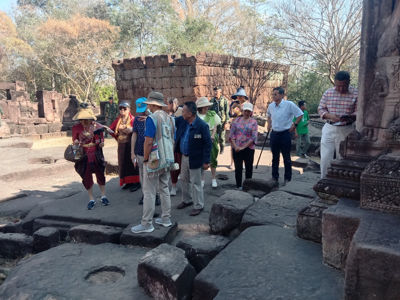 พิพิธภัณฑสถานแห่งชาติ สุรินทร์ ยินดีต้อนรับ คณะ วปอ.๕๕ ท่องเที่ยวแดนอารยธรรมอีสานใต้ นำโดย นายอนันต์ ชูโชติ อดีตอธิบดีกรมศิลปากร พร้อมคณะจำนวน ๑๒ ท่าน เข้าเยี่ยมชมโบราณสถานกลุ่มปราสาทตาเมือน อำภอพนมดงรัก จังหวัดสุรินทร์ โดยมีนางปริญญา สุขใหญ่ หัวหน้าพิพิธภัณฑสถานแห่งชาติ สุรินทร์ พร้อมเจ้าหน้าที่พิพิธภัณฑสถานแห่งชาติ สุรินทร์ และพนักงานดูแลโบราณสถาน ต้อนรับและอำนวยความสะดวก