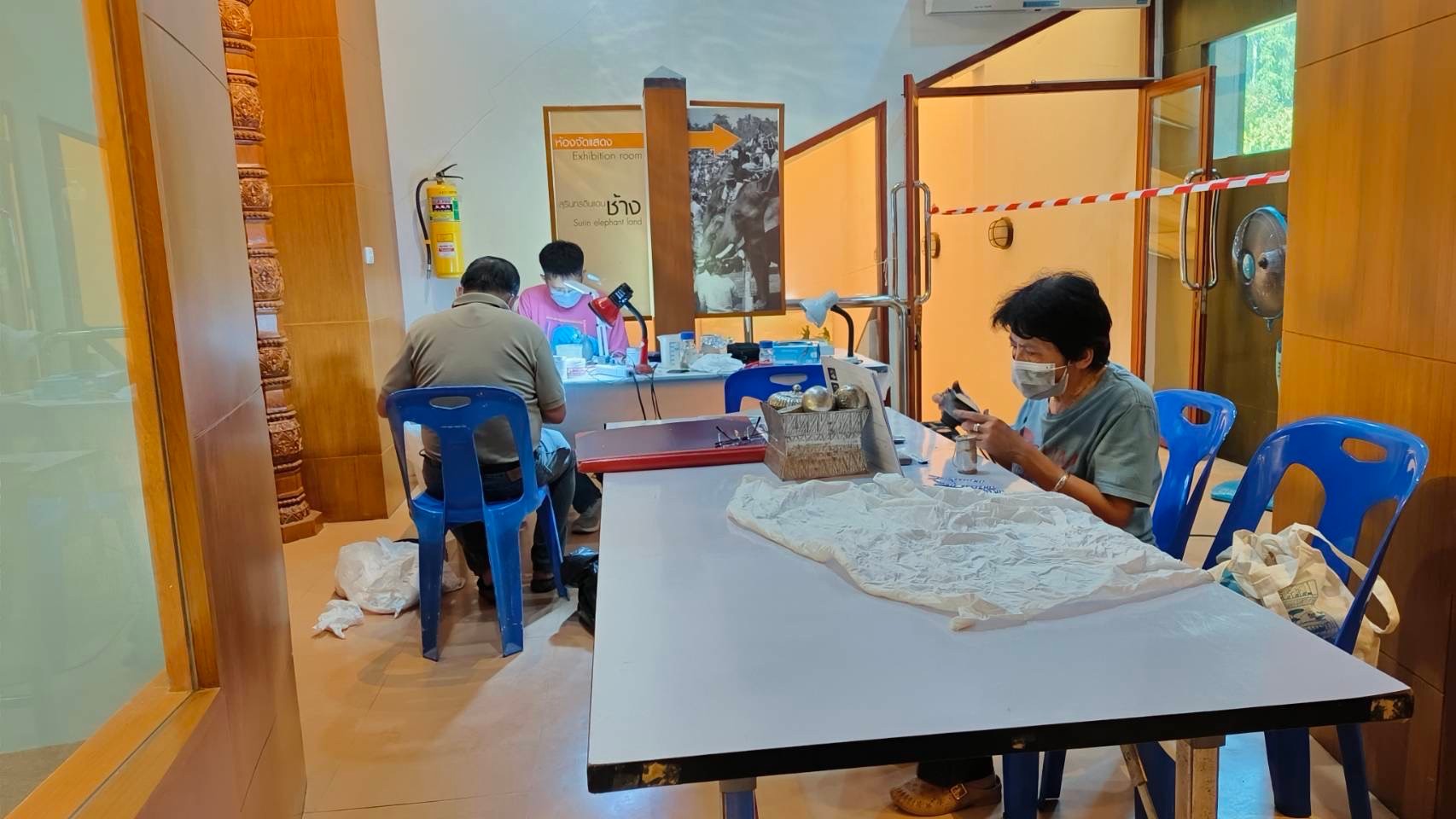 พิพิธภัณฑสถานแห่งชาติ สุรินทร์ สำนักศิลปากรที่ ๑๐ นครราชสีมา ร่วมกับกลุ่มวิทยาศาสตร์เพื่อการอนุรักษ์ สำนักพิพิธภัณฑสถานแห่งชาติ กรมศิลปากร ดำเนินการอนุรักษ์โบราณวัตถุ ณ พิพิธภัณฑสถานแห่งชาติ สุรินทร์