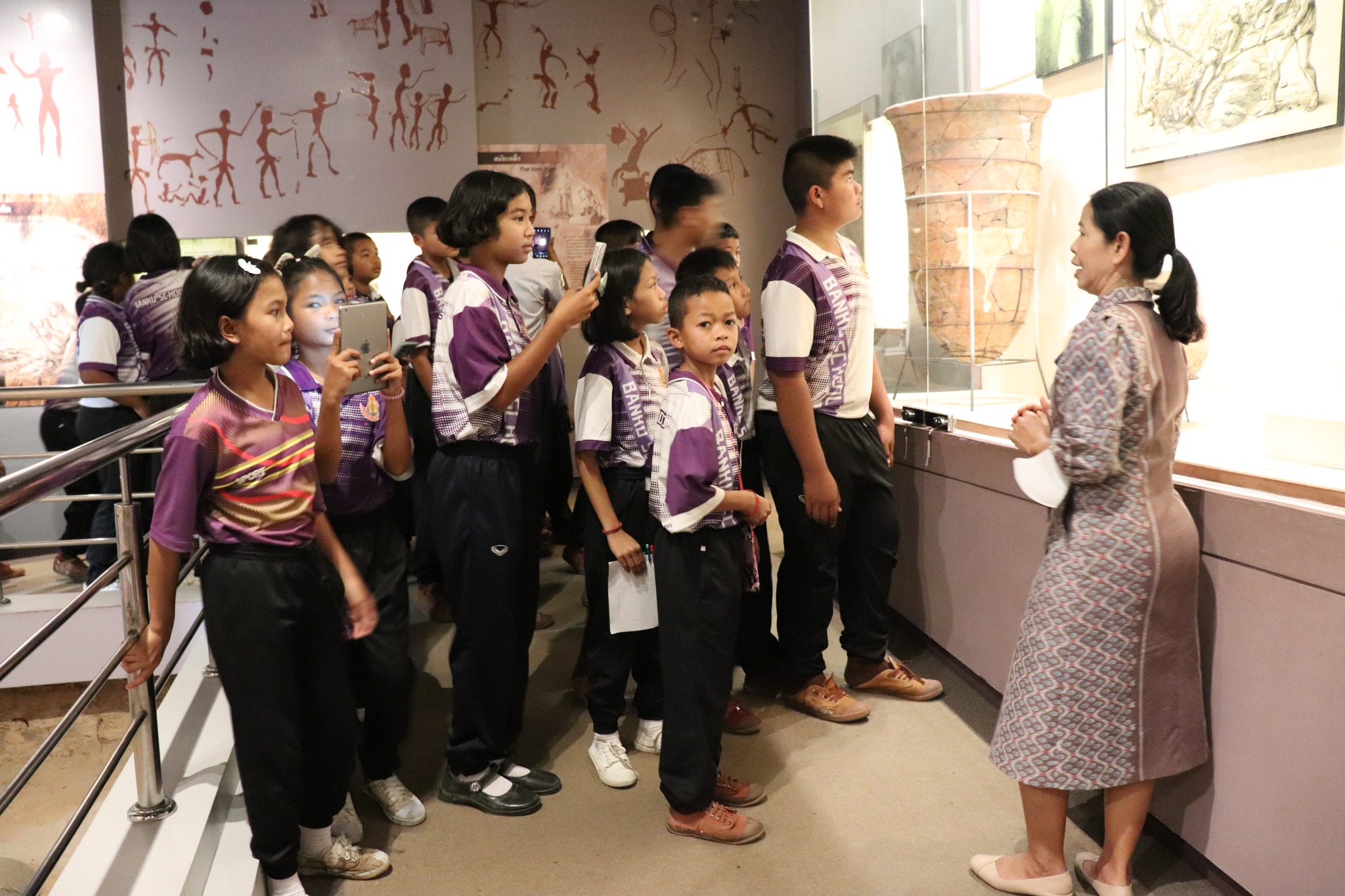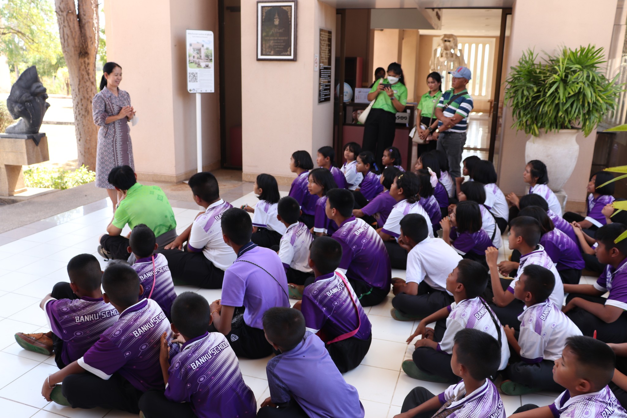 วันพฤหัสบดีที่ ๑๓ กุมภาพันธ์ พ.ศ.๒๕๖๘ เวลา ๑๓.๐๐ น. นักเรียนชั้นประถมศึกษาปีที่ ๔-๖ โรงเรียนบ้านกู่ ตำบลโคกตะเคียน อำเภอกาบเชิง จังหวัดสุรินทร์ จำนวน ๕๒ คน คุณครู ๑๑ คน เข้าเยี่ยมชมพิพิธภัณฑสถานแห่งชาติ สุรินทร์ โดยมีนางถนอม หลวงกลาง พนักงานประจำห้อง ให้การต้อนรับและบรรยายนำชม