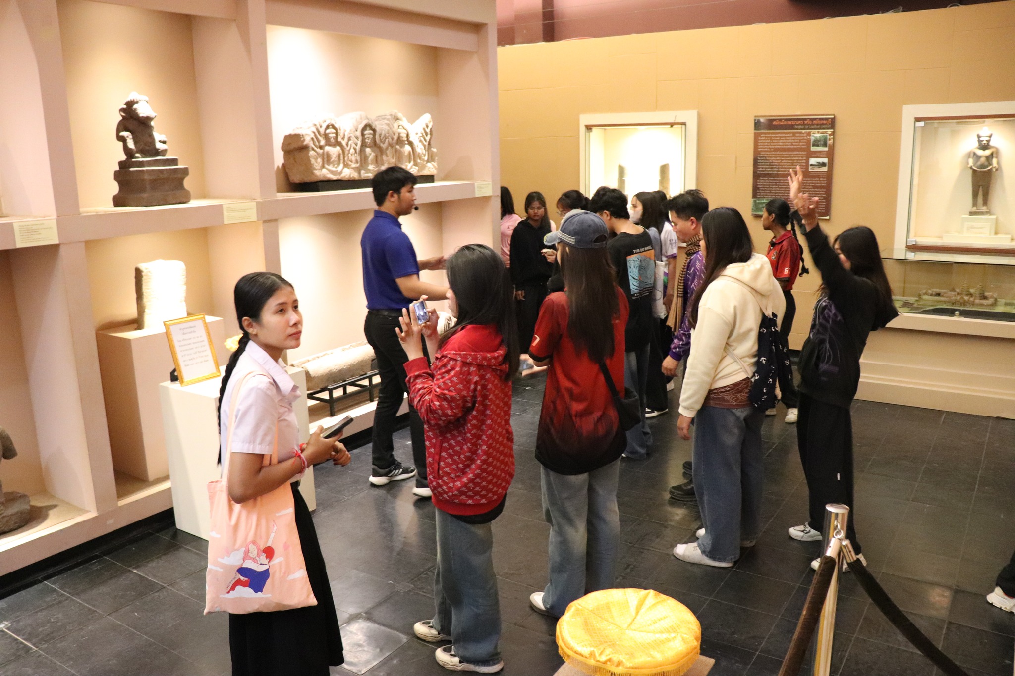 วันศุกร์ที่ ๑๔ กุมภาพันธ์ พ.ศ.๒๕๖๘ เวลา ๑๐.๐๐ น. นักศึกษาคณะการท่องเที่ยวและการโรแรม มหาวิทยาลัยราชภัฏสุรินทร์ จังหวัดสุรินทร์ จำนวน ๕๐ คน อาจาย์ ๒ คน เข้าเยี่ยมชมพิพิธภัณฑสถานแห่งชาติ สุรินทร์ โดยมีนายธนากร วงศ์สิริพัฒนะ นักวิชาการวัฒนธรรม ให้การต้อนรับและบรรยายนำชม
