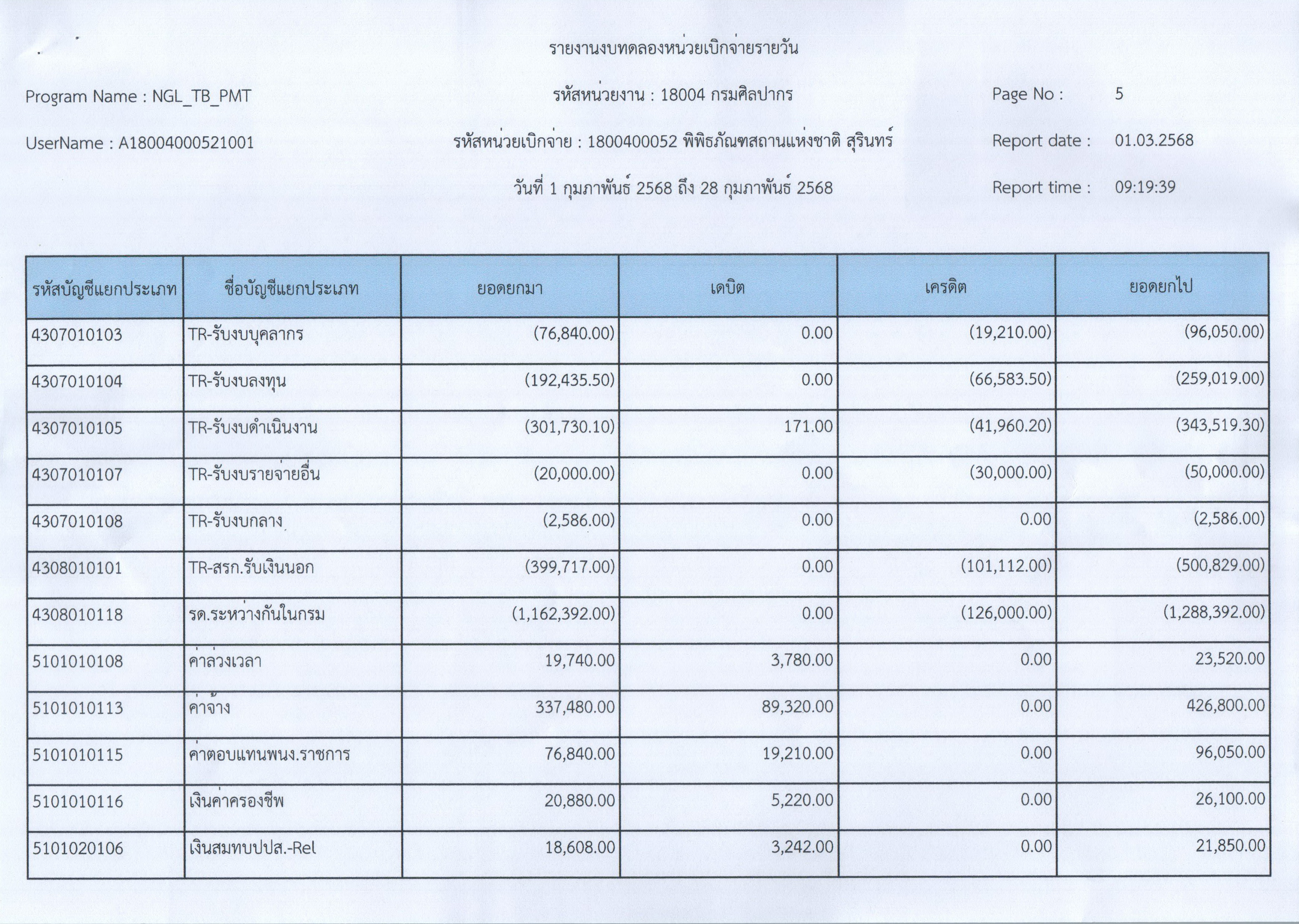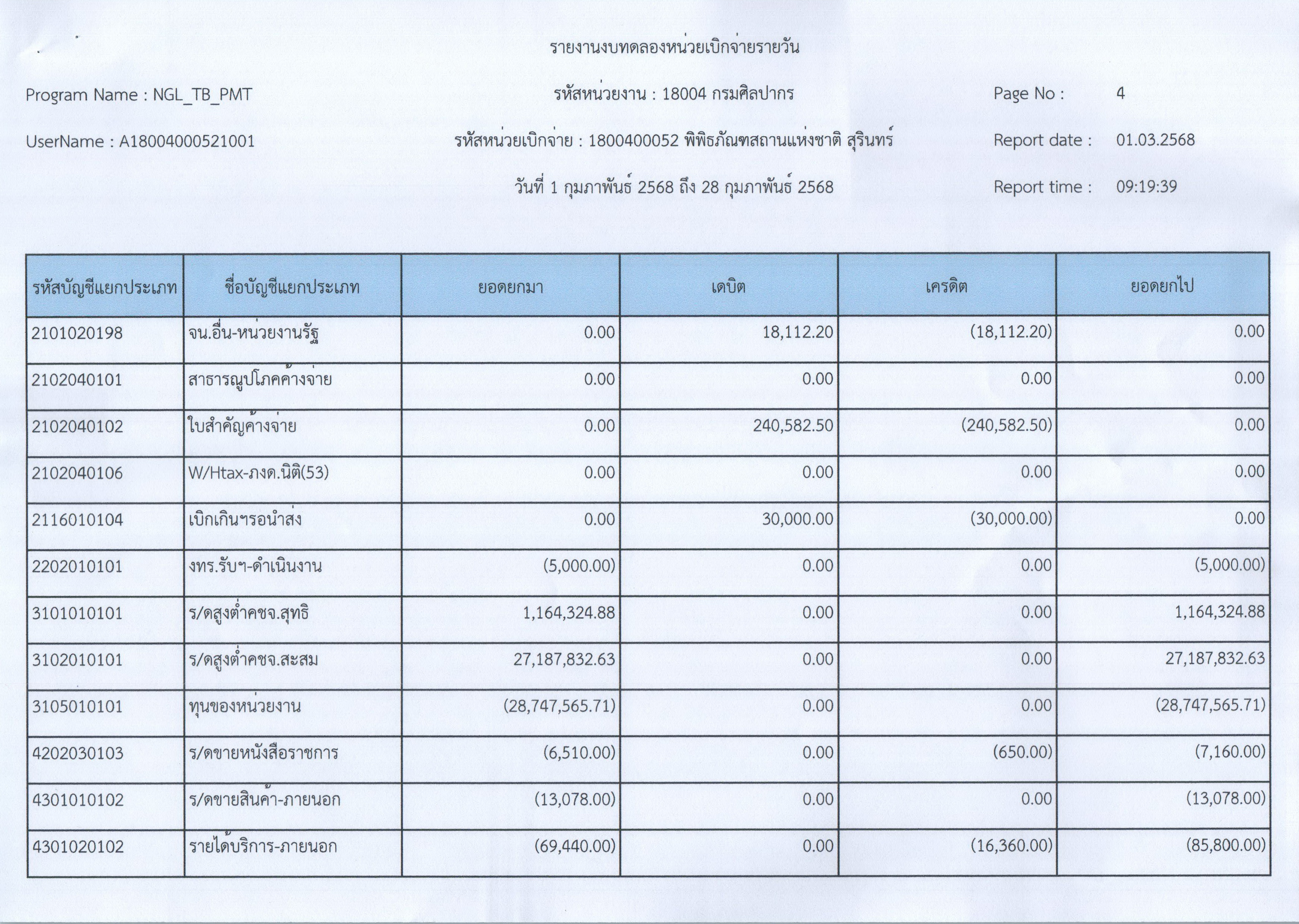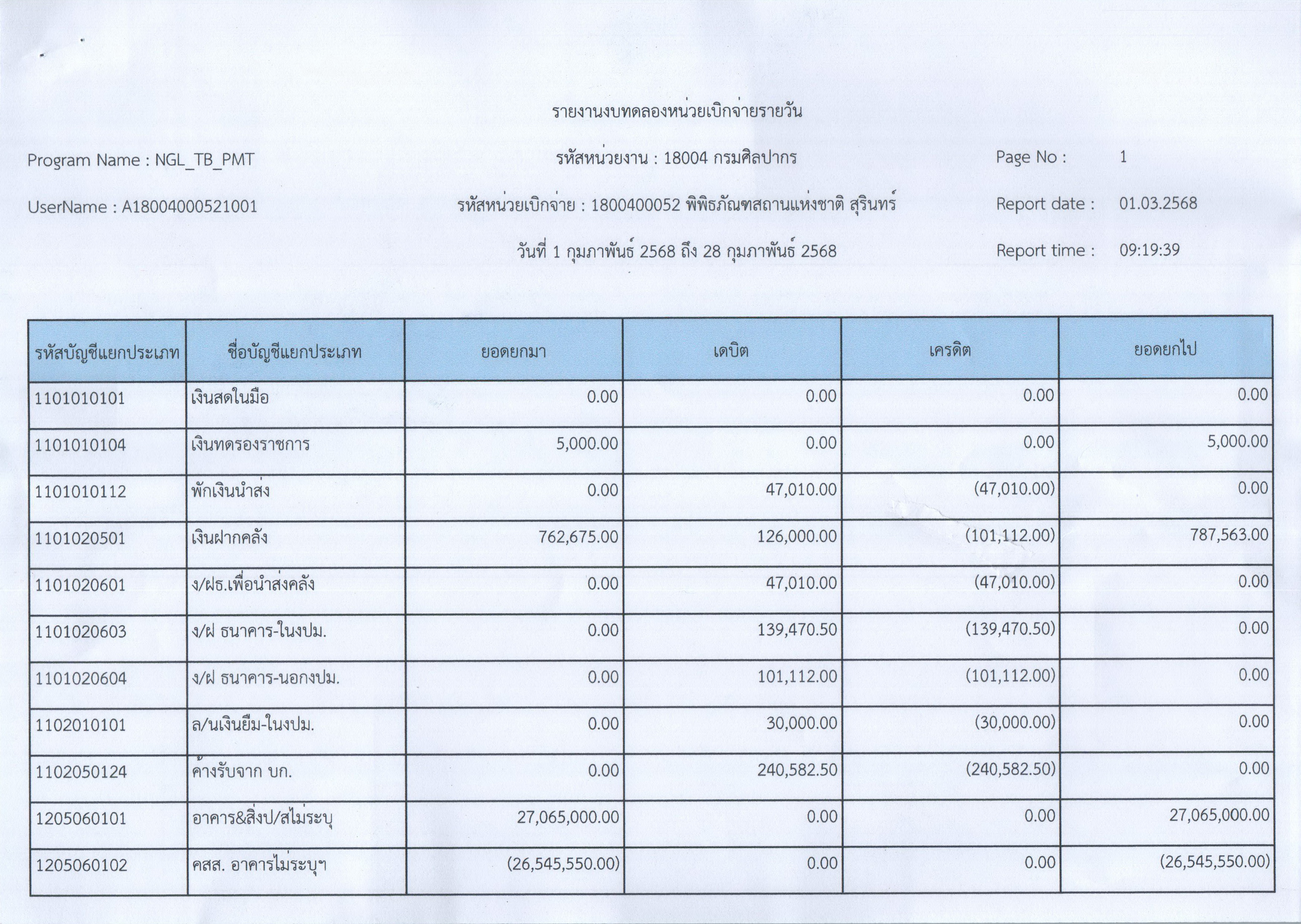รายงานงบทดลองหน่วยเบิกจ่ายรายเดือน ประจำเดือนกุมภาพันธ์ ๒๕๖๘