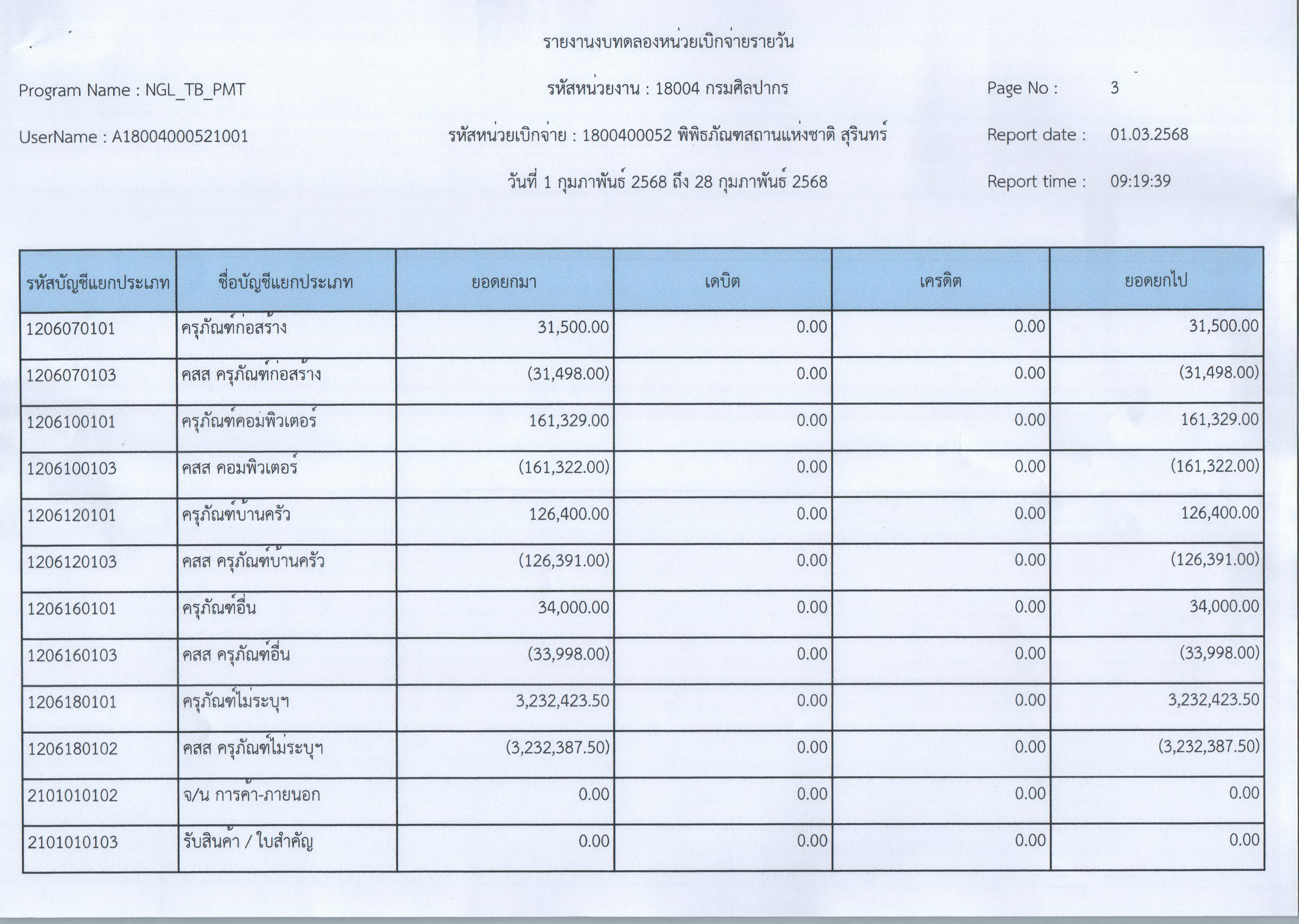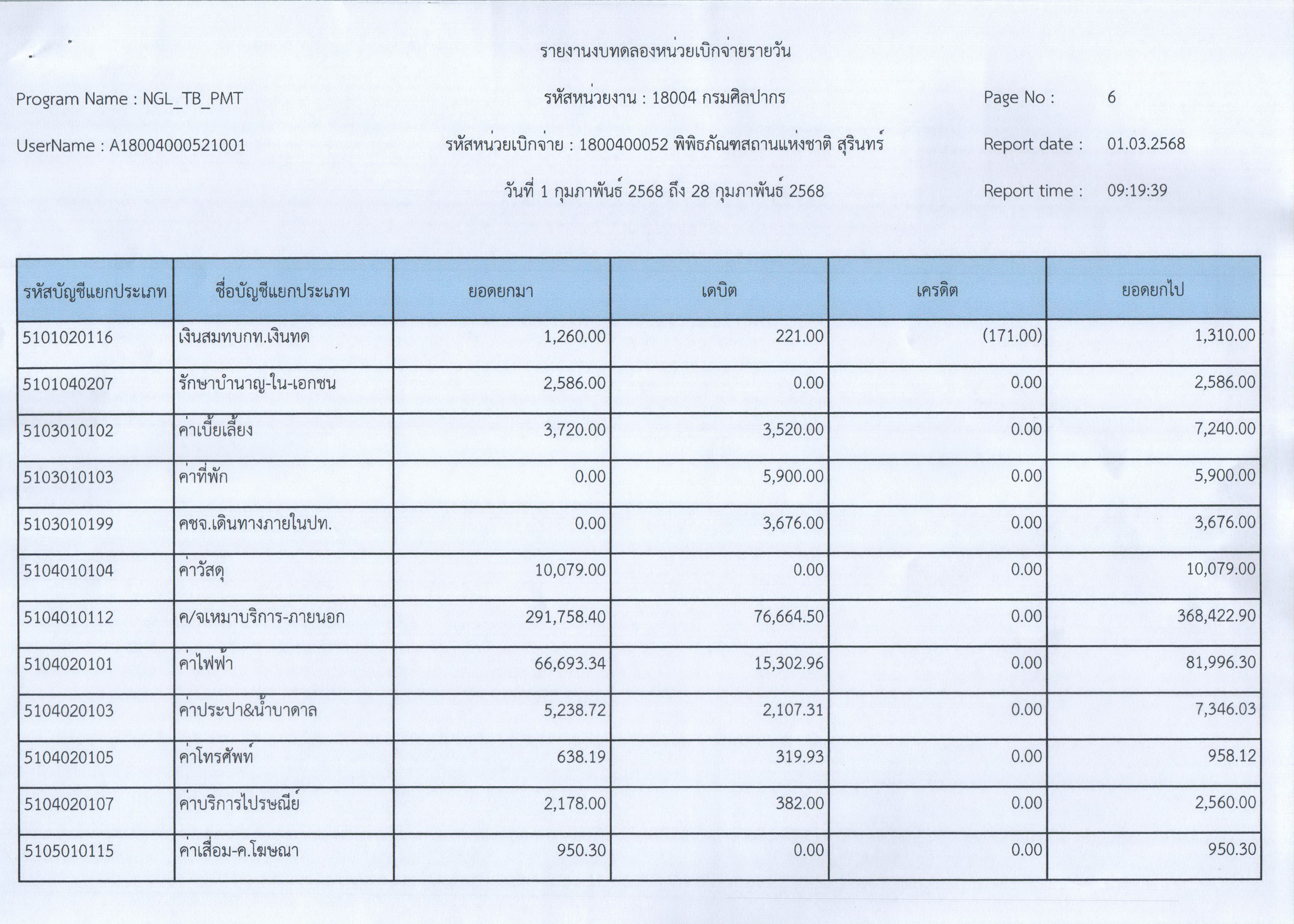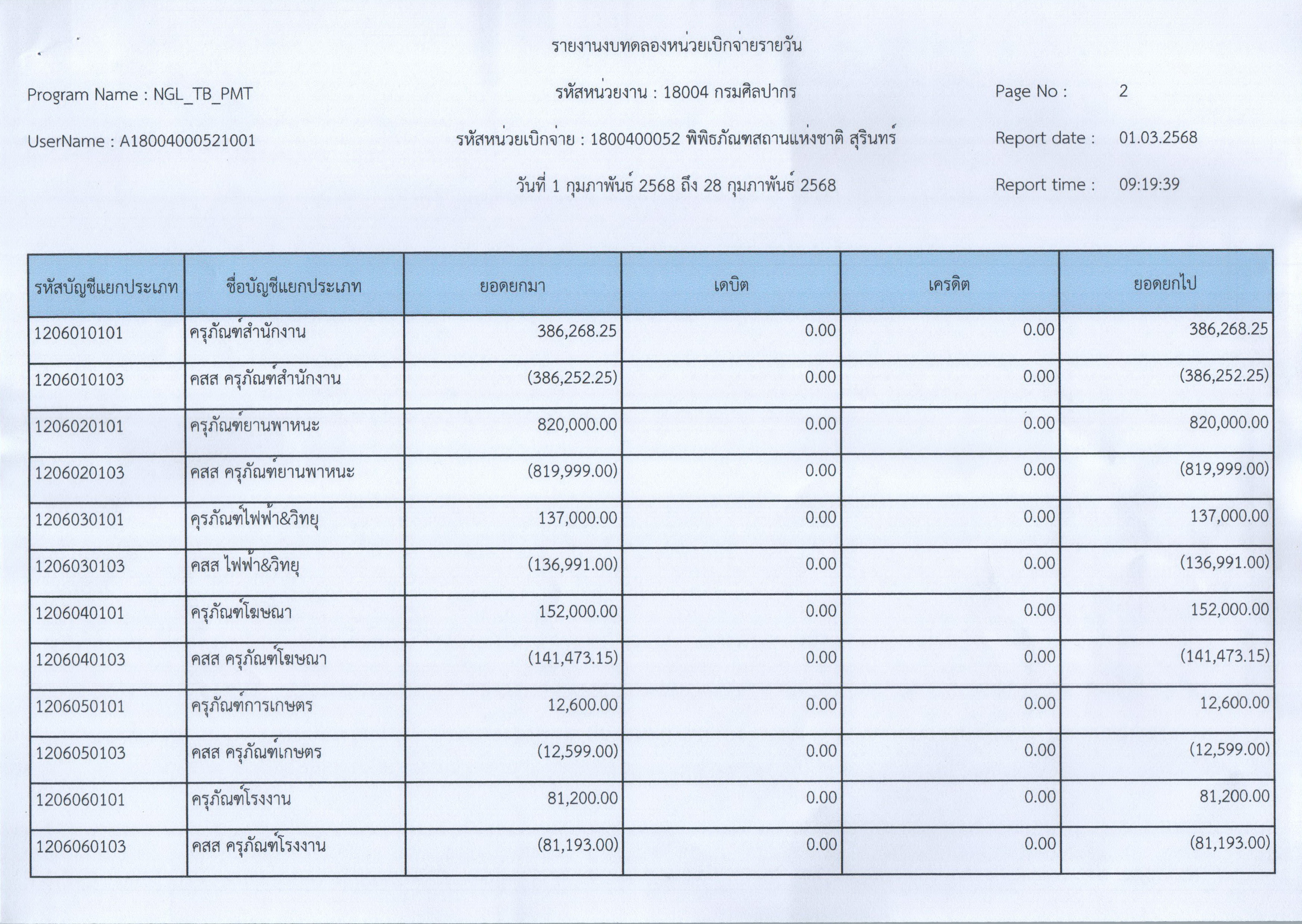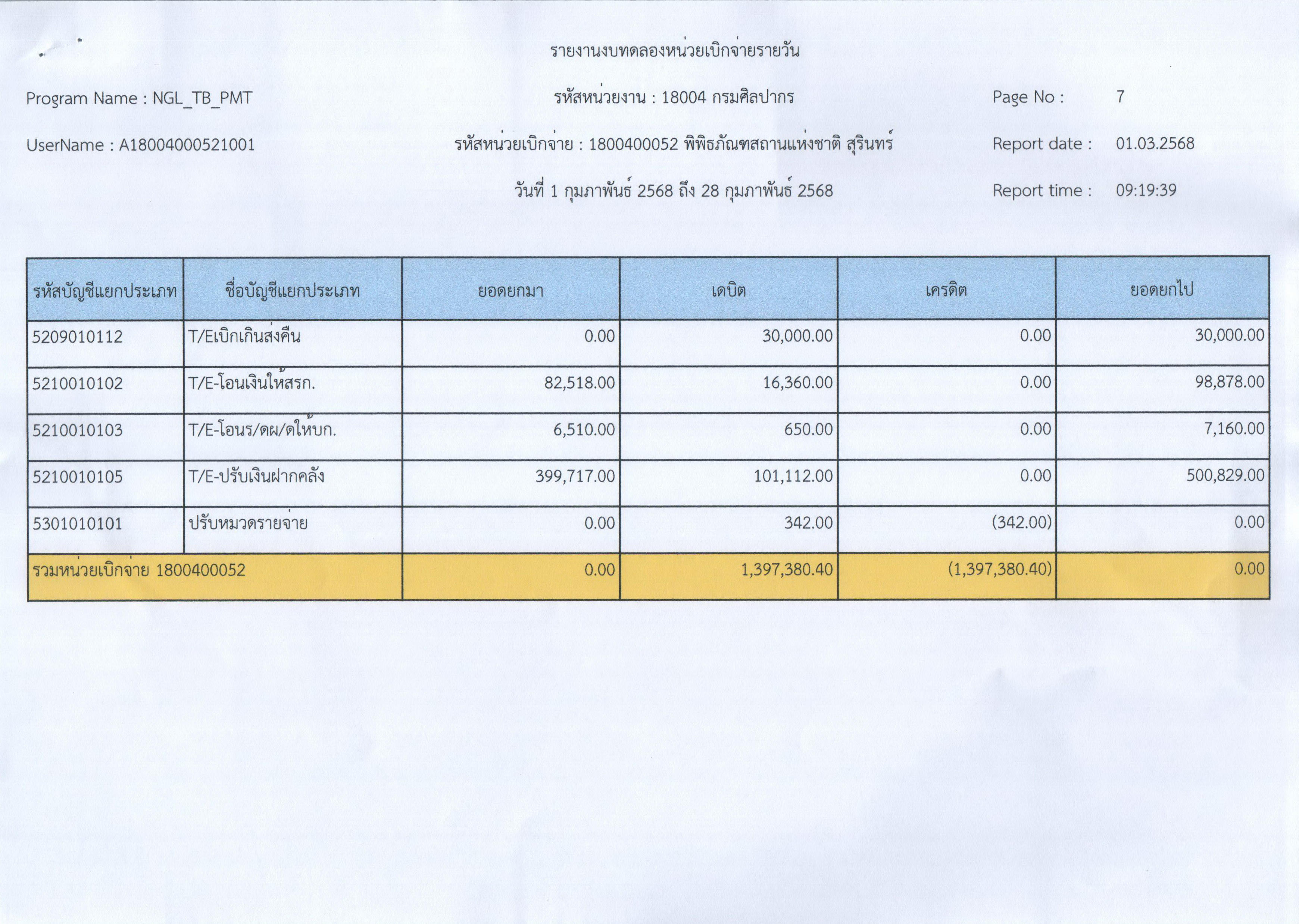 รายงานงบทดลองหน่วยเบิกจ่ายรายเดือน ประจำเดือนกุมภาพันธ์ ๒๕๖๘