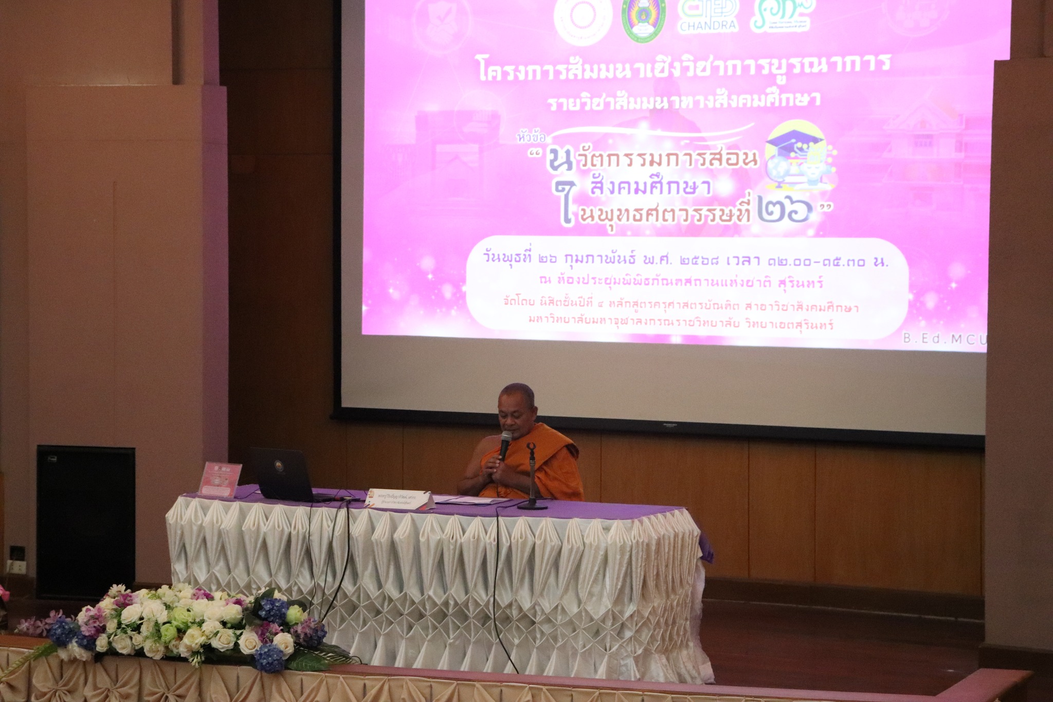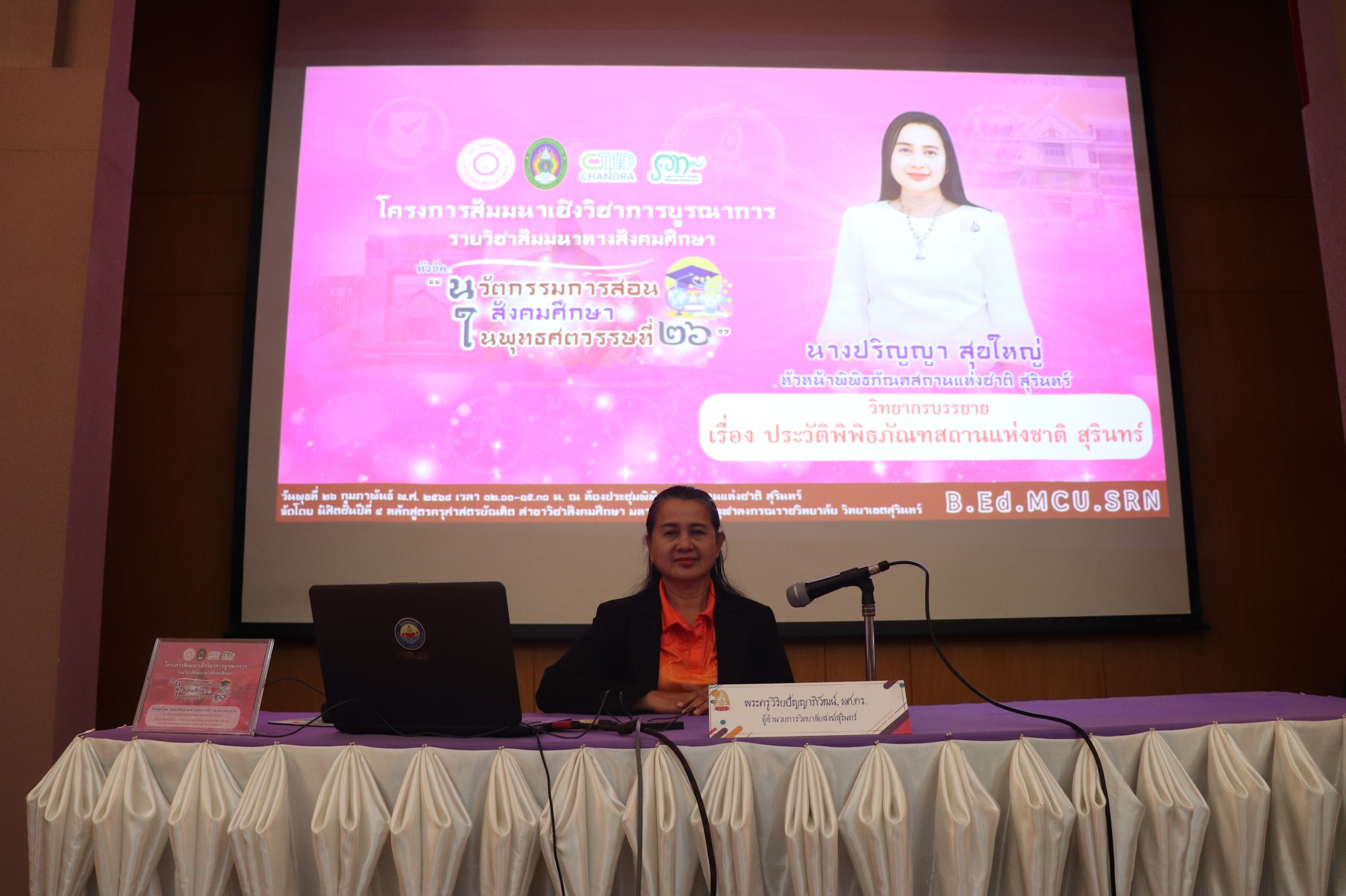 วันพุธที่ ๒๖ กุมภาพันธ์ พ.ศ.๒๕๖๘ มหาวิทยาลัยมหาจุฬาลงกรณราชวิทยาลัย วิทยาเขตสุรินทร์ ได้ขออนุญาตใช้ห้องประชุมพิพิธภัณฑสถานแห่งชาติ สุรินทร์ จัดโครงการสัมมนาเชิงวิชาการบูรณาการ รายวิชาสัมมนาทางสังคมศึกษา หัวข้อ "นวัตกรรมการสอน สังคมศึกษา ในพุทธศตวรรษที่ ๒๖" โดยมีนางปริญญา สุขใหญ่ หัวหน้าพิพิธภัณฑสถานแห่งชาติ สุรินทร์ ให้การต้อนรับและเป็นวิทยากรบรรยายนำชม
