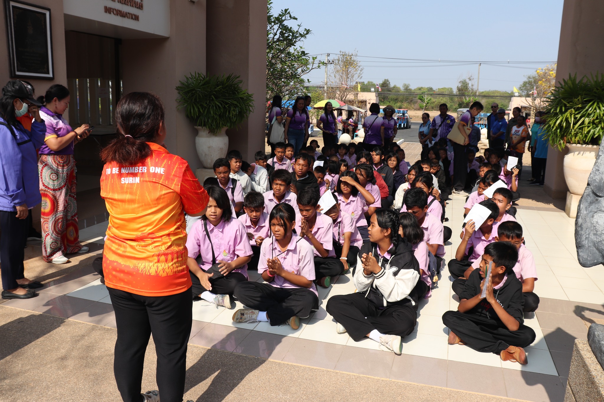 วันพุธที่ ๕ มีนาคม พ.ศ.๒๕๖๘ เวลา ๐๙.๓๐ น. นักเรียนชั้นประถมศึกษาปีที่ ๑ ถึงชั้นมัธยมศึกษาปีที่ ๓ โรงเรียนนิคมสร้างตนเอง๖ ตำบลจันทบเพชร อำเภอบ้านกรวด จังหวัดบุรีรัมย์ จำนวน ๑๑๗ คน คุณครู ๑๐ คน เข้าเยี่ยมชมพิพิธภัณฑสถานแห่งชาติ สุรินทร์ โดยมีนางสาวพรธิดา เข็มเพ็ชร์ เจ้าพนักงานพิพิธภัณฑ์ชำนาญงาน ให้การต้อนรับและบรรยายนำชม