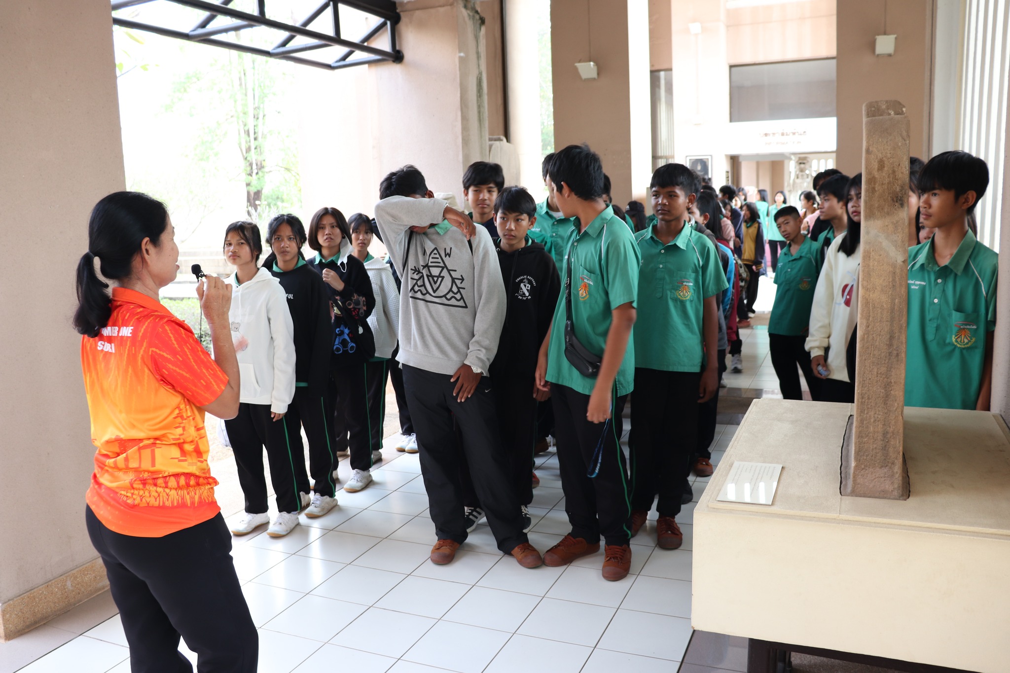 วันพุธที่ ๕ มีนาคม พ.ศ.๒๕๖๘ เวลา ๑๕.๐๐ น. นักเรียนชั้นมัธยมศึกษาปีที่ ๒ โรงเรียนท่าตูมประชาเสริมวิทย์ อำเภอท่าตูม จังหวัดสุรินทร์ จำนวน ๓๔๐ คน คุณครู ๒๐ คน เข้าเยี่ยมชมพิพิธภัณฑสถานแห่งชาติ สุรินทร์ โดยมีเจ้าหน้าที่พิพิธภัณฑสถานแห่งชาติ สุรินทร์ทุกคน ให้การต้อนรับและบรรยายนำชม