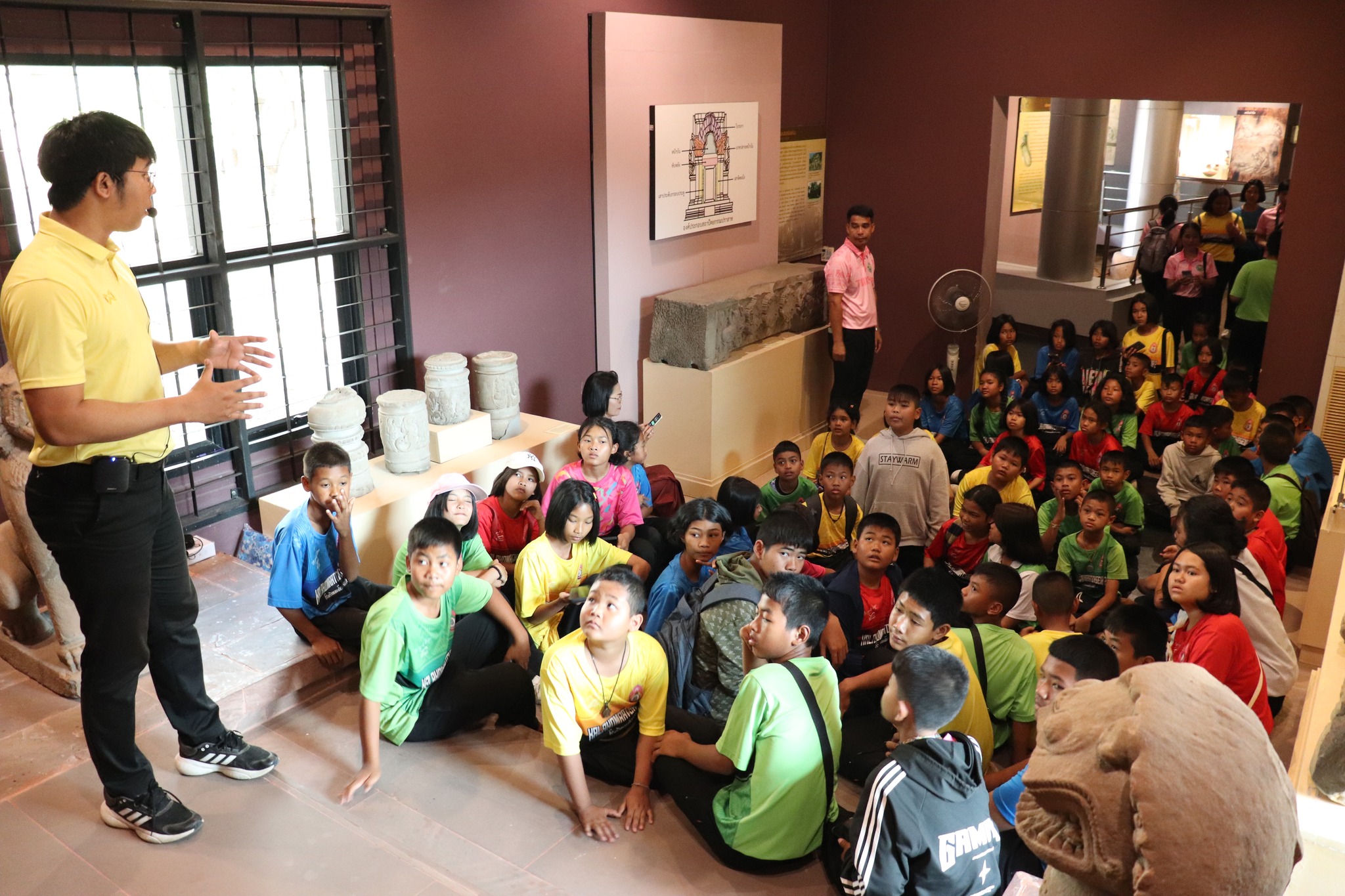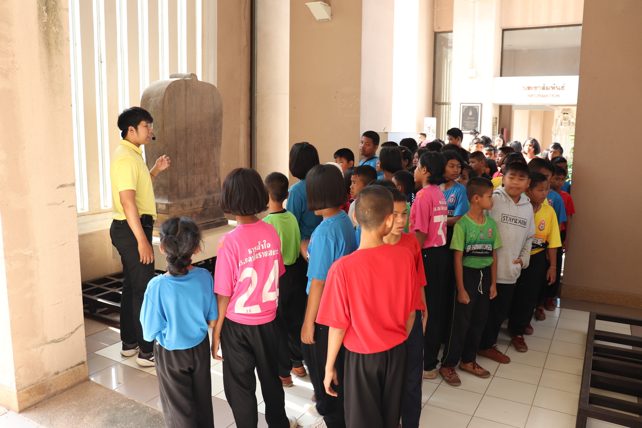 วันพฤหัสบดีที่ ๖ มีนาคม พ.ศ.๒๕๖๘ เวลา ๐๙.๓๐ น. นักเรียนชั้นประถมศึกษาปีที่ ๔-๖ โรงเรียนกลาโหมราชเสนา๒ ตำบลจรัส อำเภอบัวเชด จังหวัดสุรินทร์ จำนวน ๘๔ คน อาจาย์ ๙ คน เข้าเยี่ยมชมพิพิธภัณฑสถานแห่งชาติ สุรินทร์ โดยมีนายธนากร วงศ์สิริพัฒนะ นักวิชาการวัฒนธรรม ให้การต้อนรับและบรรยายนำชม
