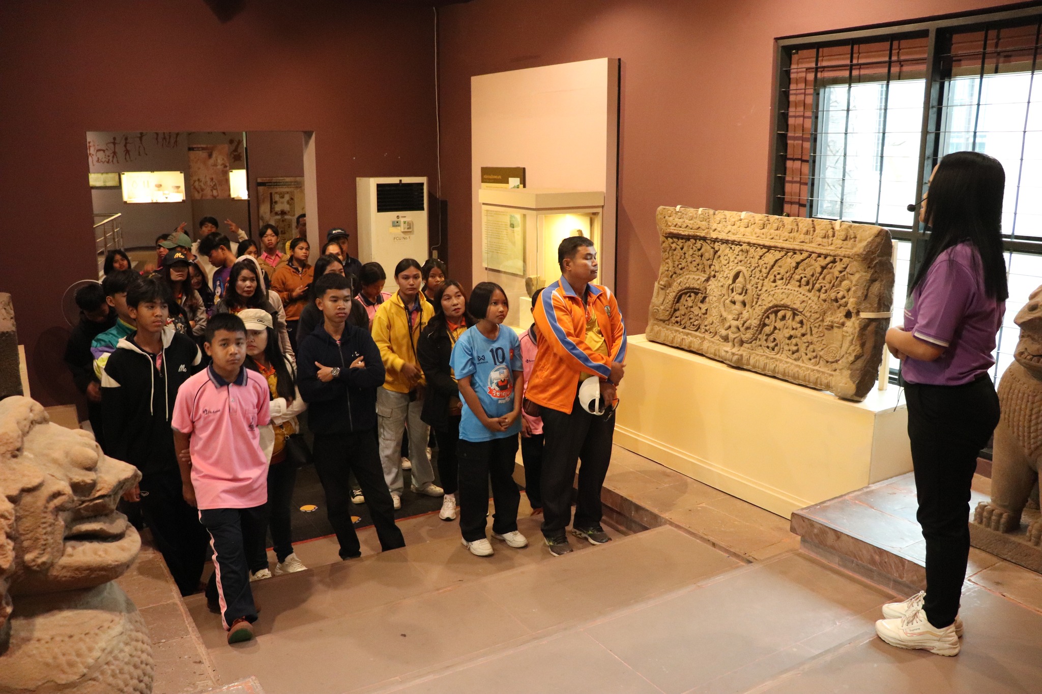 วันเสาร์ที่ ๘ มีนาคม พ.ศ.๒๕๖๘ เวลา ๐๙.๐๐ น. นักเรียนชั้นมัธยมศึกษาปีที่ ๔-๖ โรงเรียนกุญชรศิรวิทย์ ตำบลสำโรงพลัน อำเภอไพรบึง จังหวัดศรีสะเกษ จำนวน ๗๐ คน อาจาย์ ๑๐ คน เข้าเยี่ยมชมพิพิธภัณฑสถานแห่งชาติ สุรินทร์ โดยมีนางสาวอภิญญา สุขใหญ่ นางศรีสุดา ศรีสด พนักงานประจำพิพิธภัณฑ์ ให้การต้อนรับและบรรยายนำชม