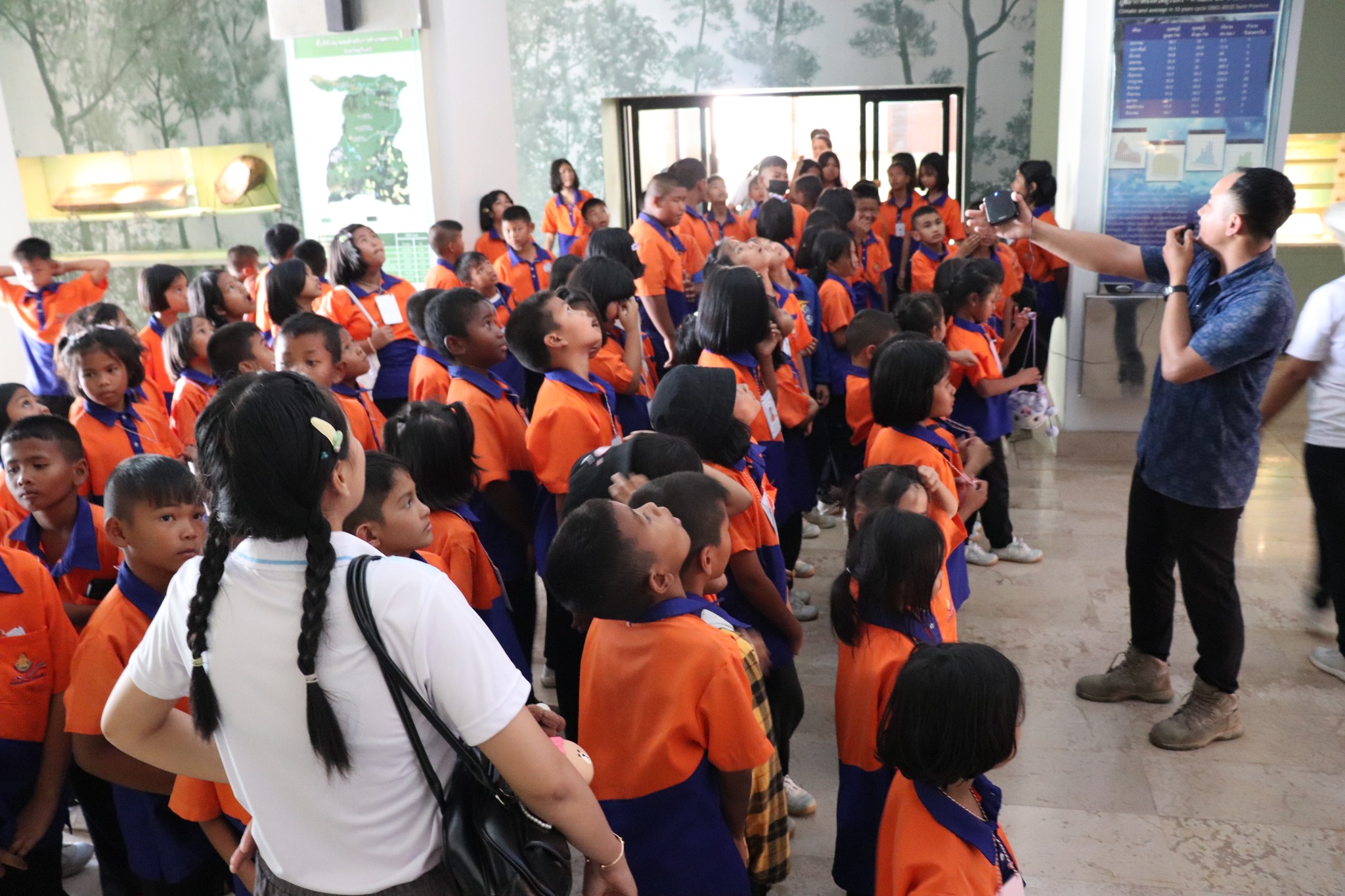 วันพฤหัสบดีที่ ๑๓ มีนาคม พ.ศ. ๒๕๖๘ เวลา ๑๓.๓๐ น. นักเรียนชั้นประถมศึกษาปีที่ ๑-๖ โรงเรียนนิคมสร้างตนเองปราสาท ๔ ตำบลบักได อำเภอพนมดงรัก จังหวัดสุรินทร์ จำนวน ๘๗ คน อาจาย์ ๑๑ คน เข้าเยี่ยมชมพิพิธภัณฑสถานแห่งชาติ สุรินทร์ โดยมีนายภักดี ถาพรผาด พนักงานบริการทั่วไป ให้การต้อนรับและบรรยายนำชม