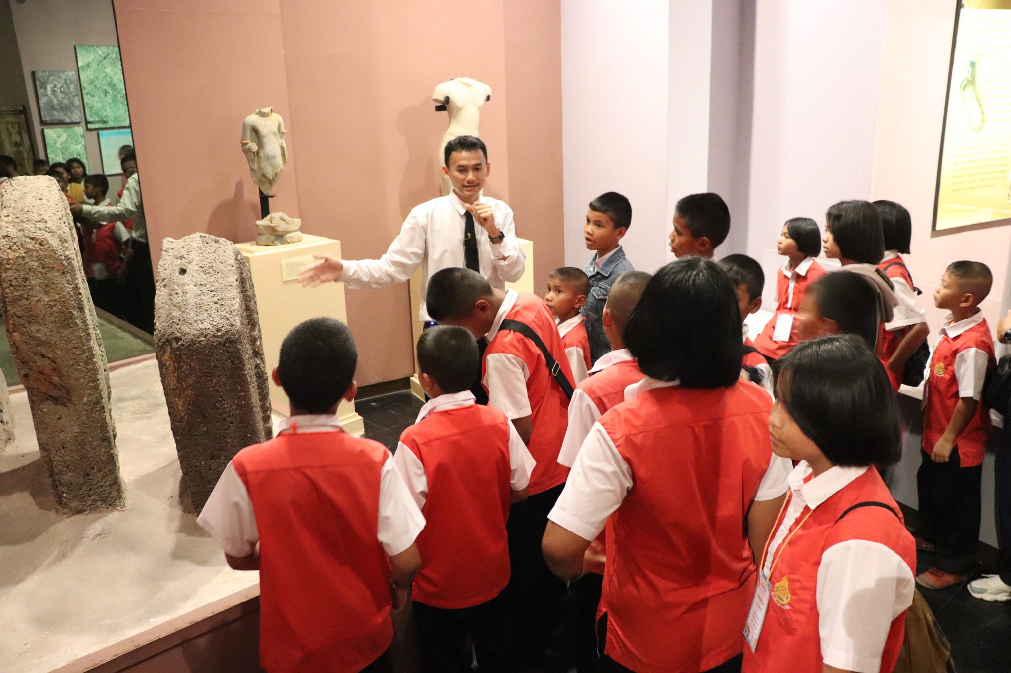 วันพฤหัสบดีที่ ๑๓ มีนาคม พ.ศ. ๒๕๖๘ เวลา ๑๔.๐๐ น. นักเรียนชั้นประถมศึกษาปีที่ ๑-๖ โรงบ้านเถกิง ตำบลตาคง อำเภอสังขะ จังหวัดสุรินทร์ จำนวน ๑๔๕ คน อาจาย์ ๑๓ คน เข้าเยี่ยมชมพิพิธภัณฑสถานแห่งชาติ สุรินทร์ โดยมีนางศรีสุดา สีสด พนักงานประจำพิพิธภัณฑ์ และนายพงศธร ฟักหวาน นักศึกษาฝึกประสบการณ์วิชาชีพมหาวิทยาลัยราชภัฎนครราชสีมา ให้การต้อนรับและบรรยายนำชม